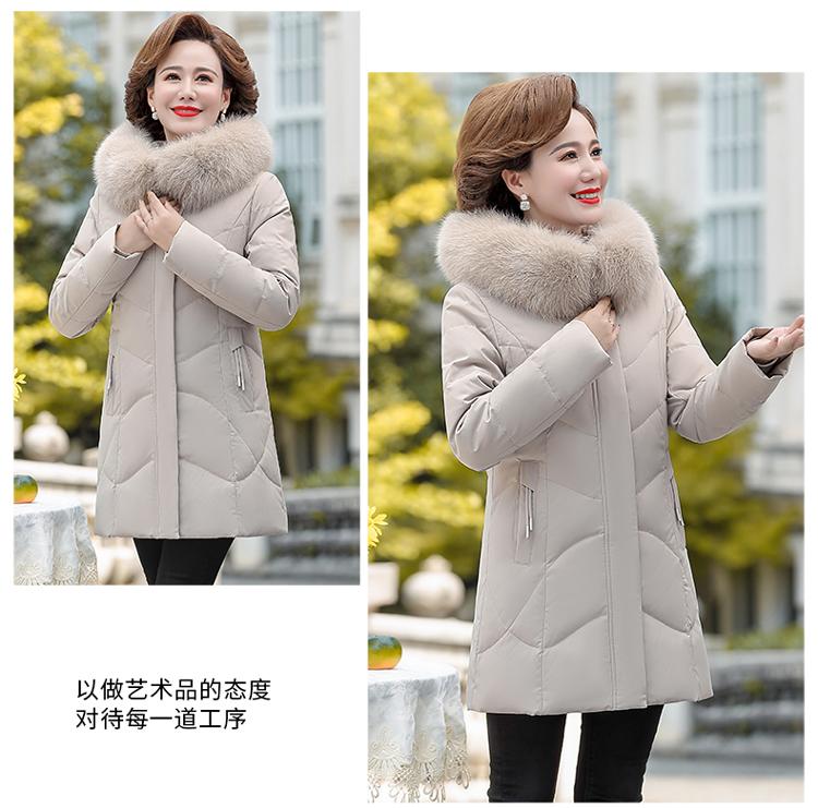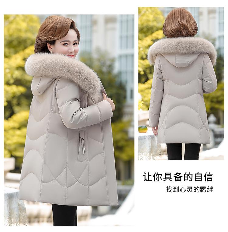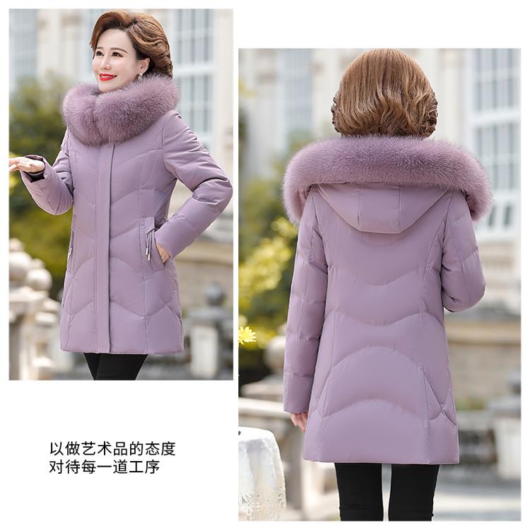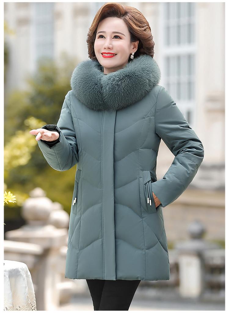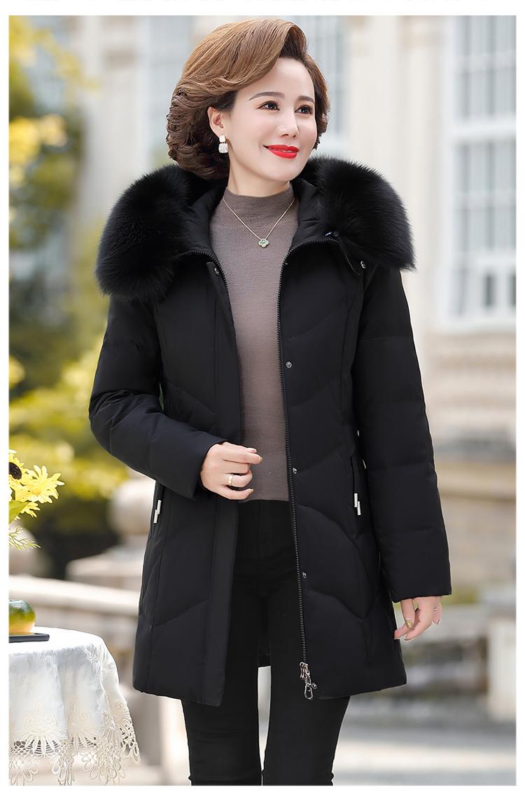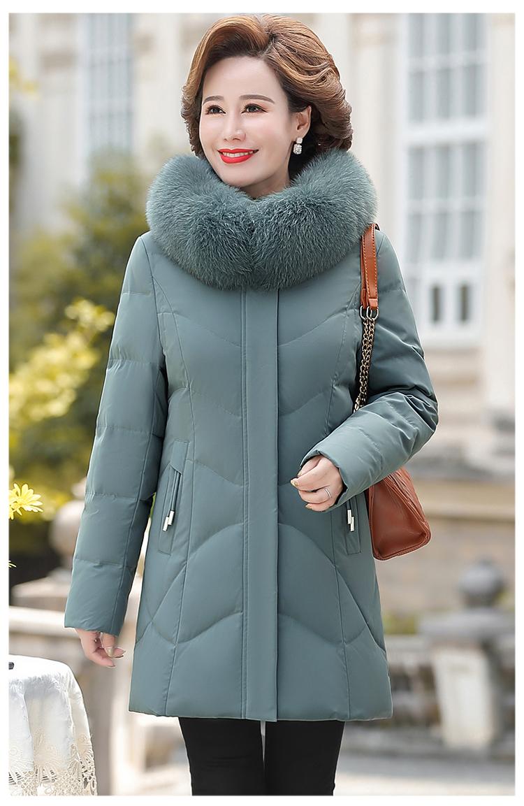 Chaqueta de Plumón de Ganso Blanco Genuino para Mujer Invierno Nueva Marca de Alta Gama Cuello de Piel de Zorro Mamá de Mediana Edad Abrigo Grueso de Longitud Media