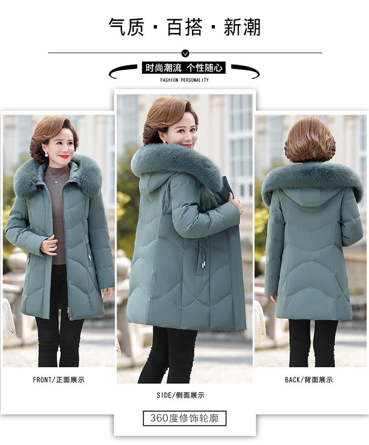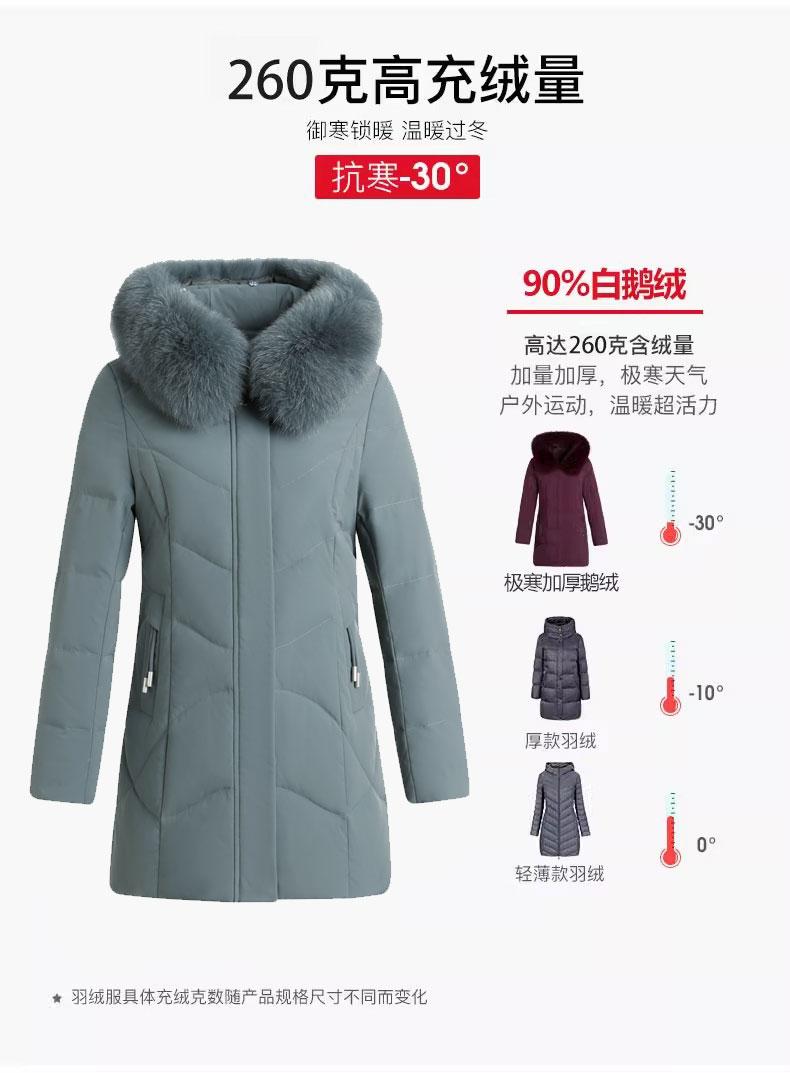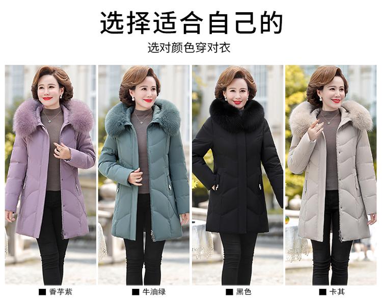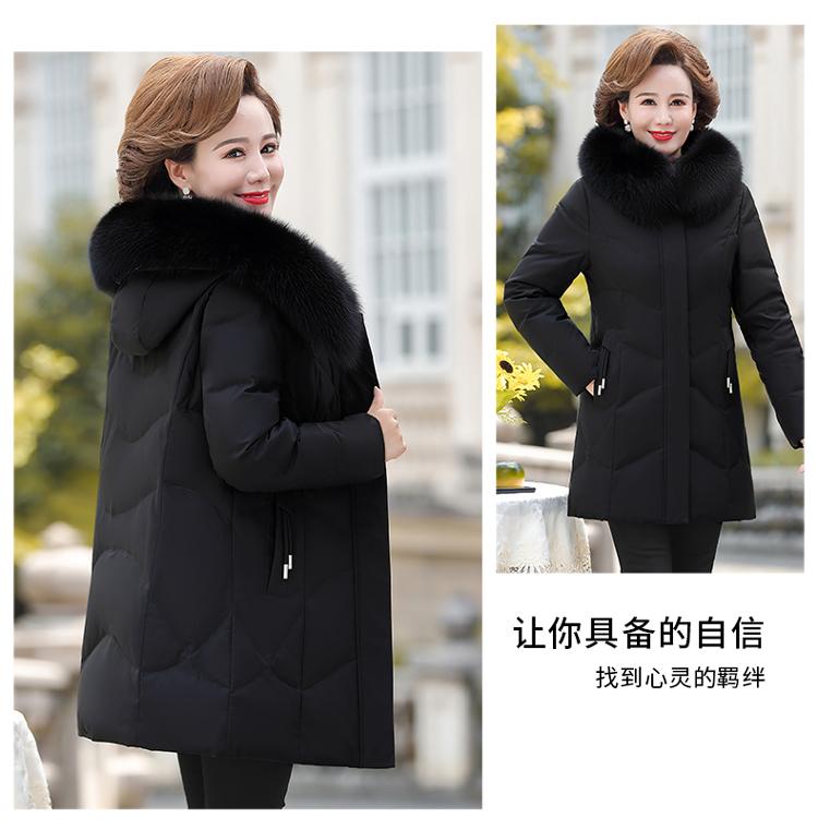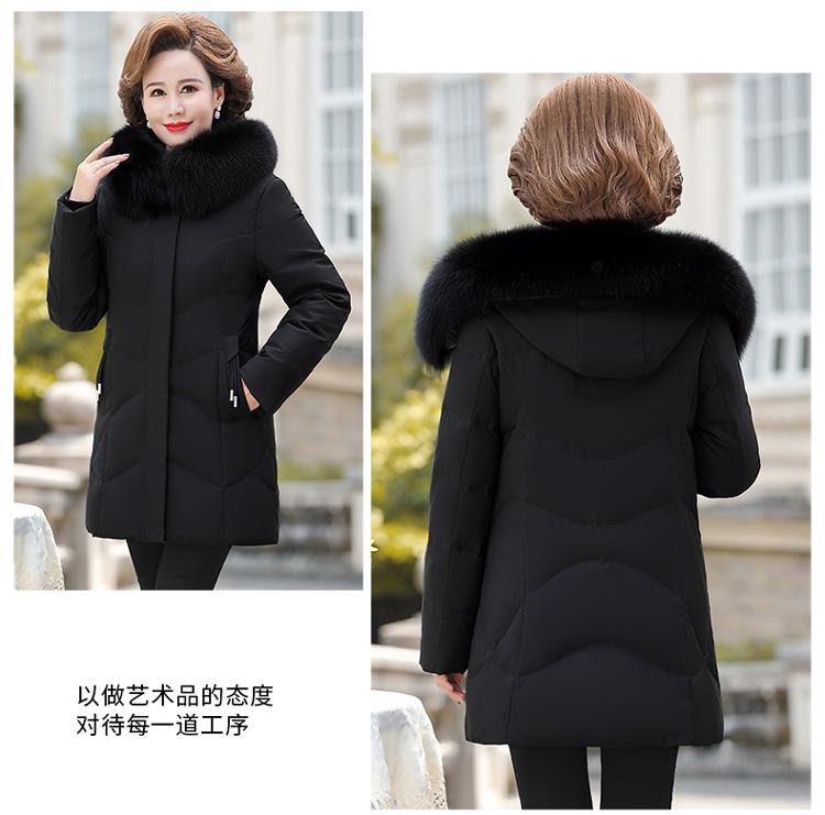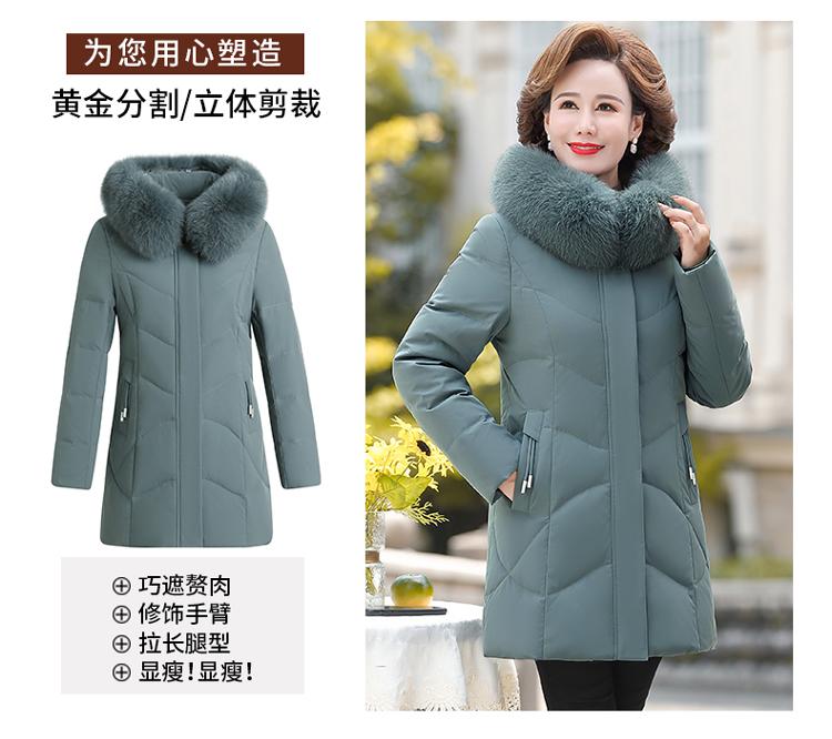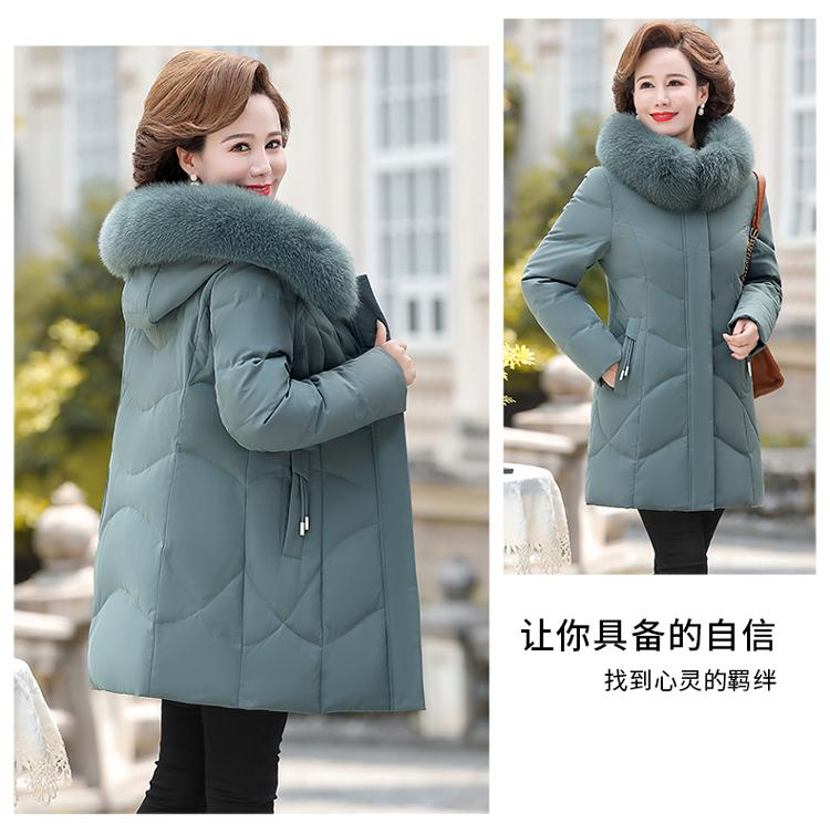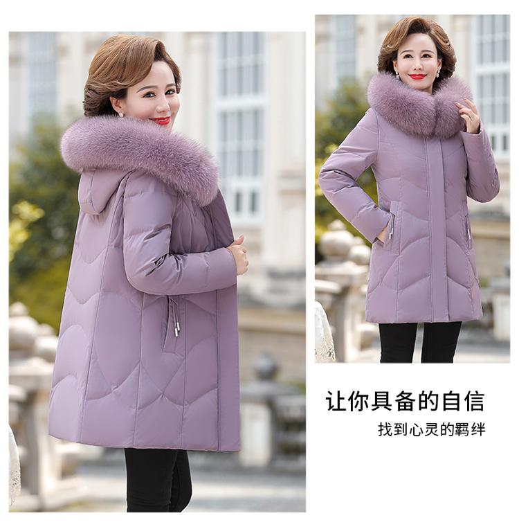 Chaqueta de Plumón de Ganso Blanco Genuino para Mujer Invierno Nueva Marca de Alta Gama Cuello de Piel de Zorro Mamá de Mediana Edad Abrigo Grueso de Longitud Media