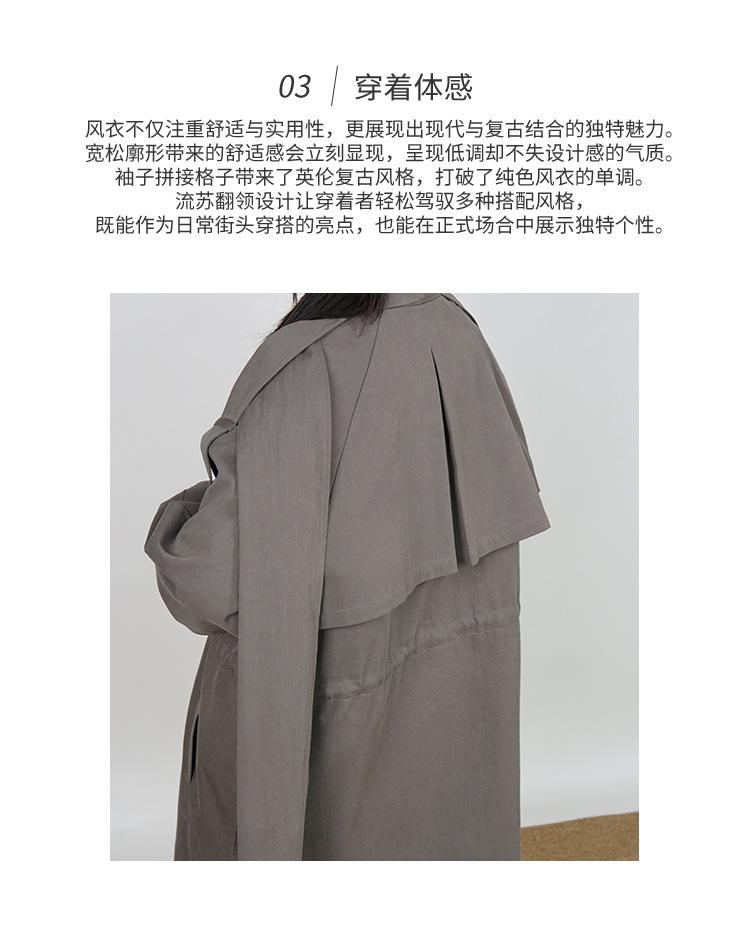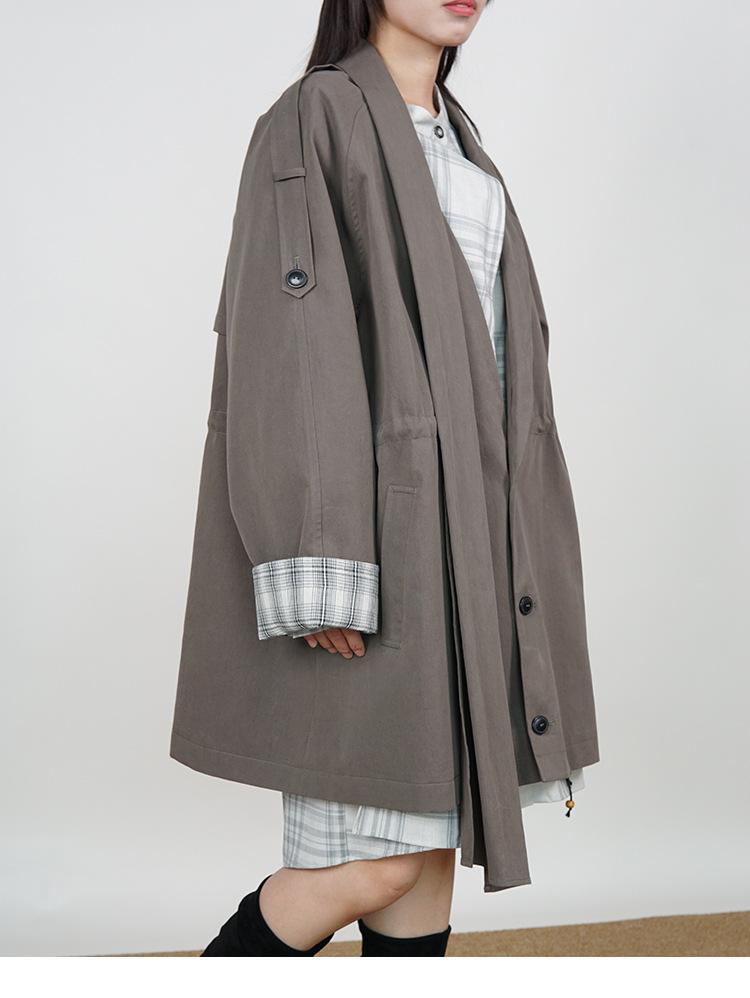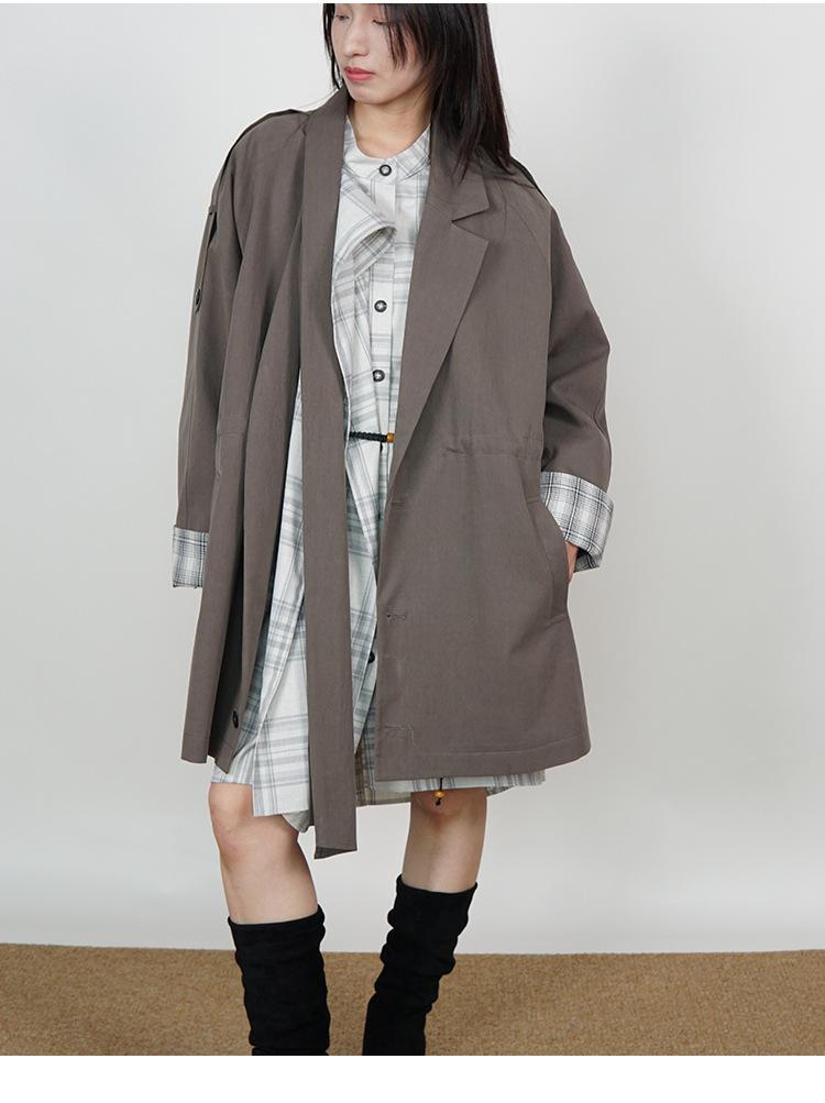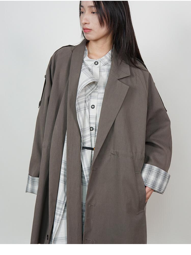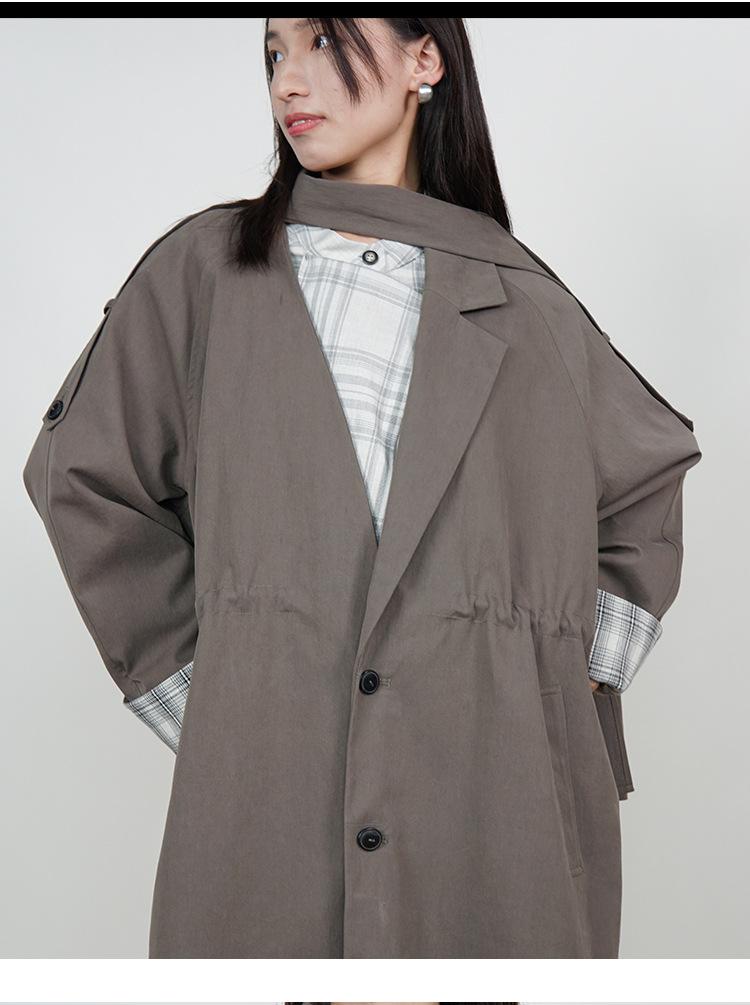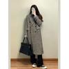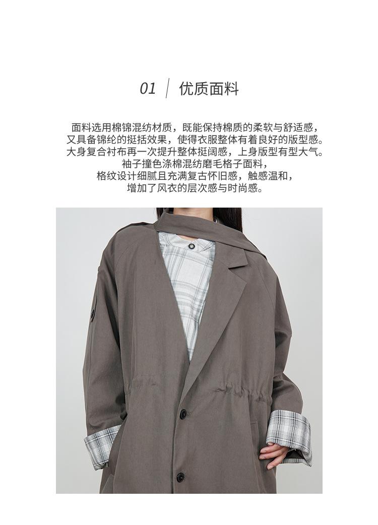 2025 Principios de Otoño Diseño Nostálgico Relajado Sentido Bufanda Cuello Puños Empalmados Retro Gabardina a Cuadros Largo Medio