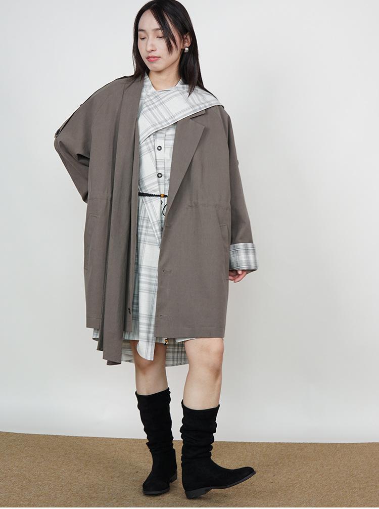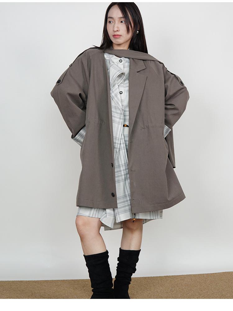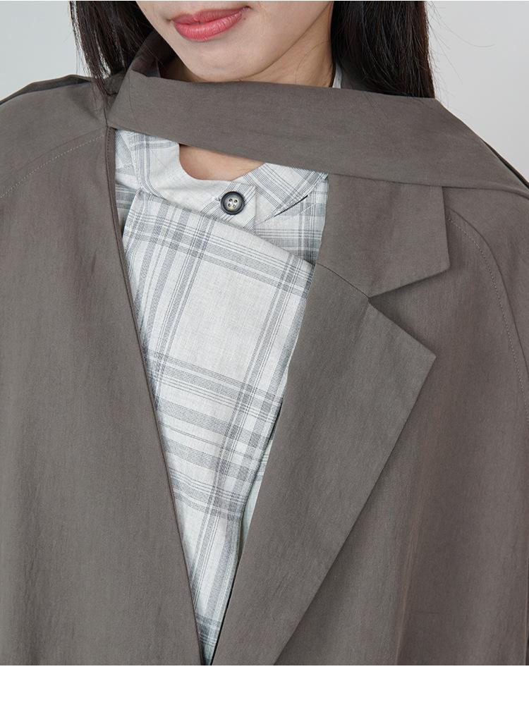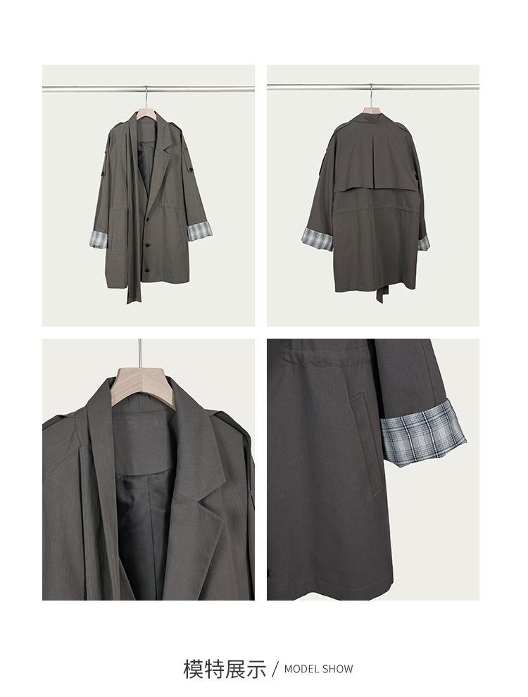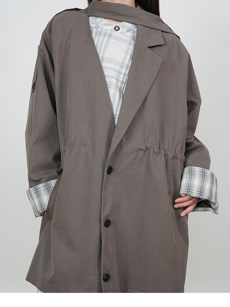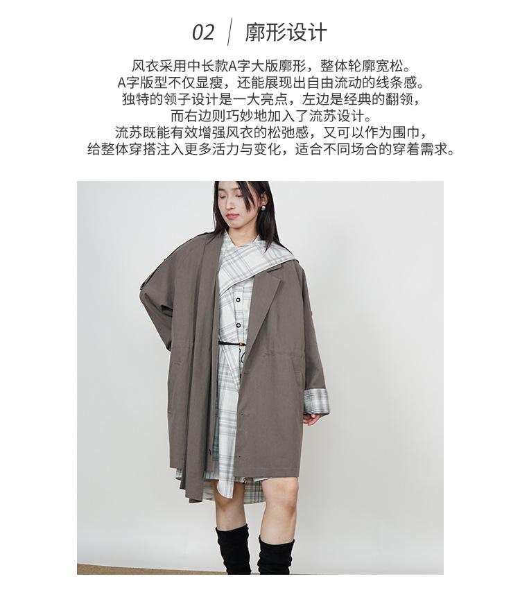 2025 Principios de Otoño Diseño Nostálgico Relajado Sentido Bufanda Cuello Puños Empalmados Retro Gabardina a Cuadros Largo Medio