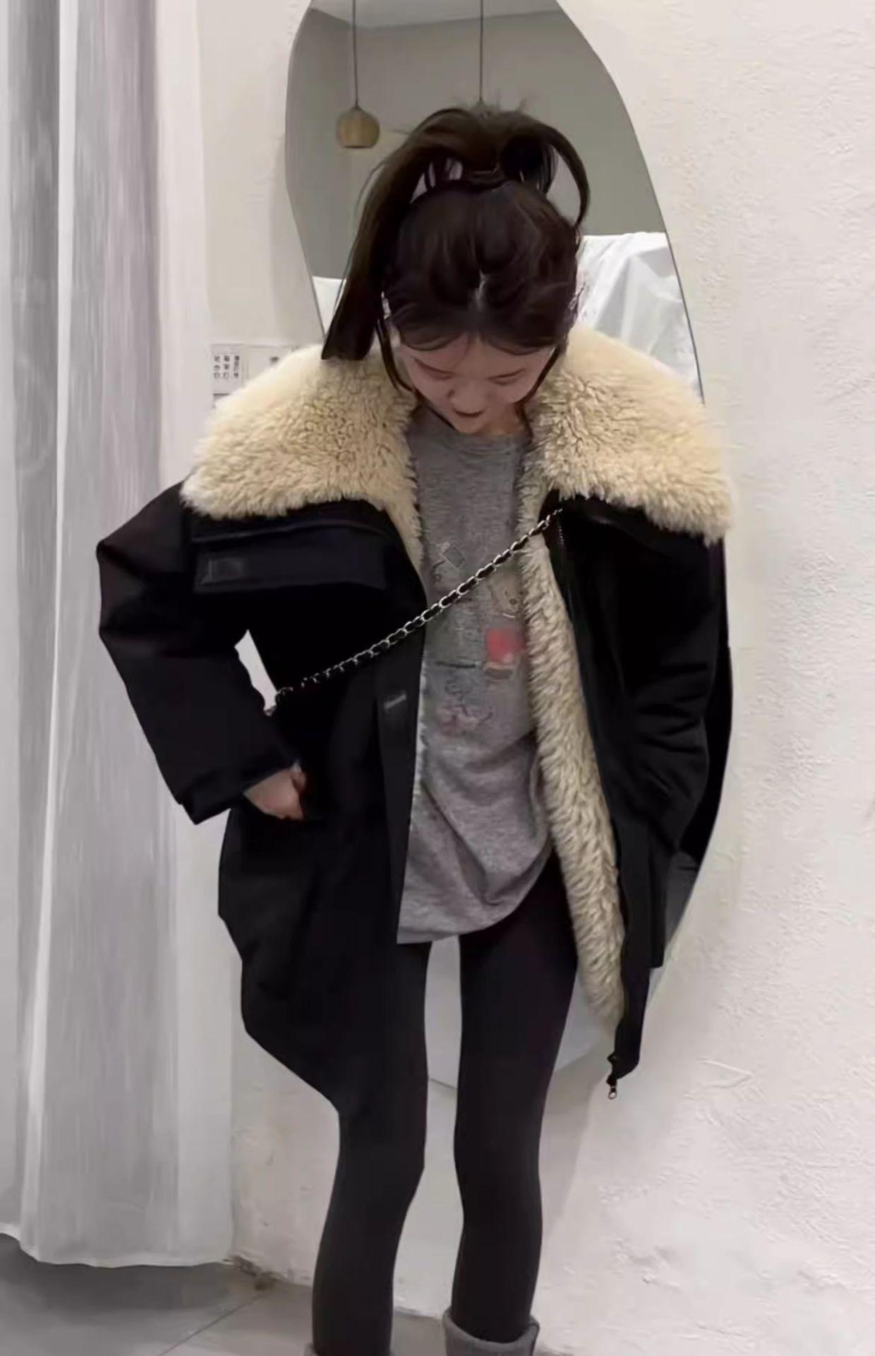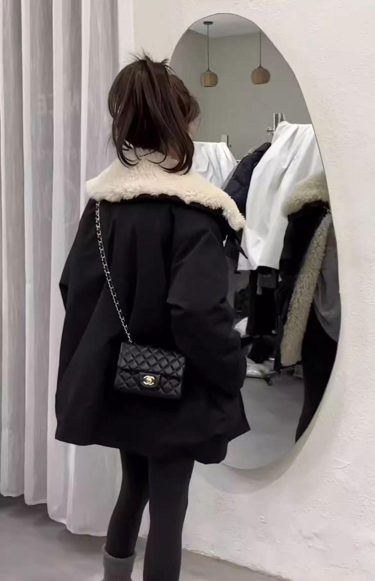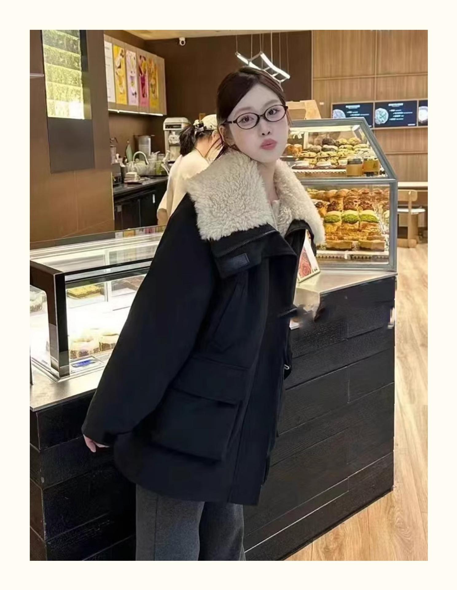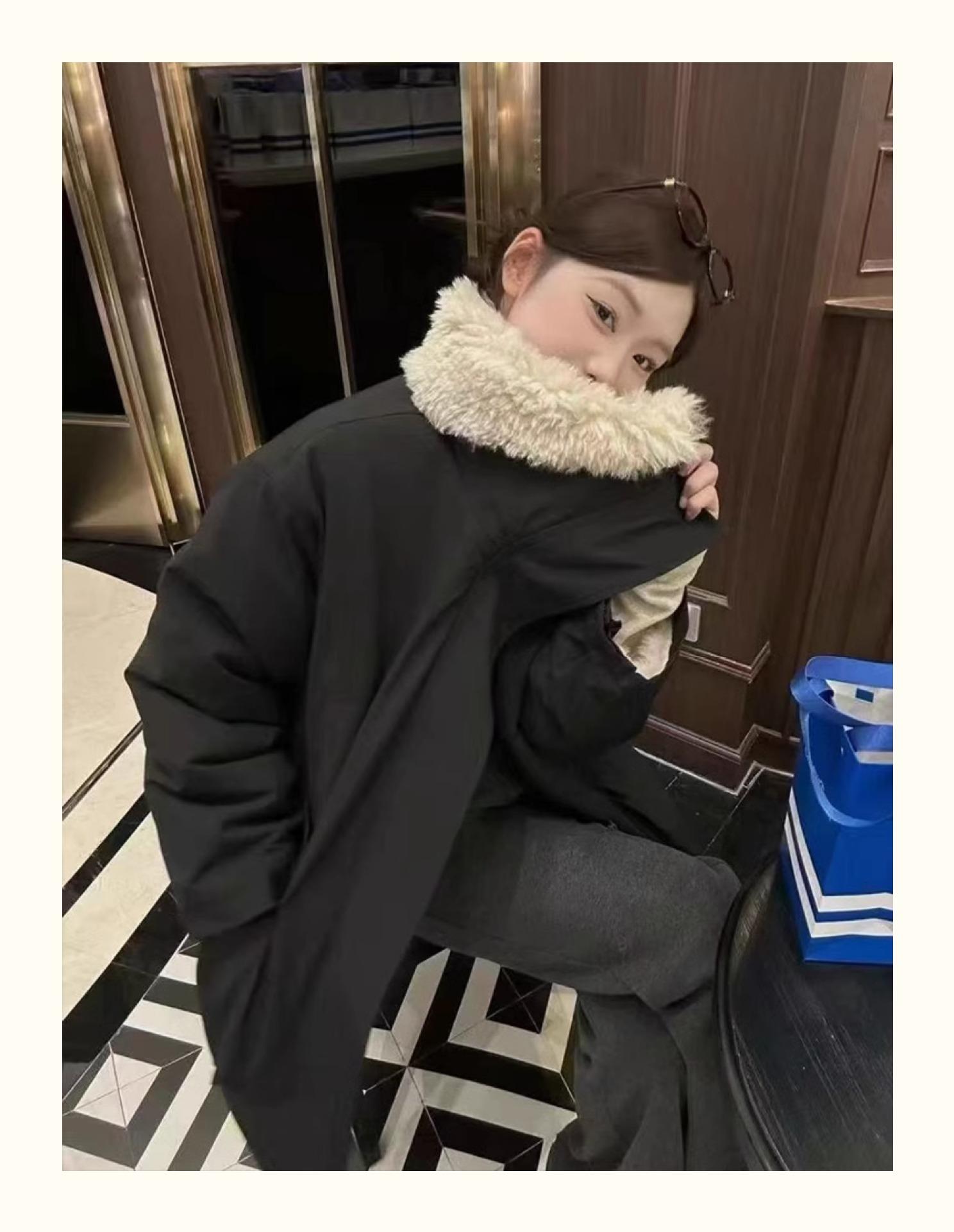 Abrigo de algodón acolchado grueso de solapa grande estilo coreano para mujer, parka para mujer 2025 invierno nuevo abrigo de algodón cálido top
