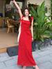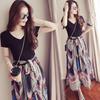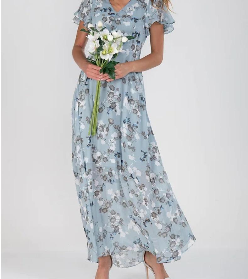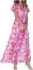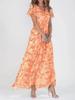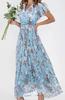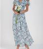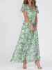 2025 Nuevo Europeo y Americano Playa Falda Larga Gasa Floral Manga Corta Volantes Cuello V Moda Vestido de Cintura