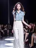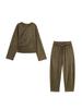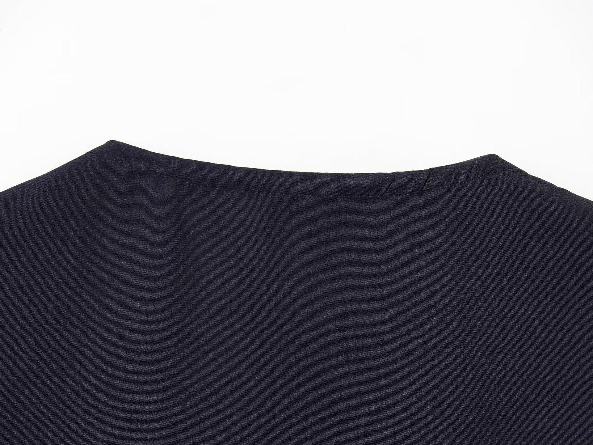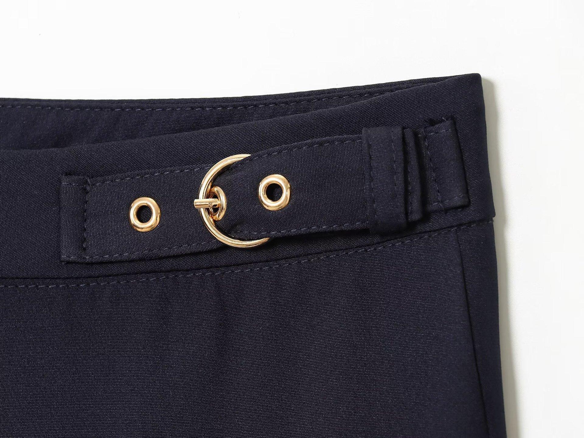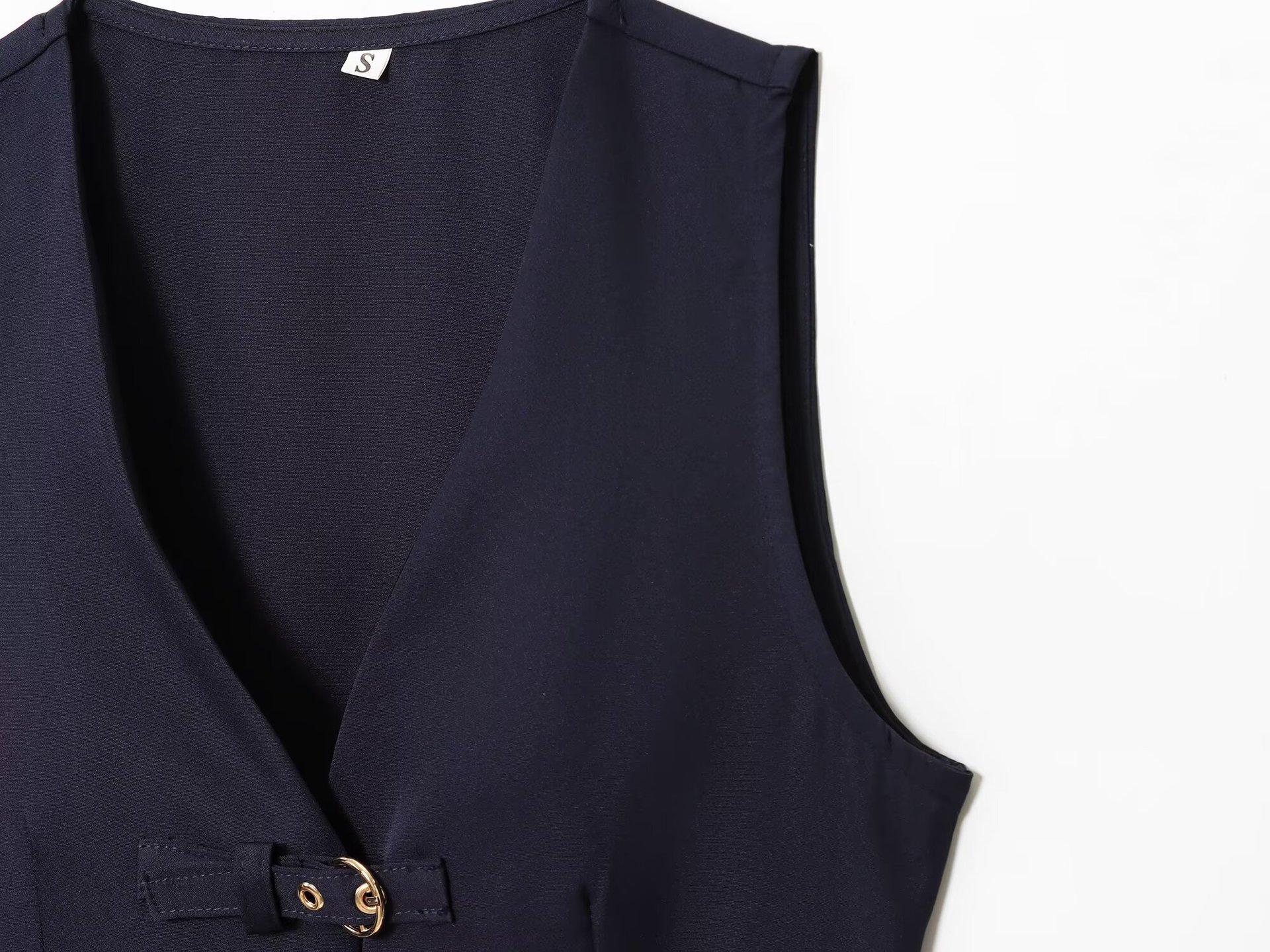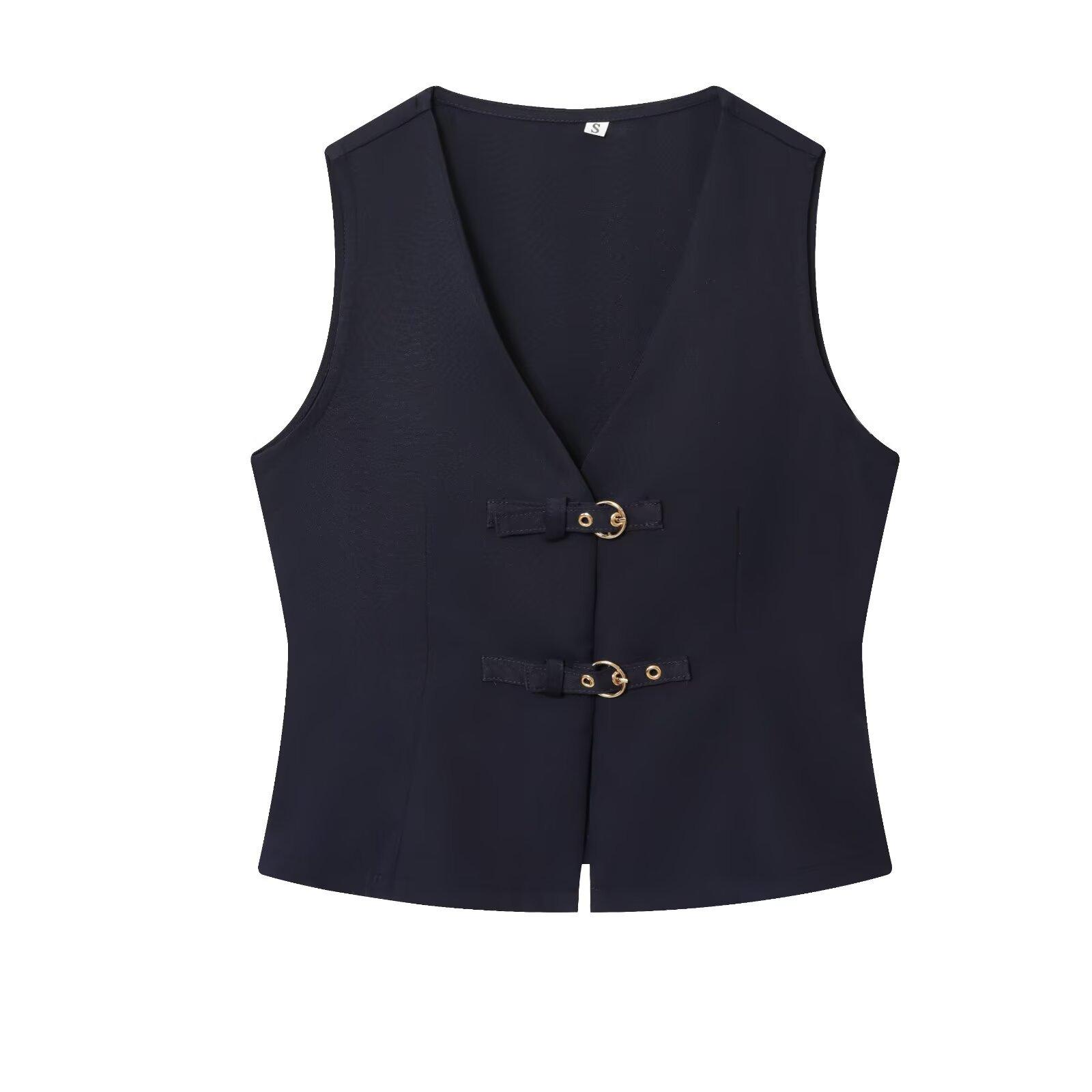 Conjunto de Top Arrugado con Hebilla Estilo Europeo y Americano Nuevo Verano 2025 + Pantalones Acampanados con Botones