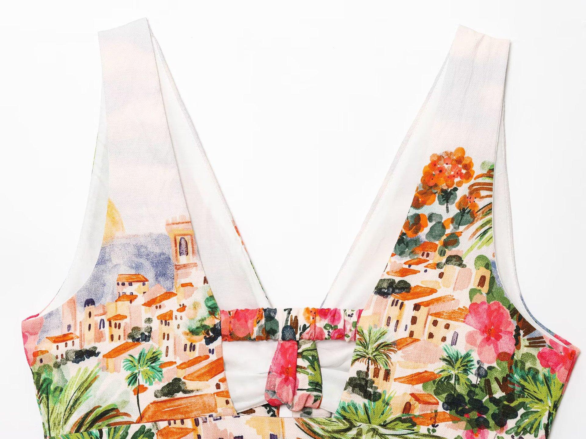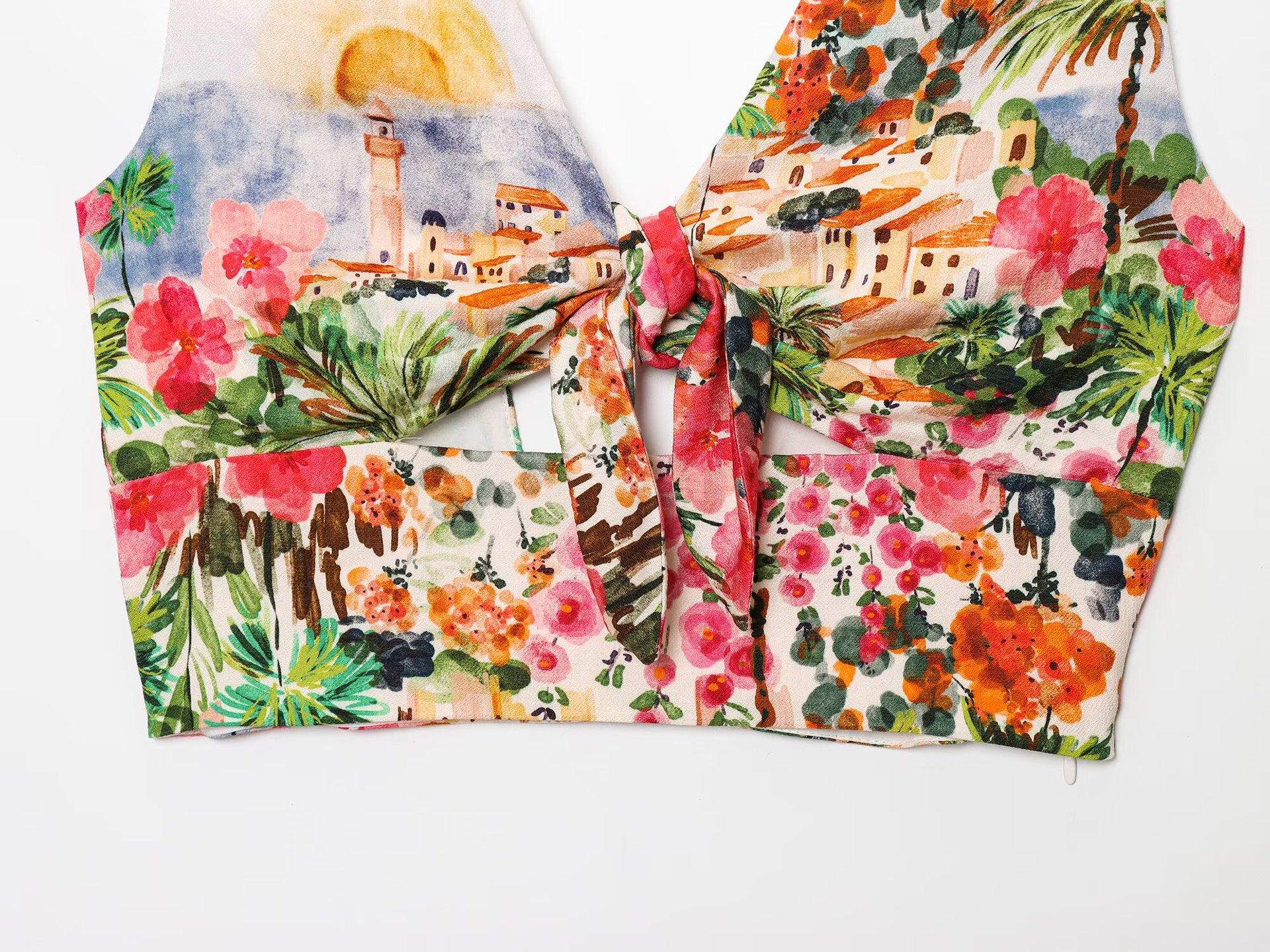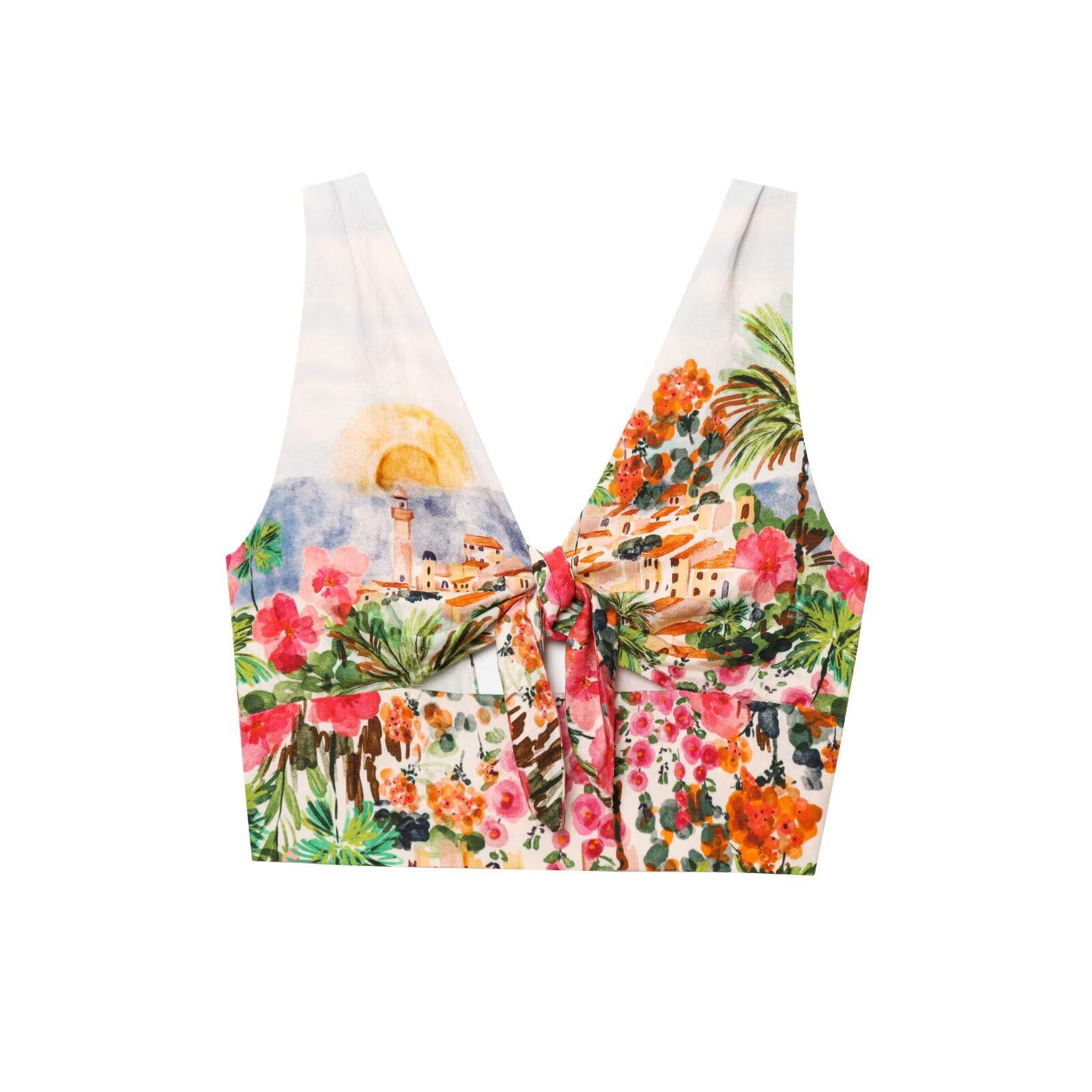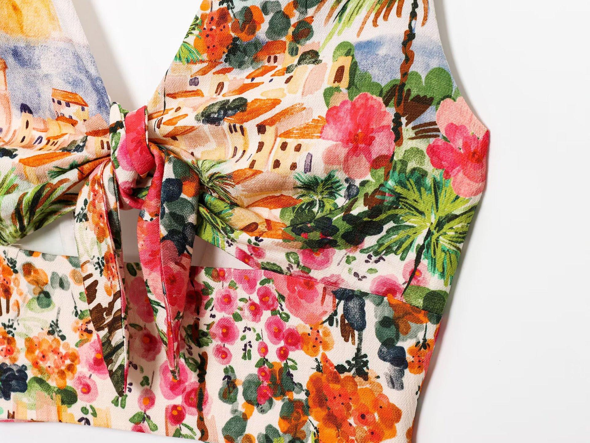 Exportación Transfronteriza Ropa de Mujer 2025 Verano Estilo Europeo y Americano Estampado Twist Tirantes + Traje de Falda para Mujer K41513/4F