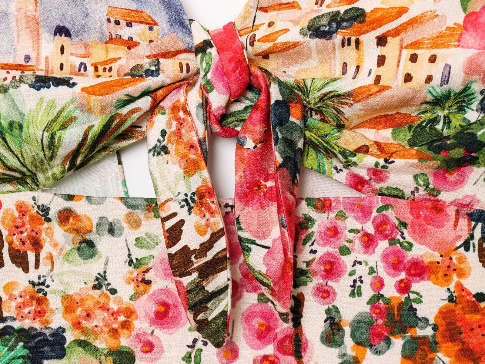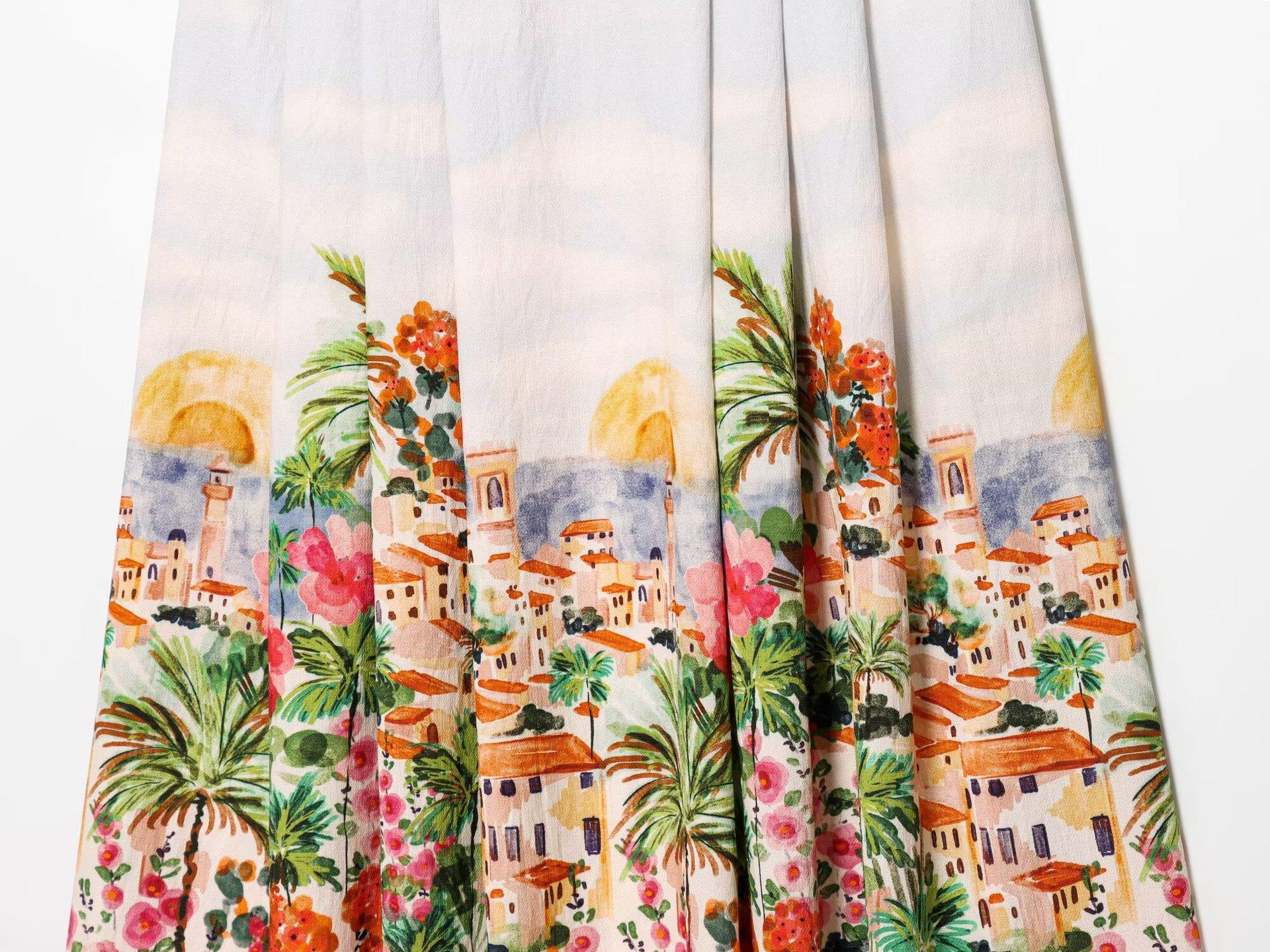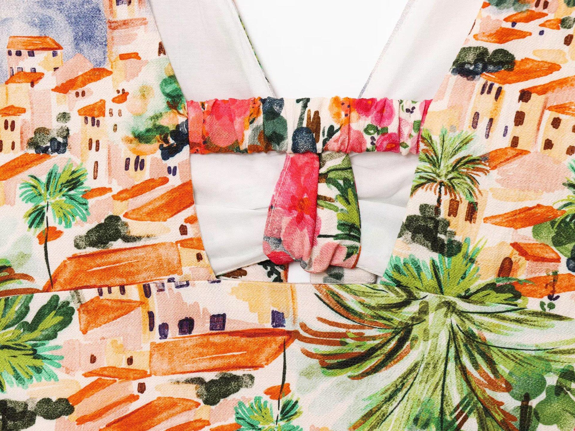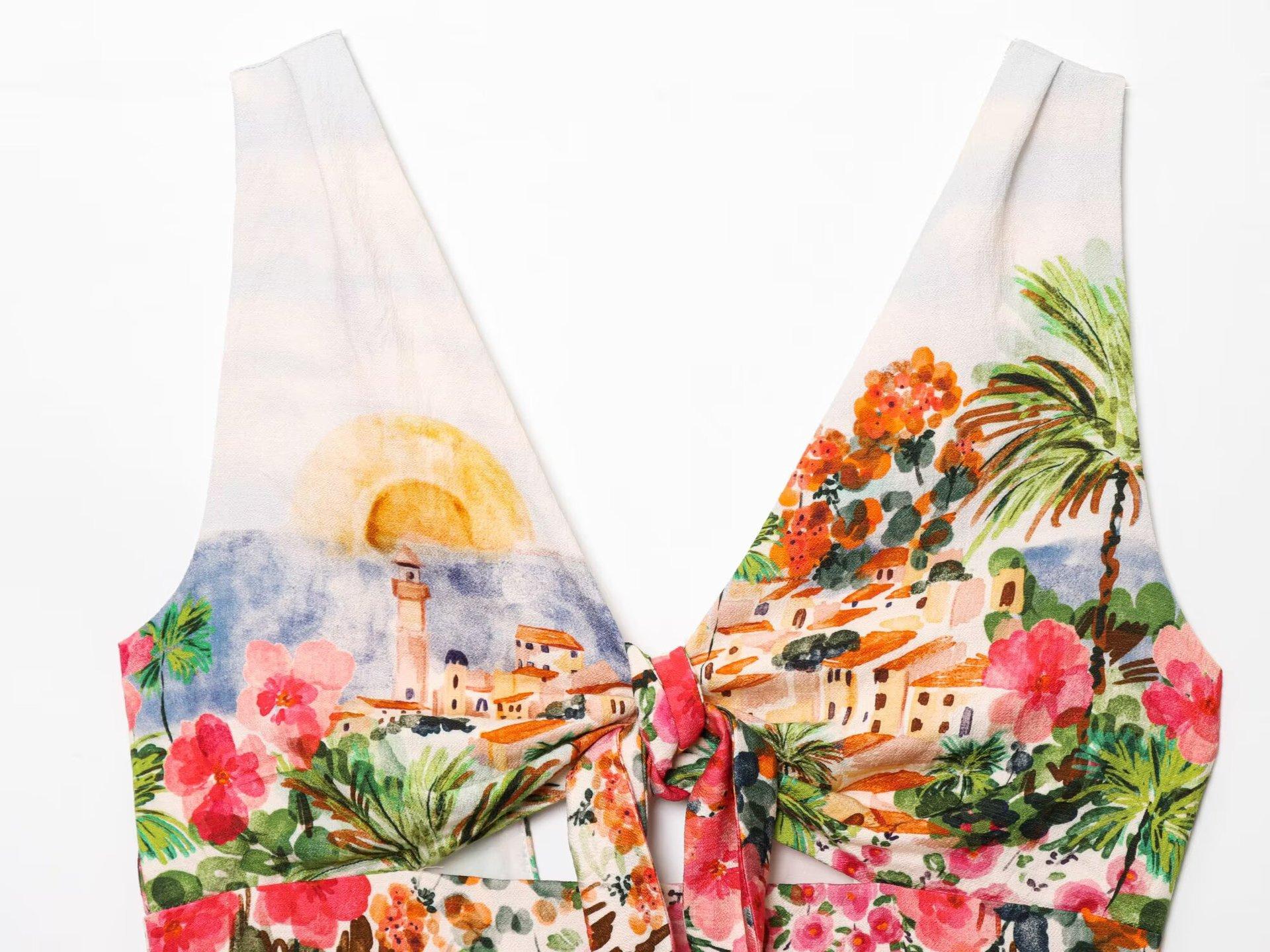 Exportación Transfronteriza Ropa de Mujer 2025 Verano Estilo Europeo y Americano Estampado Twist Tirantes + Traje de Falda para Mujer K41513/4F