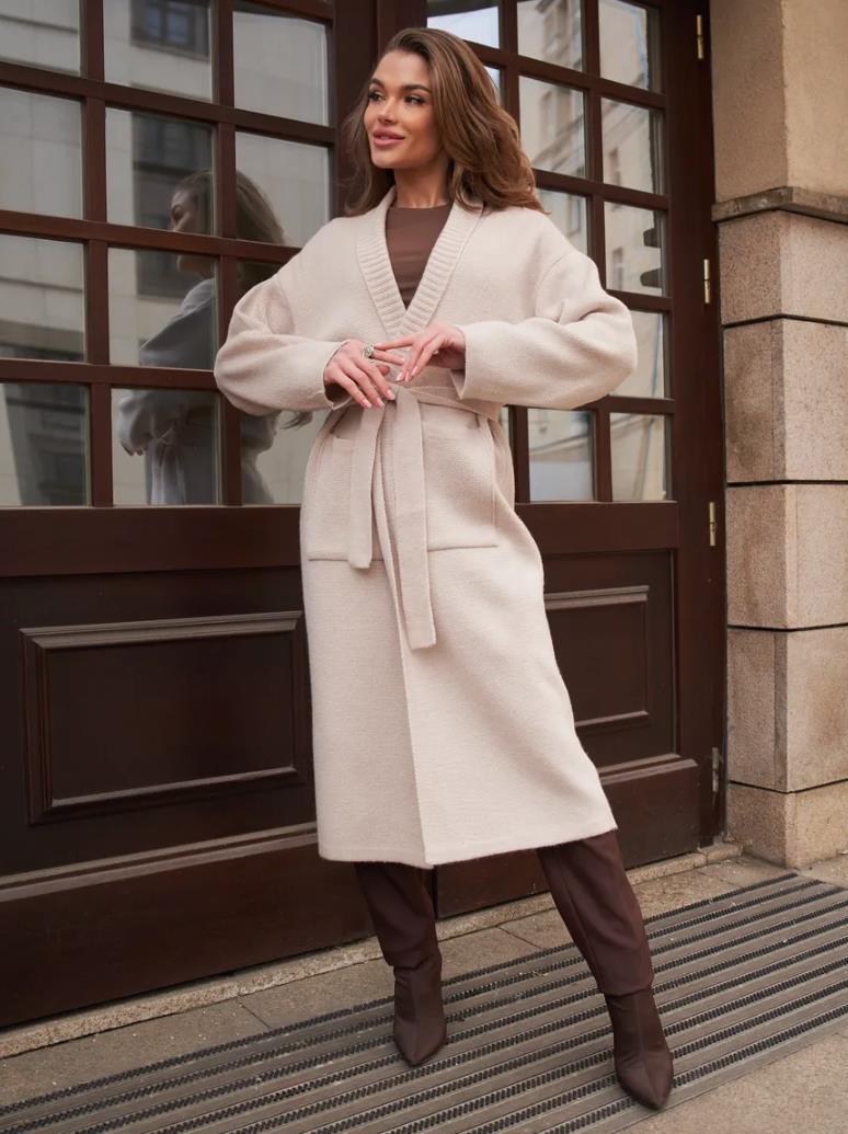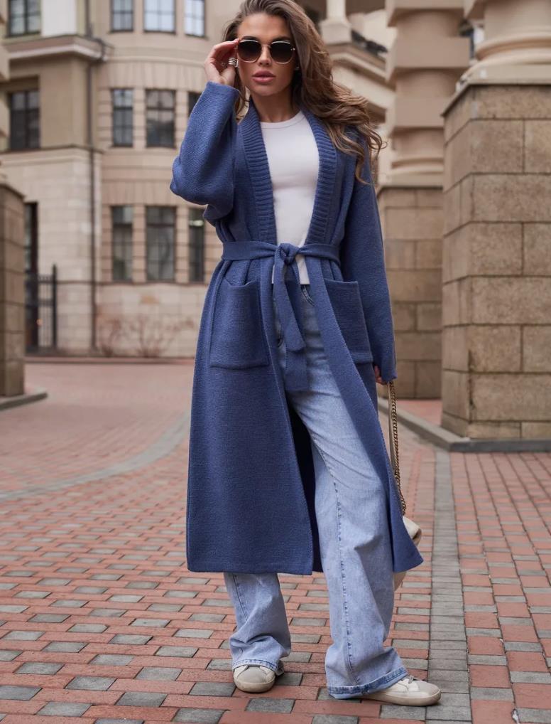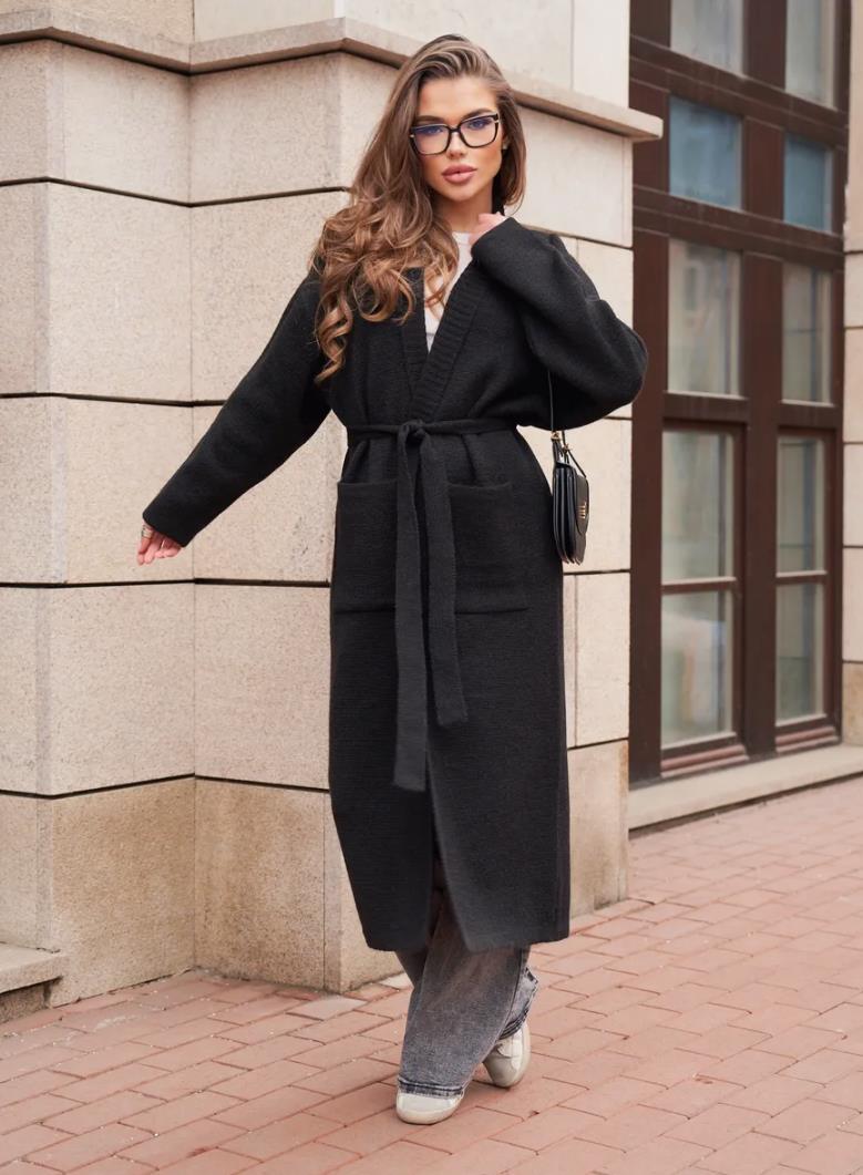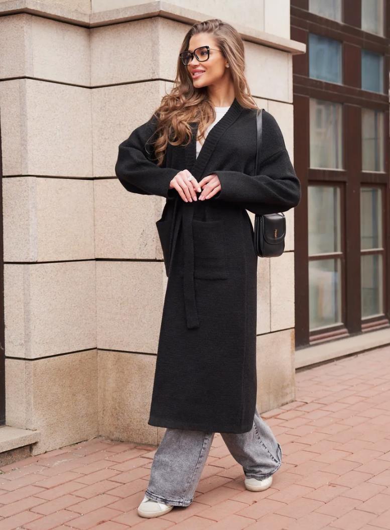 2025 Otoño/Invierno Nuevo Cárdigan de Punto de Solapa Larga Europeo y Americano Suéter Transfronterizo Abrigo Casual Holgado para Mujer Cinturón para Mujer