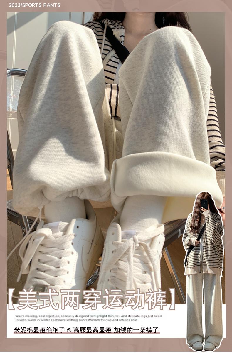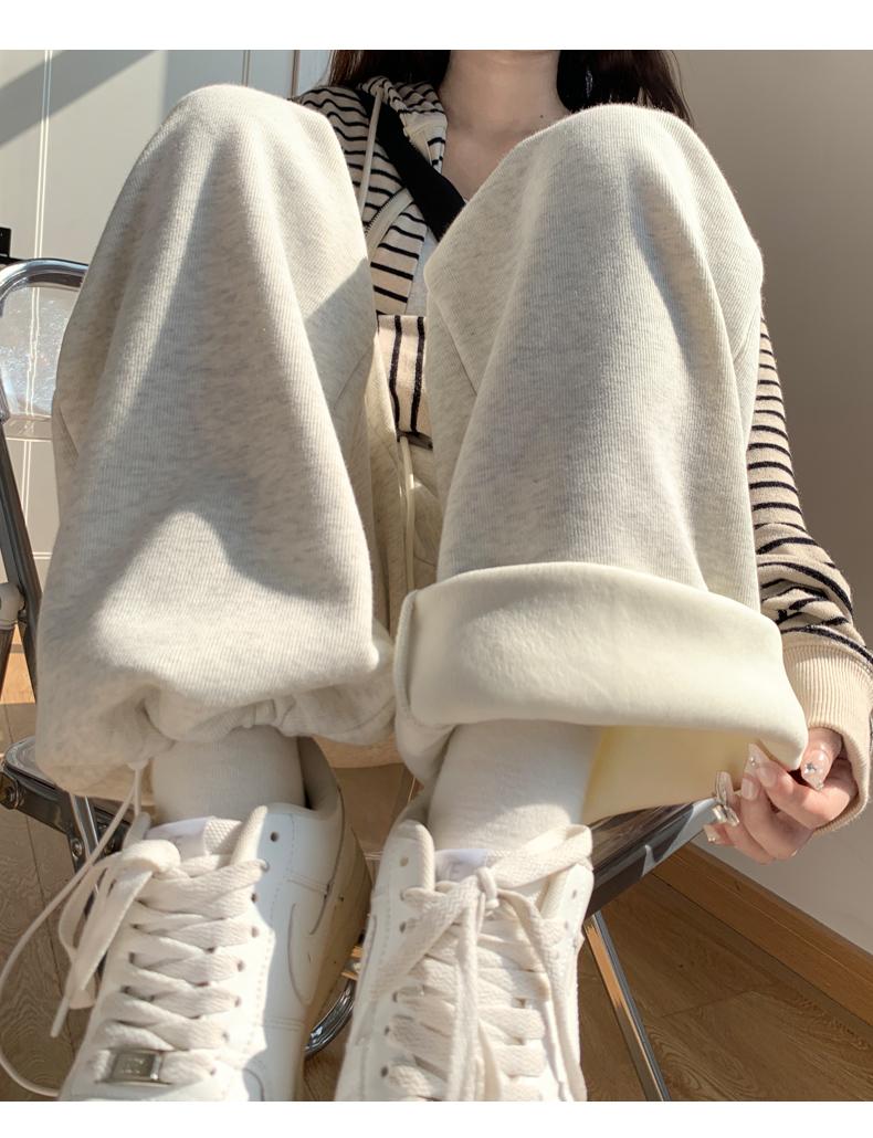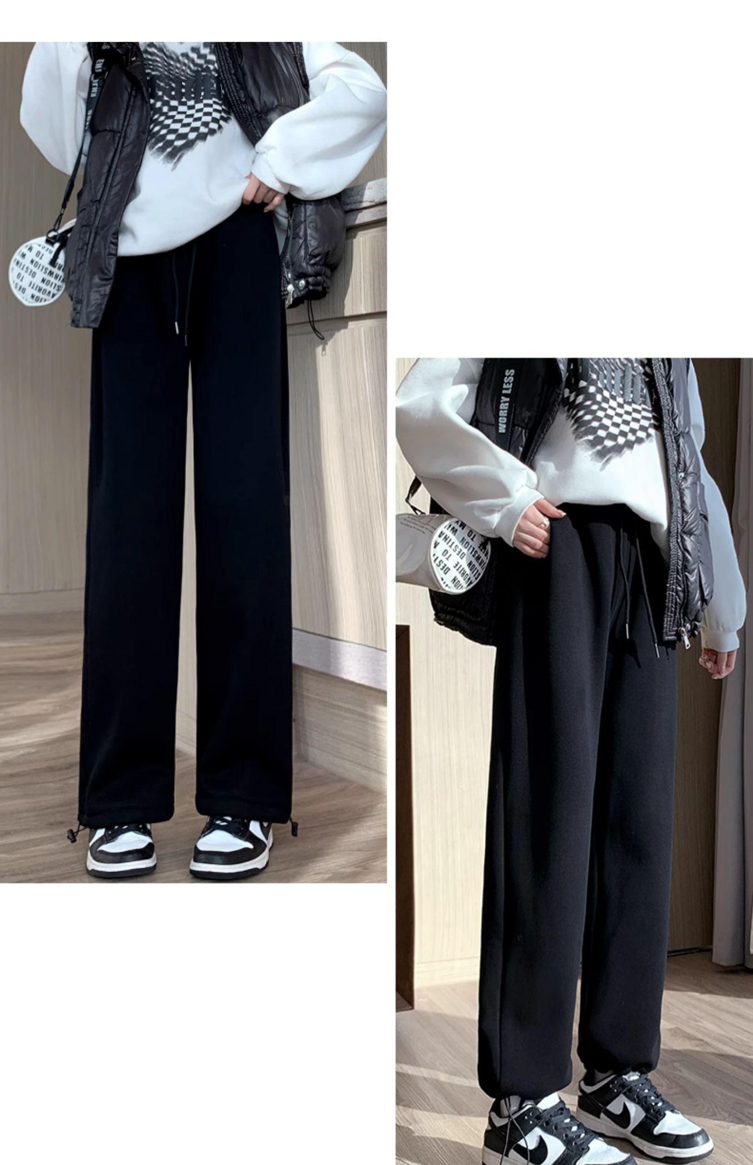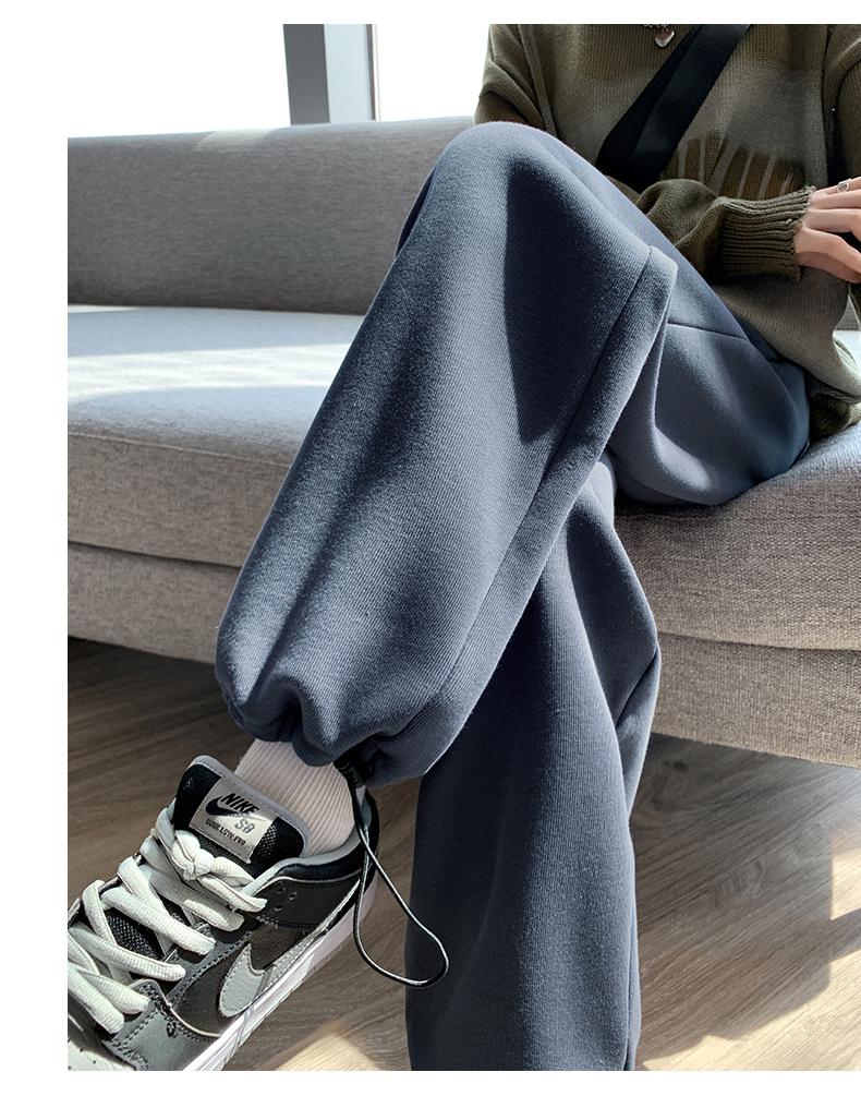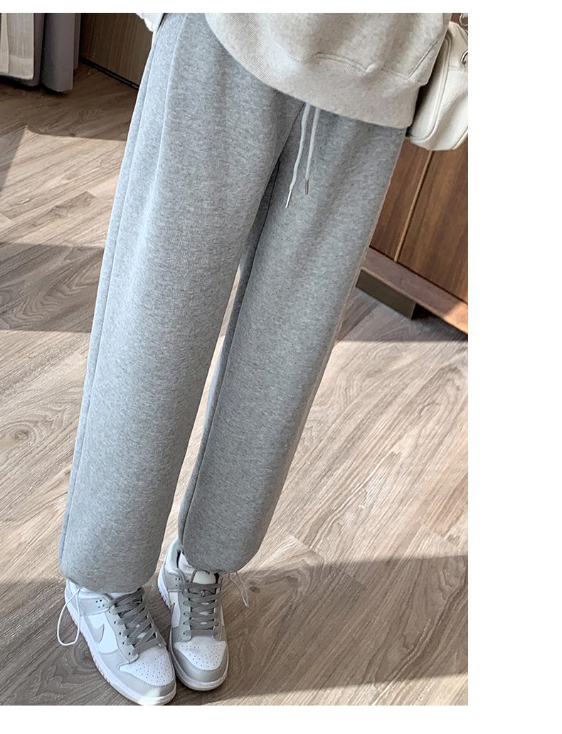 Pantalones deportivos para mujer con forro polar, holgados, con puño, otoño e invierno 2025, nuevos, de pierna recta, pierna ancha, casual americano, grises, pantalones deportivos de primavera y otoño