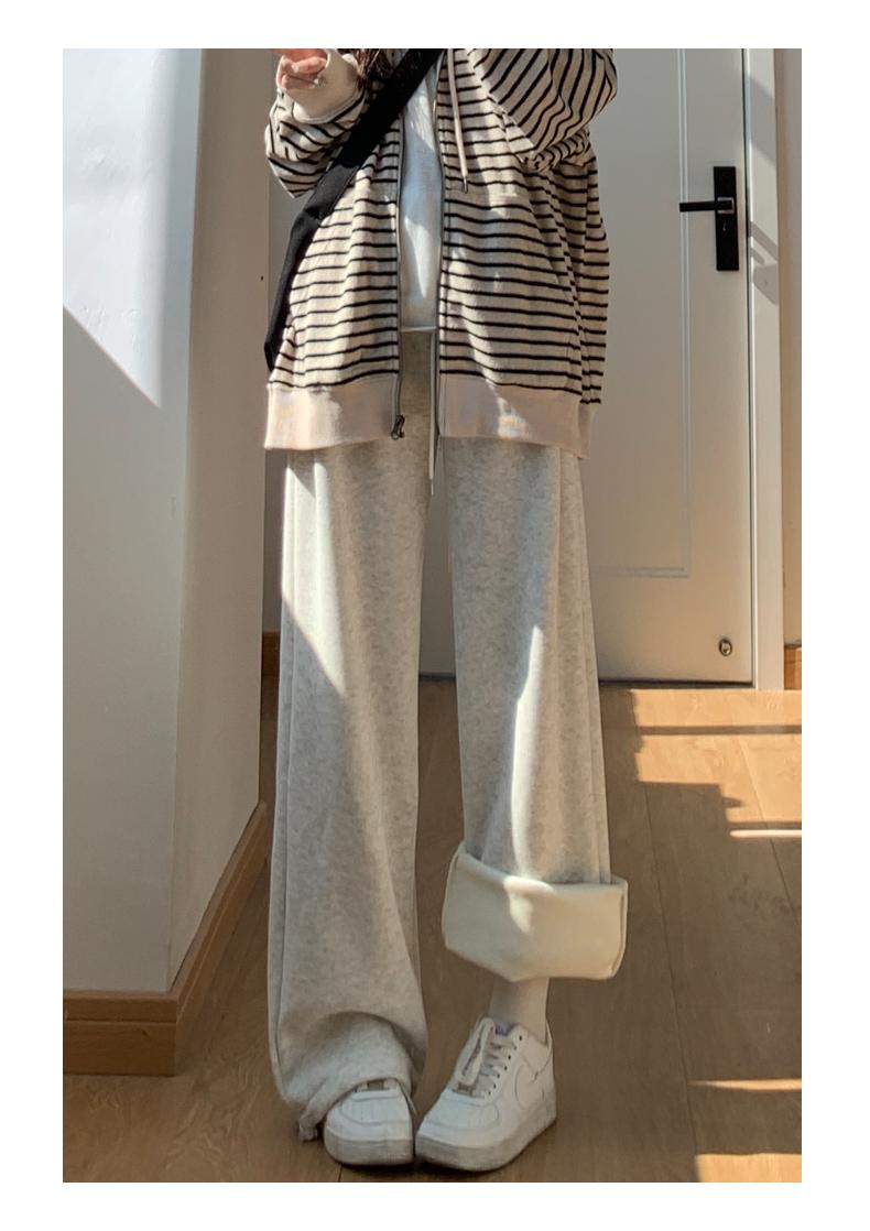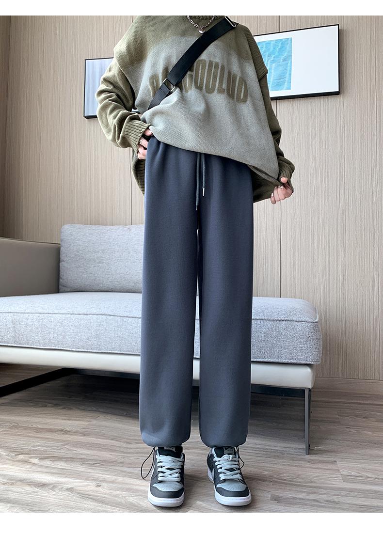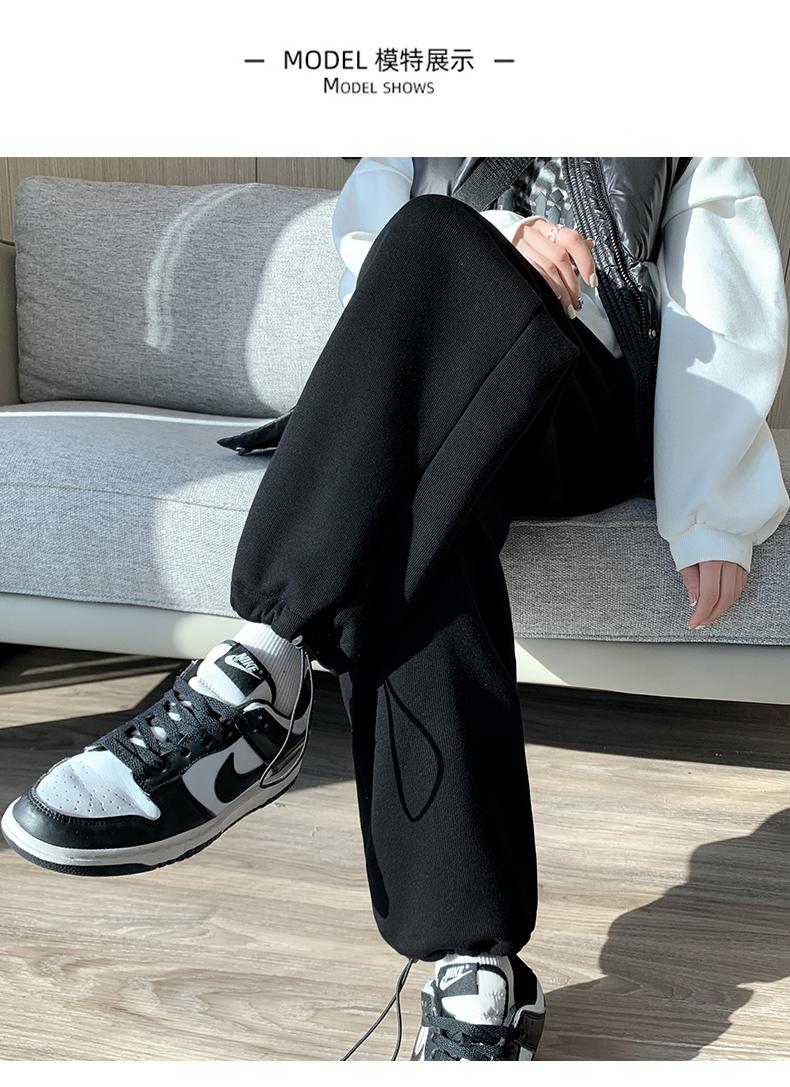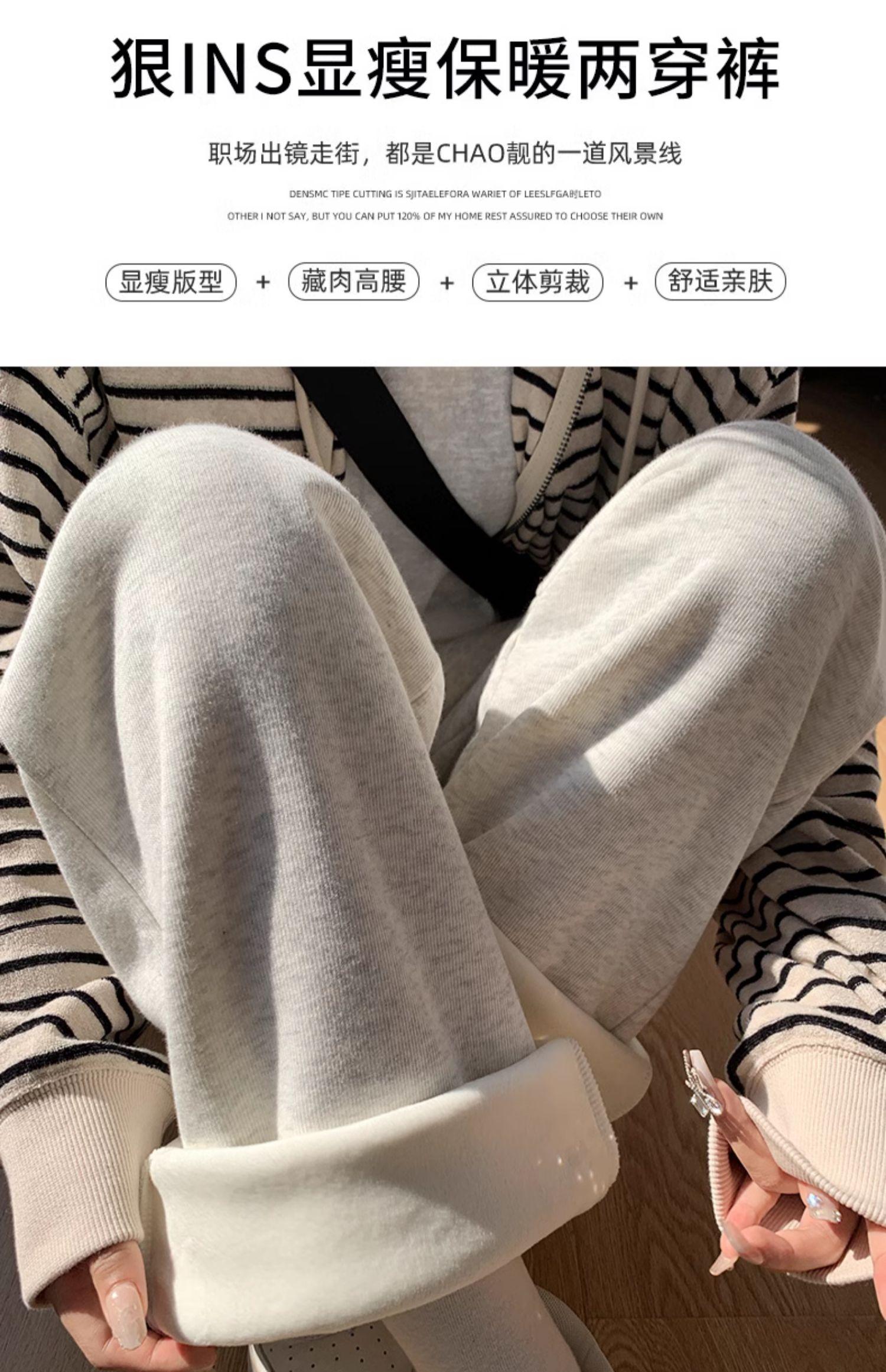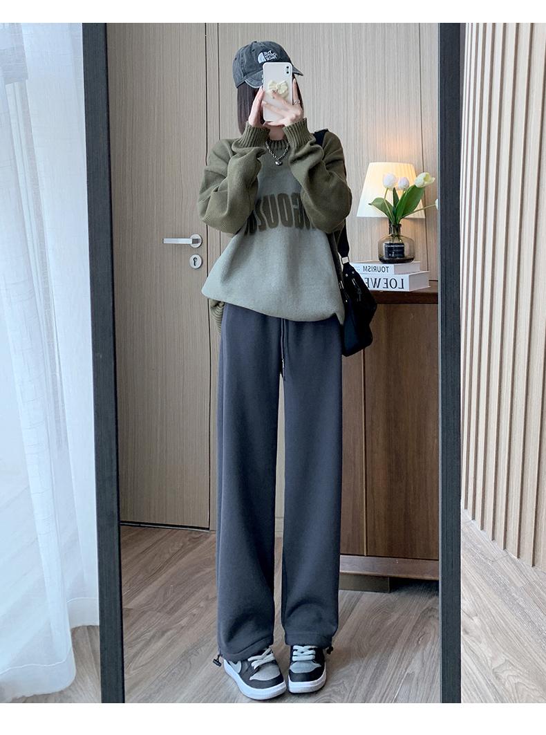 Pantalones deportivos para mujer con forro polar, holgados, con puño, otoño e invierno 2025, nuevos, de pierna recta, pierna ancha, casual americano, grises, pantalones deportivos de primavera y otoño