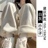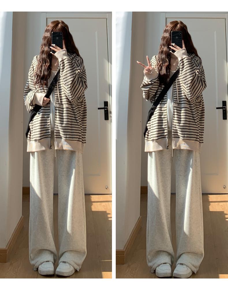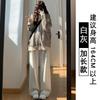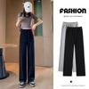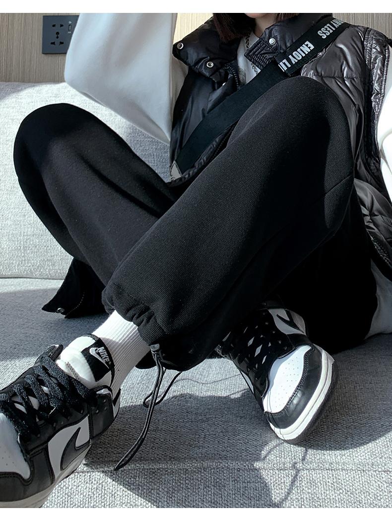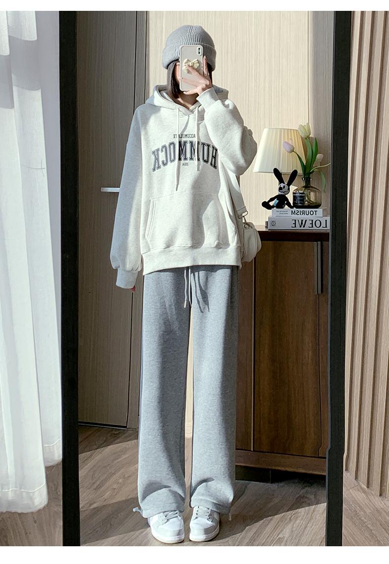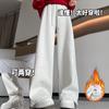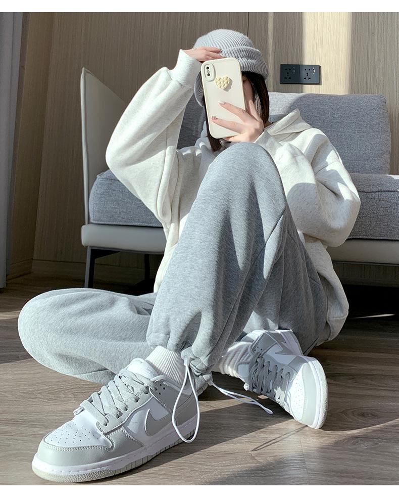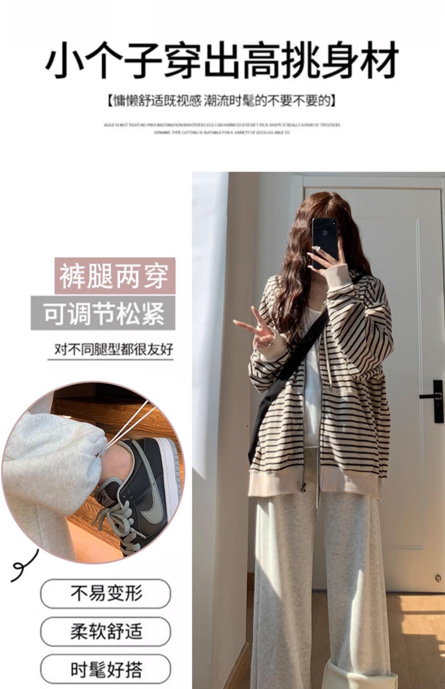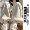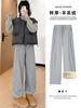 Pantalones deportivos para mujer con forro polar, holgados, con puño, otoño e invierno 2025, nuevos, de pierna recta, pierna ancha, casual americano, grises, pantalones deportivos de primavera y otoño