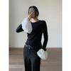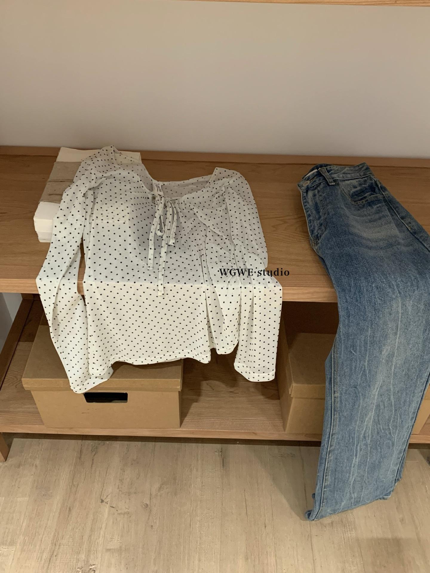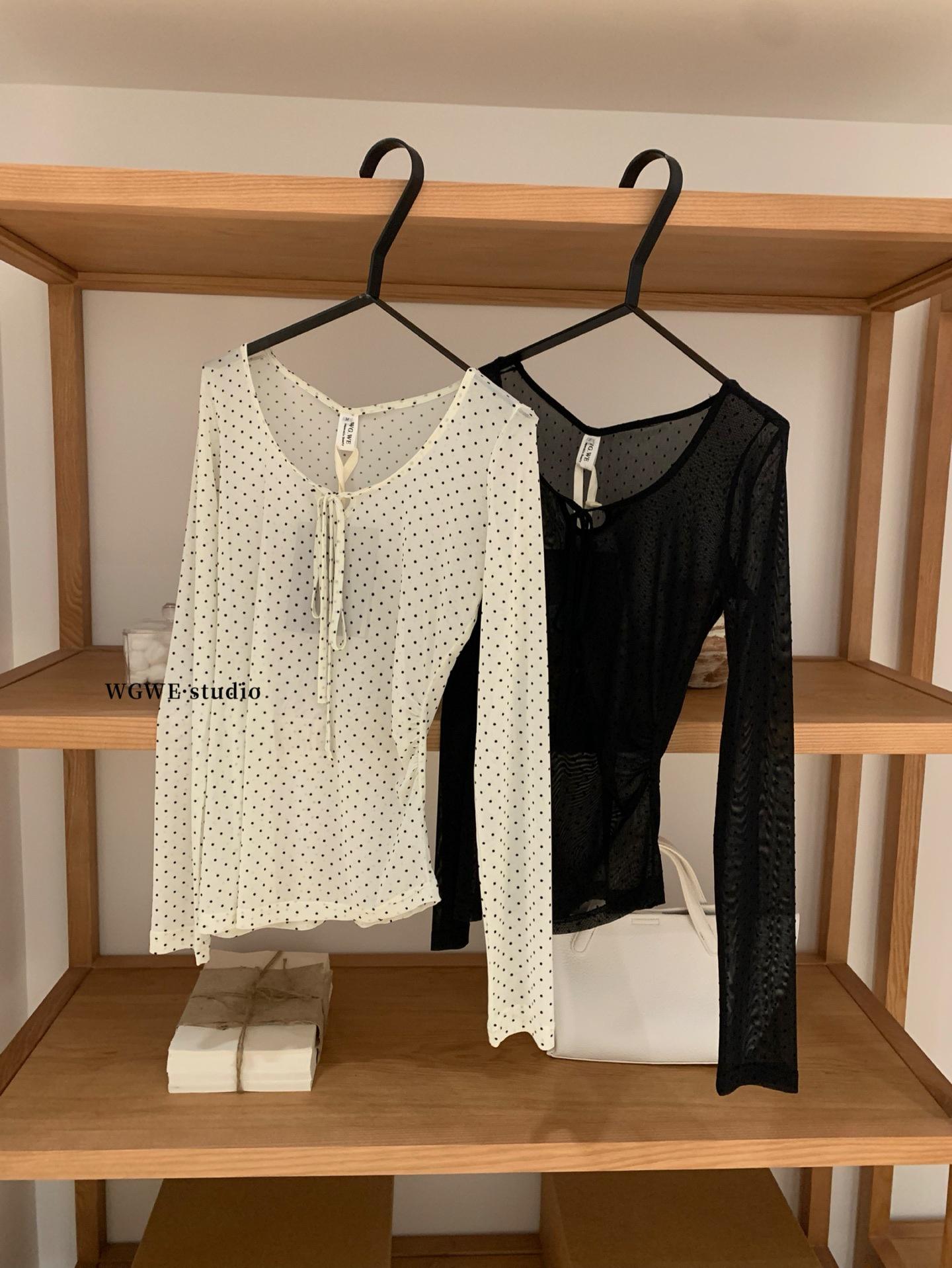 WGWE7225#Trece Líneas Ropa de Mujer 2025 Otoño Nuevo Estilo Cordones Lazo Ropa Exterior Ropa Interior Capas Camiseta Manga Larga