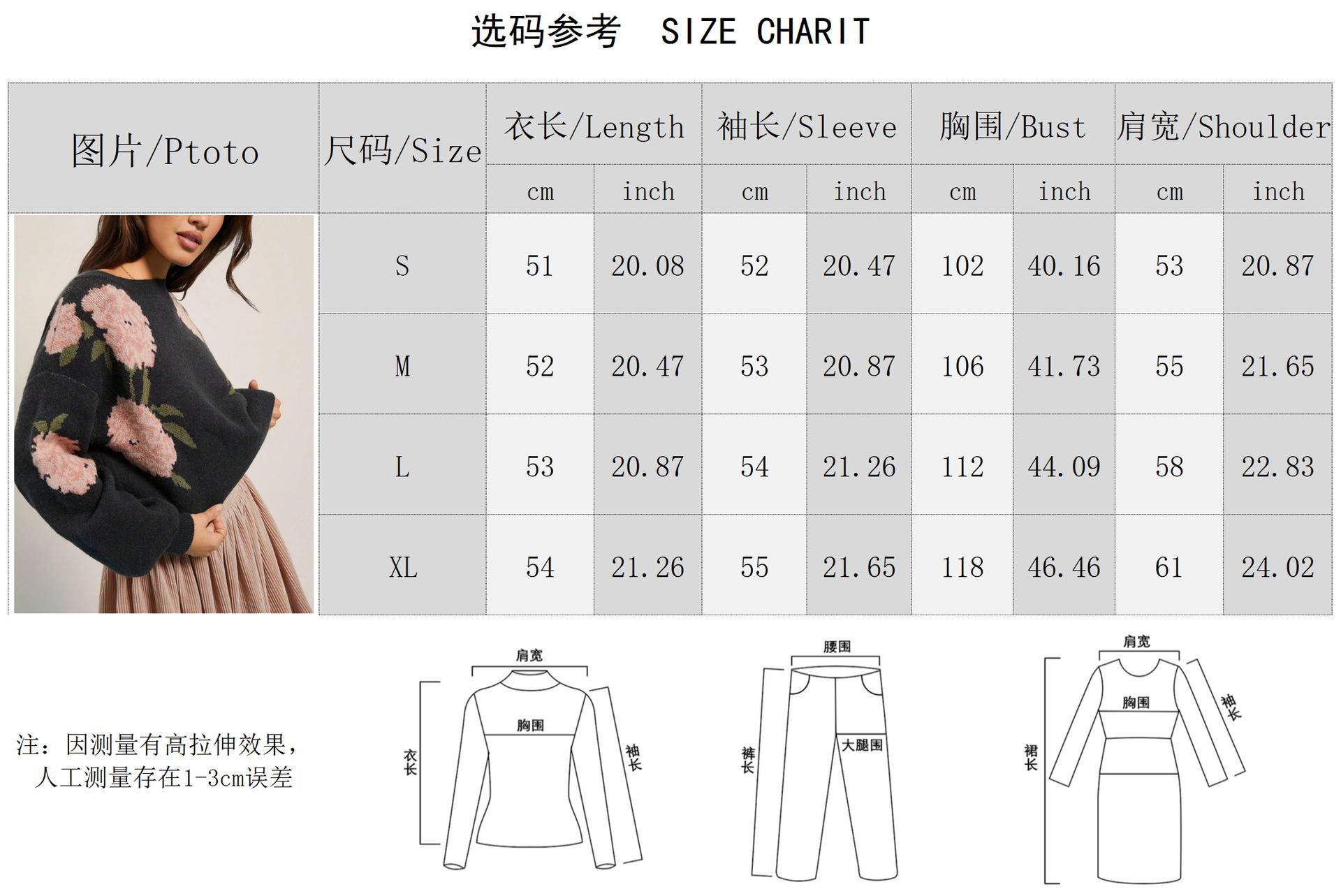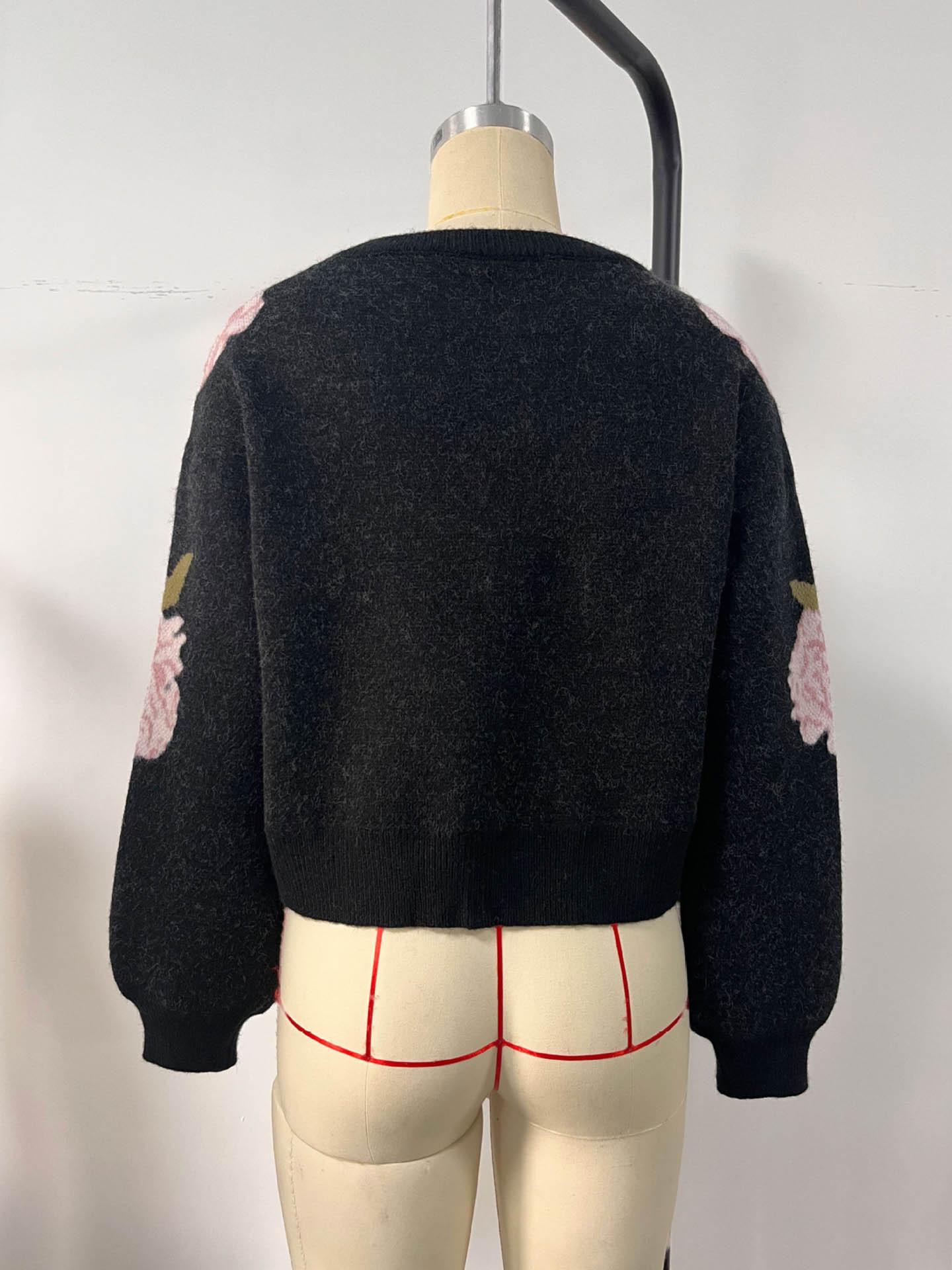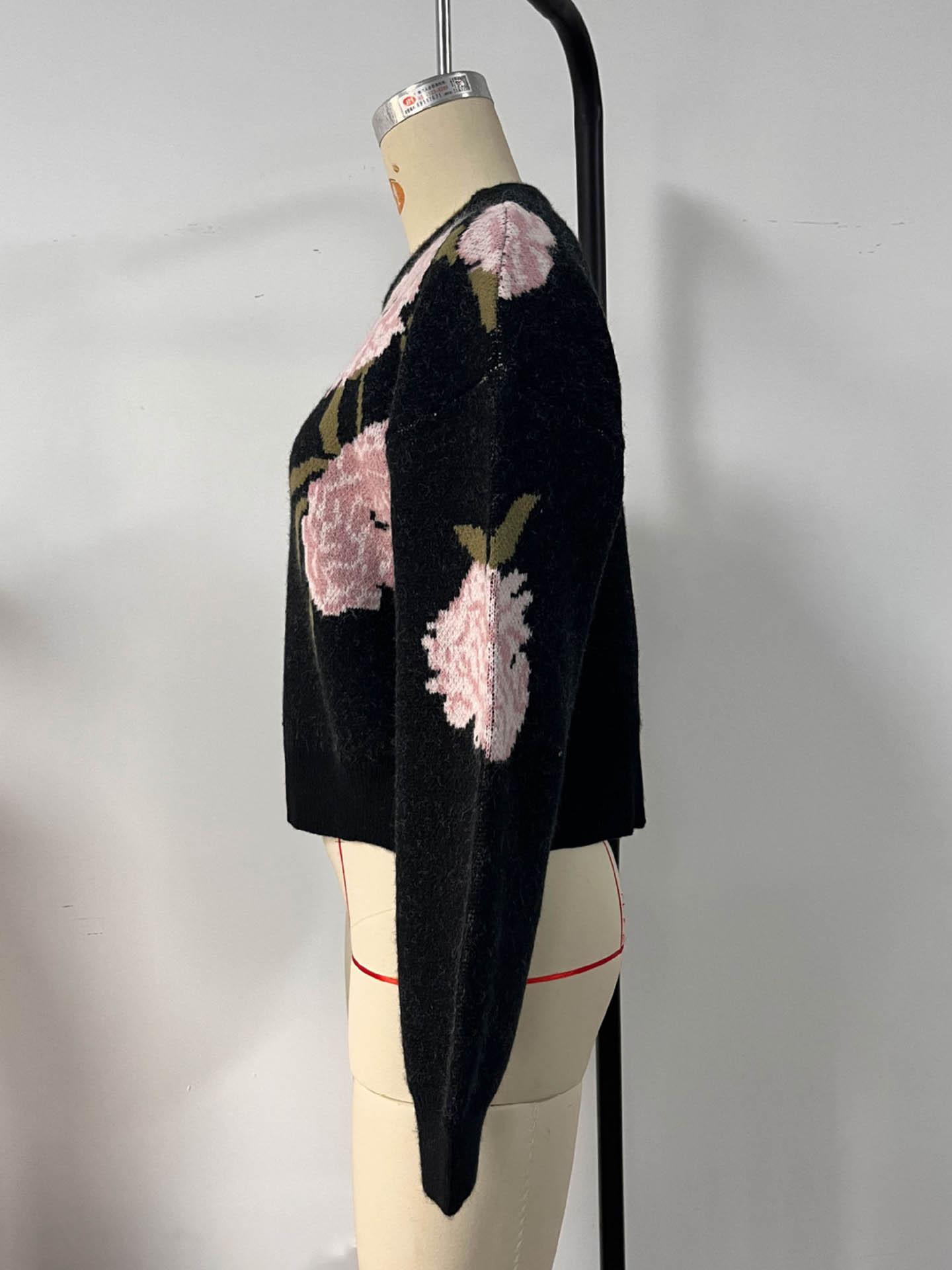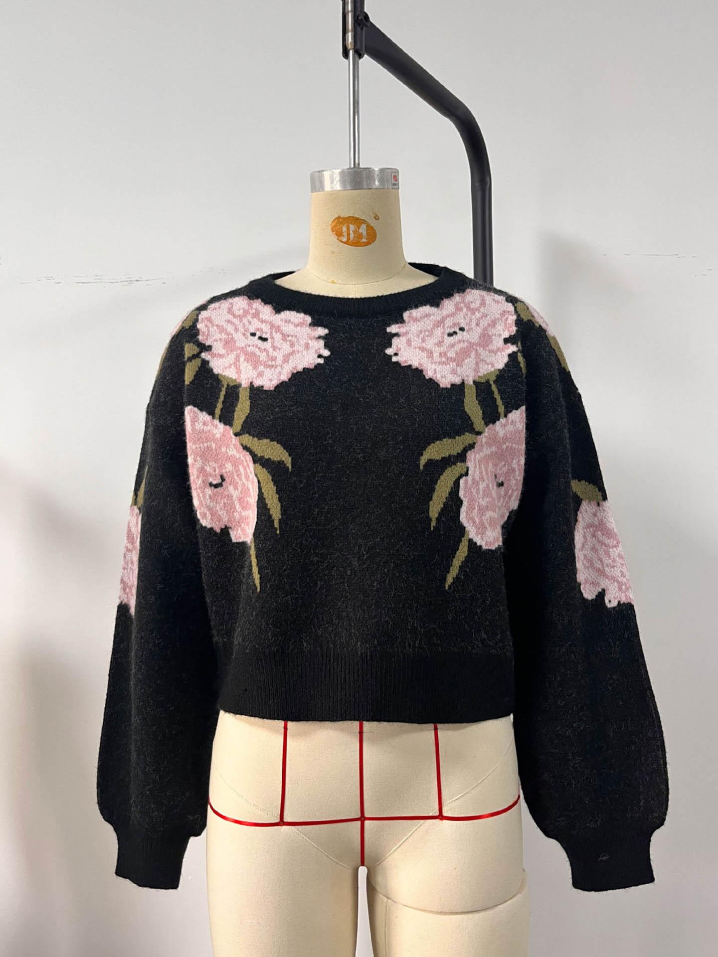 2025 Nuevo Otoño e Invierno Jersey de Punto Jacquard de Flores con Cuello de Línea Única para Mujer Estilo Coreano Suelto Casual Estilo Perezoso