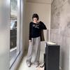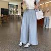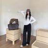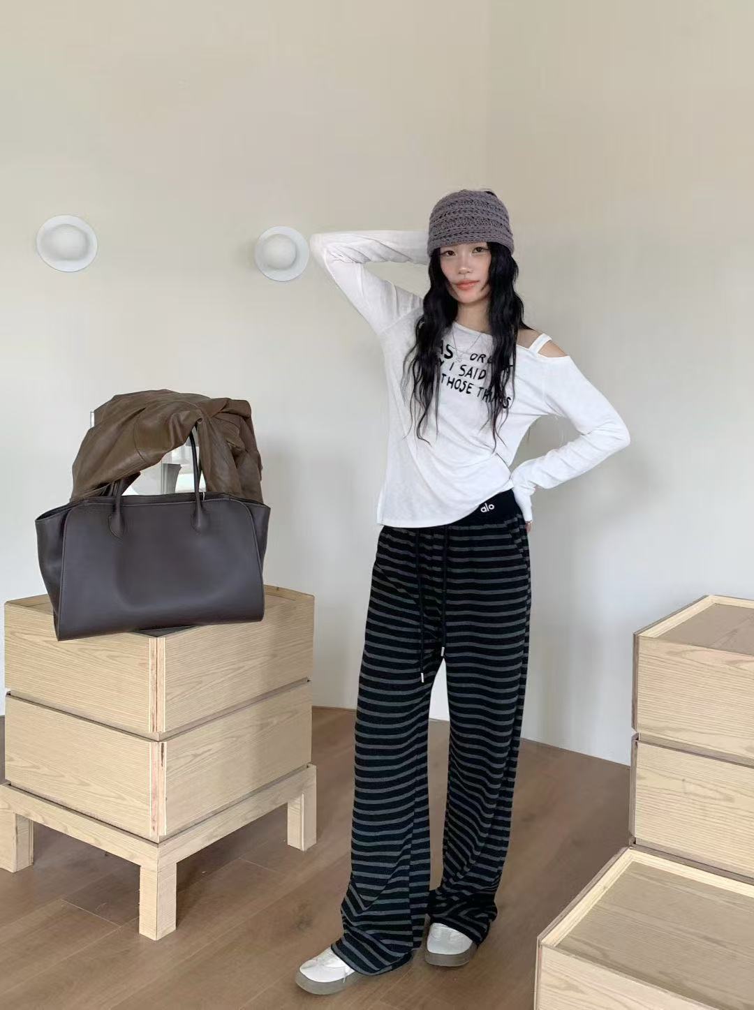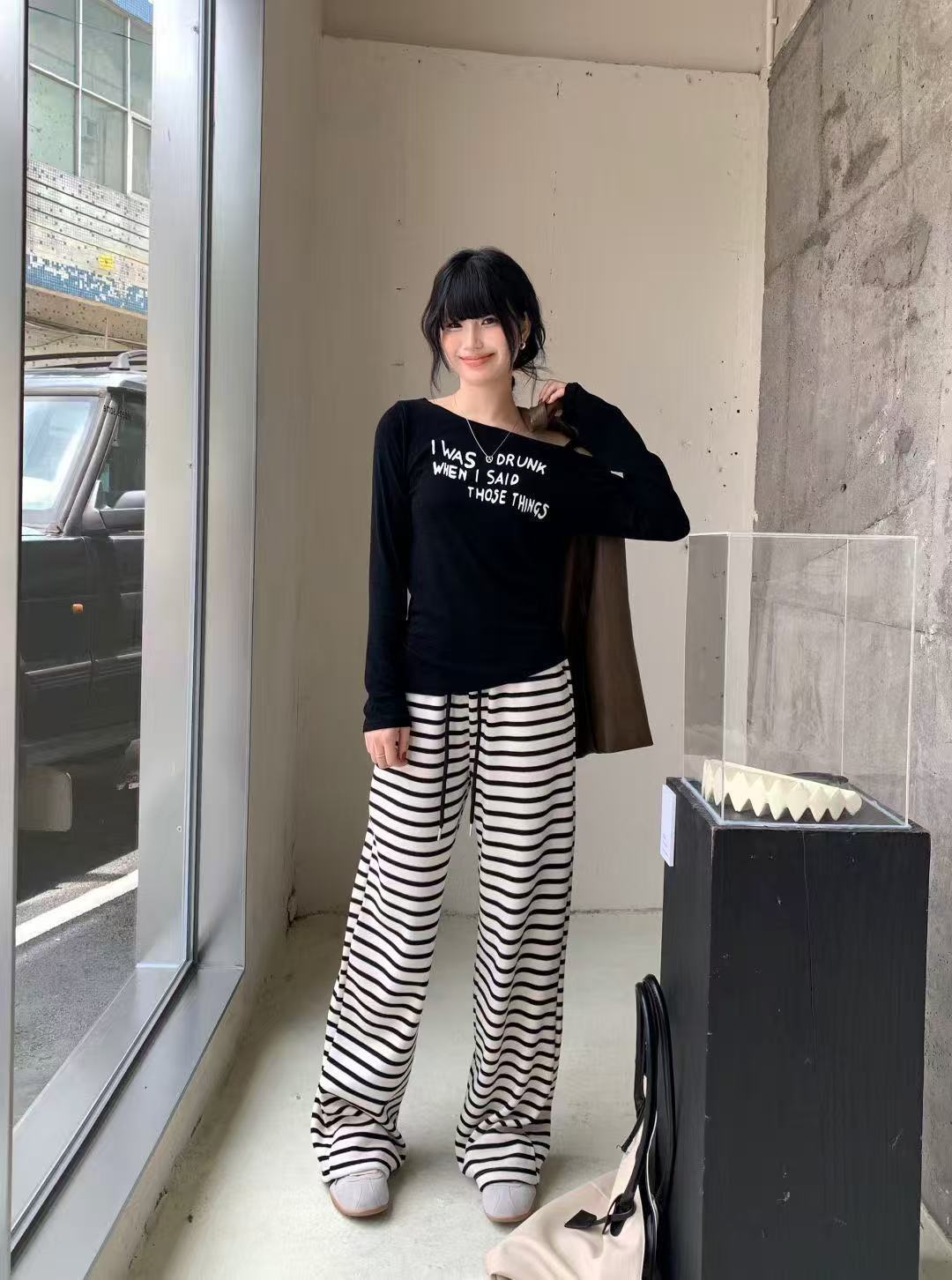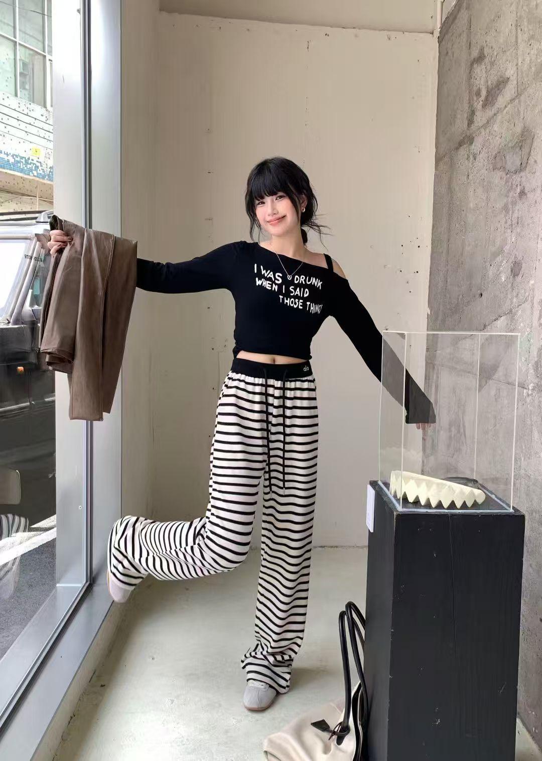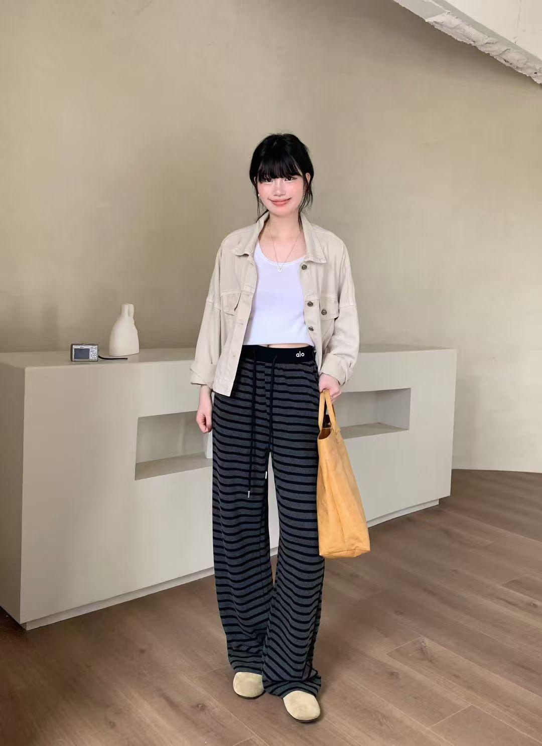 Pantalones Casuales de Punto a Rayas con Bloque de Color Estilo Coreano 2025 Otoño Nuevo Cintura Alta Adelgazantes Versátiles Pierna Recta Pierna Ancha Modernos para Mujer