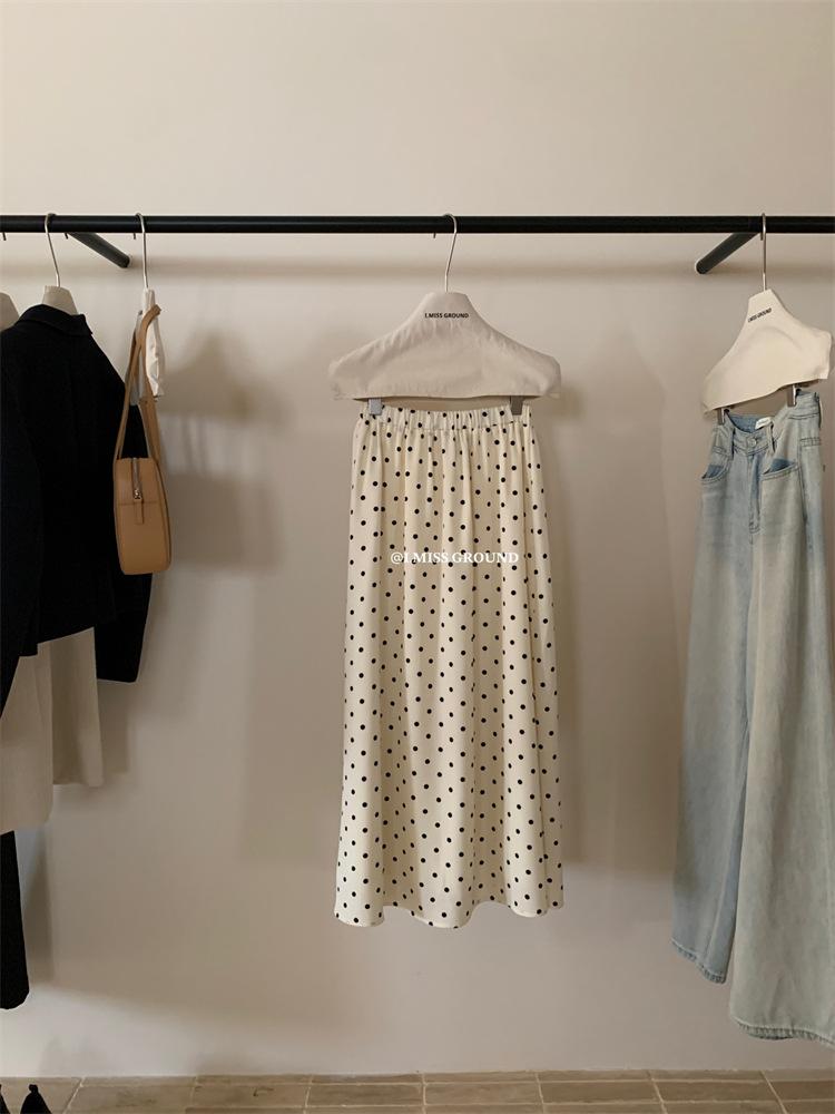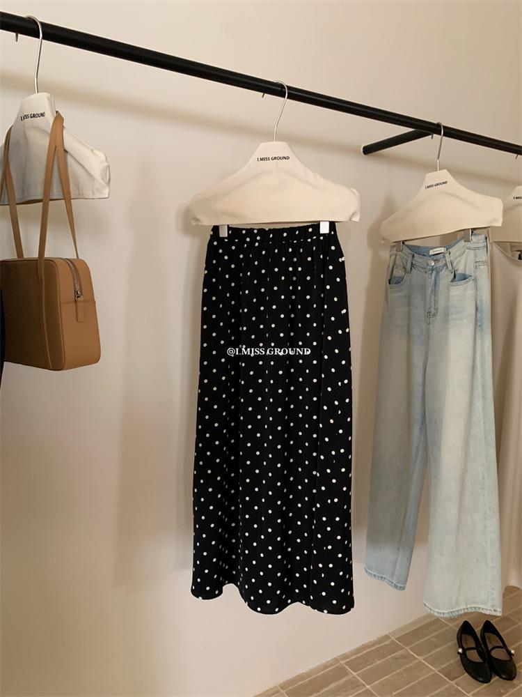 Falda Coreana de Lunares con Estampado Oscuro para Mujer Verano 2024 Nuevo Estilo Francés Cintura Alta Adelgazante Holgada Media Longitud