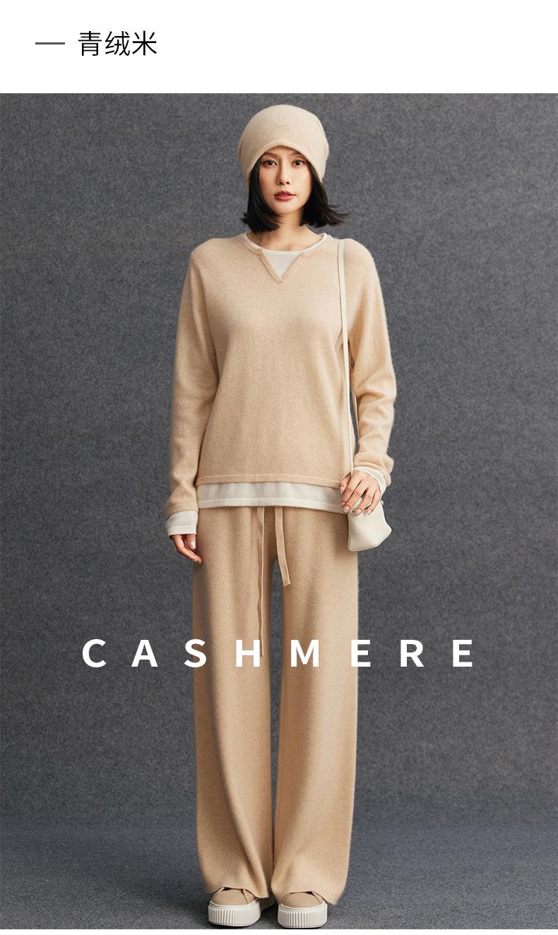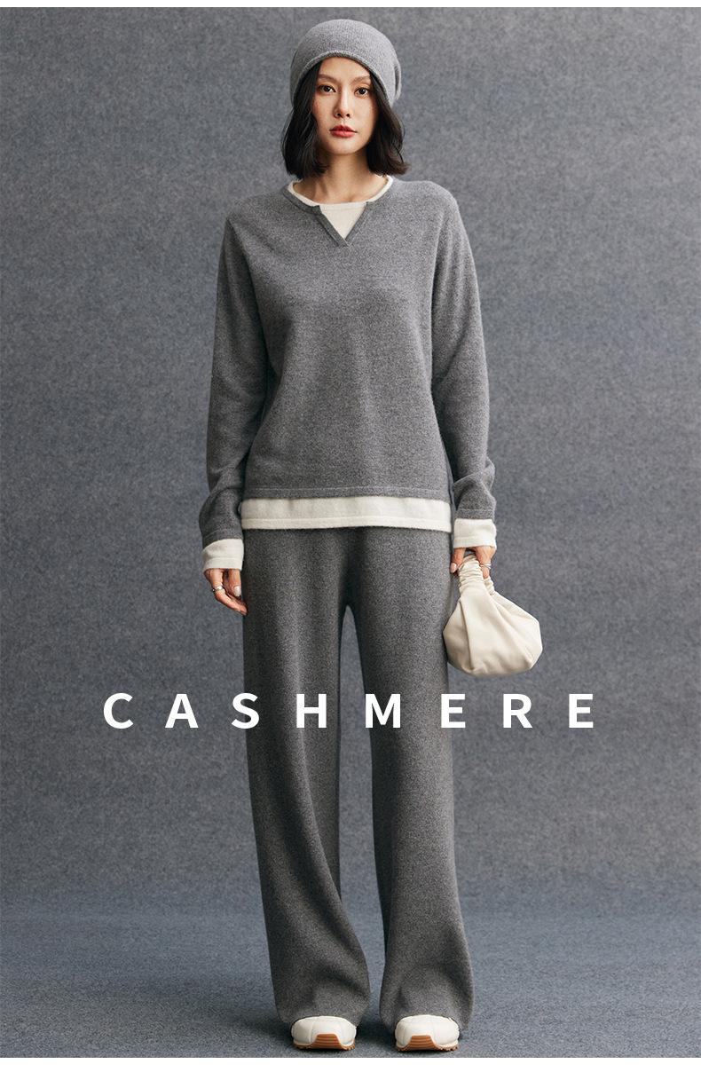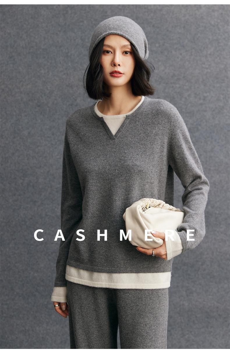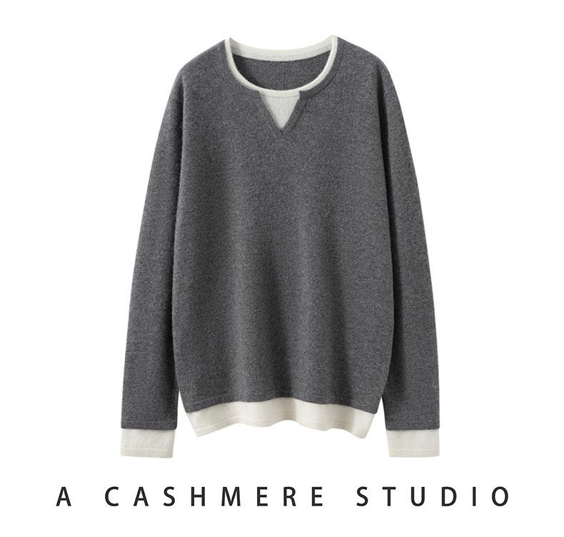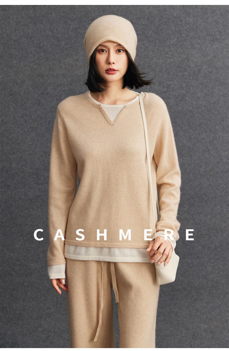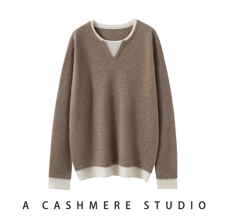 Cachmere para Mujer Cuello Redondo Falso Dos Piezas Moda Casual Temperamento Sencillo Suelto Versátil Suéter de Cachmere Otoño e Invierno Nuevo