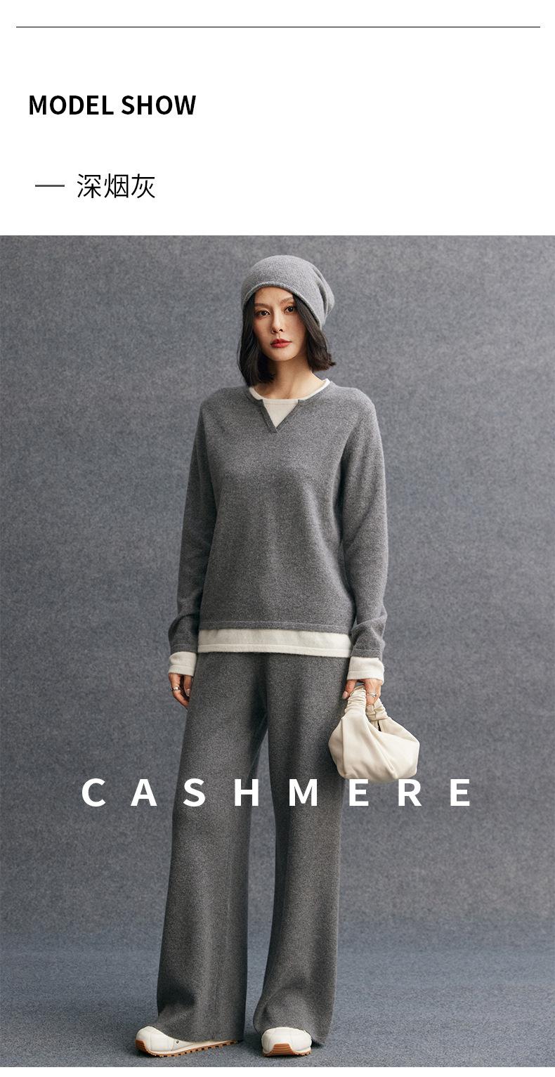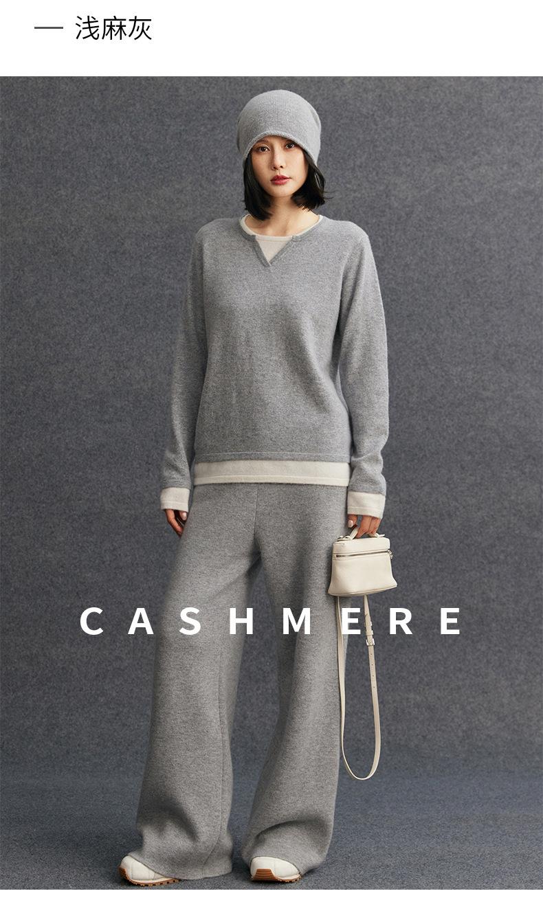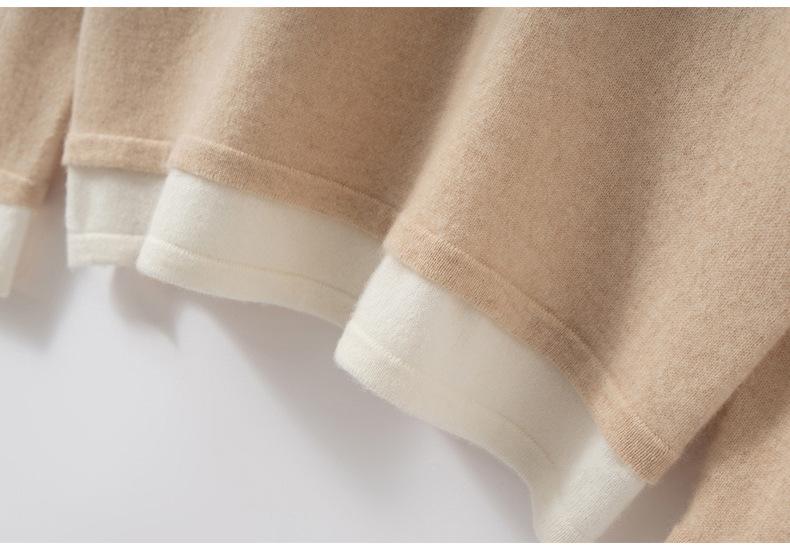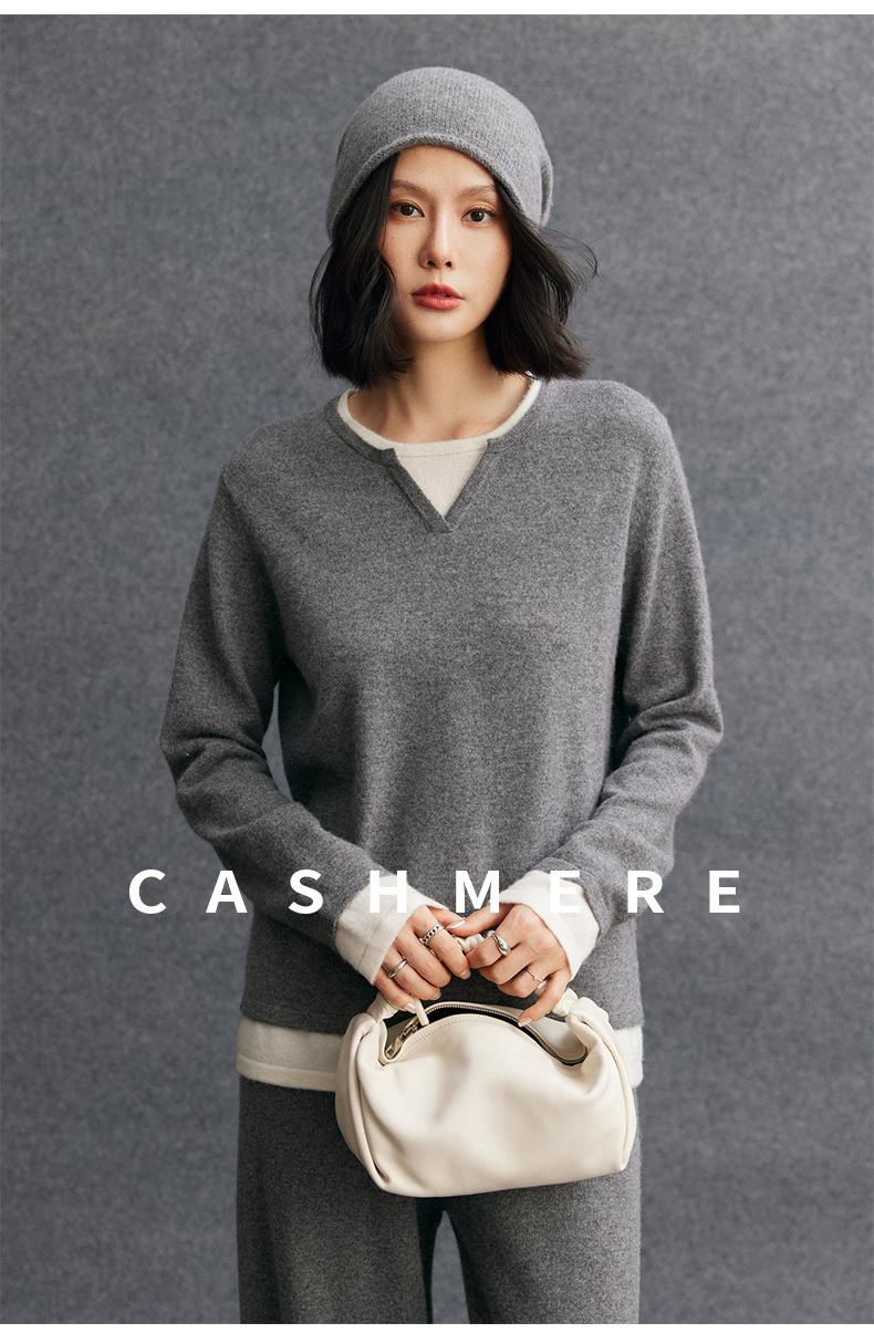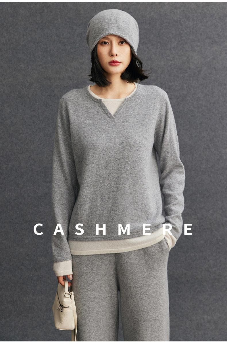 Cachmere para Mujer Cuello Redondo Falso Dos Piezas Moda Casual Temperamento Sencillo Suelto Versátil Suéter de Cachmere Otoño e Invierno Nuevo