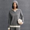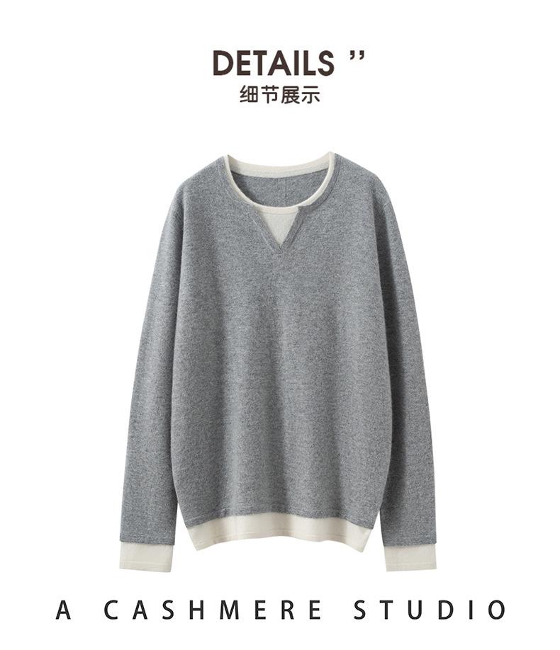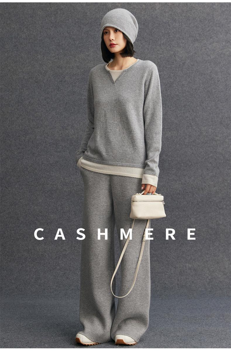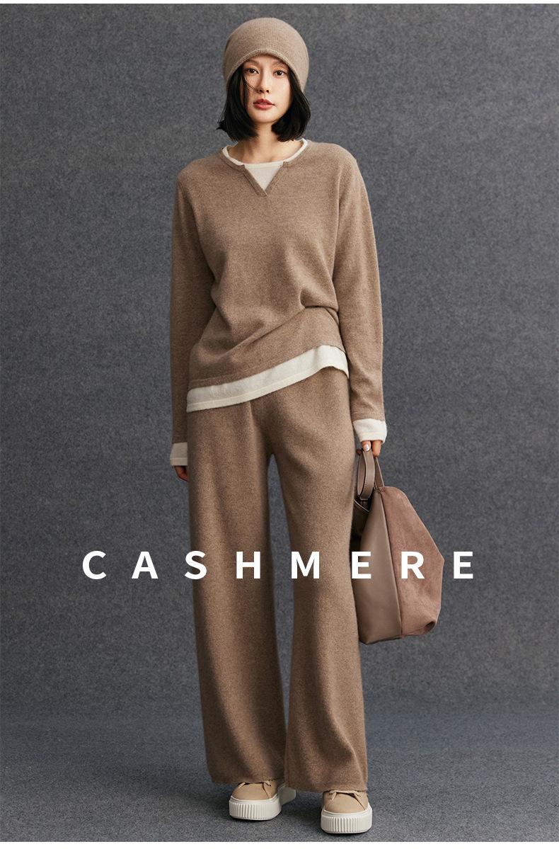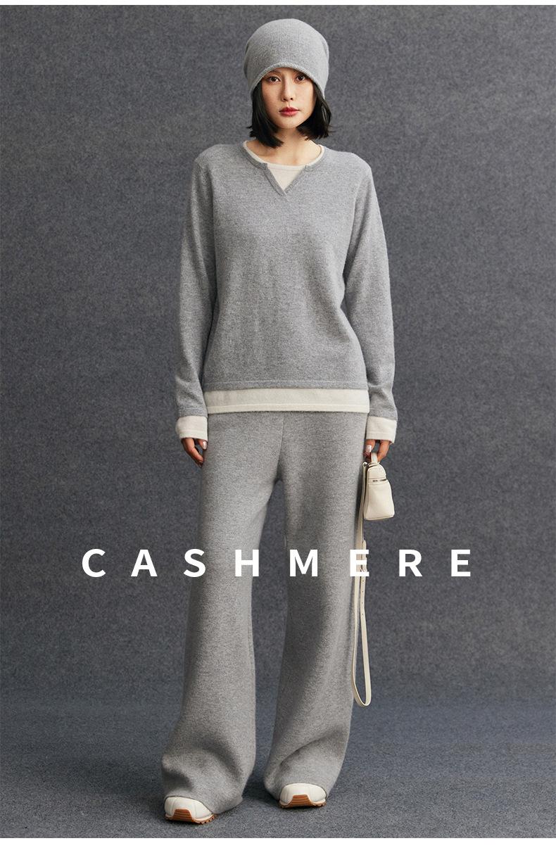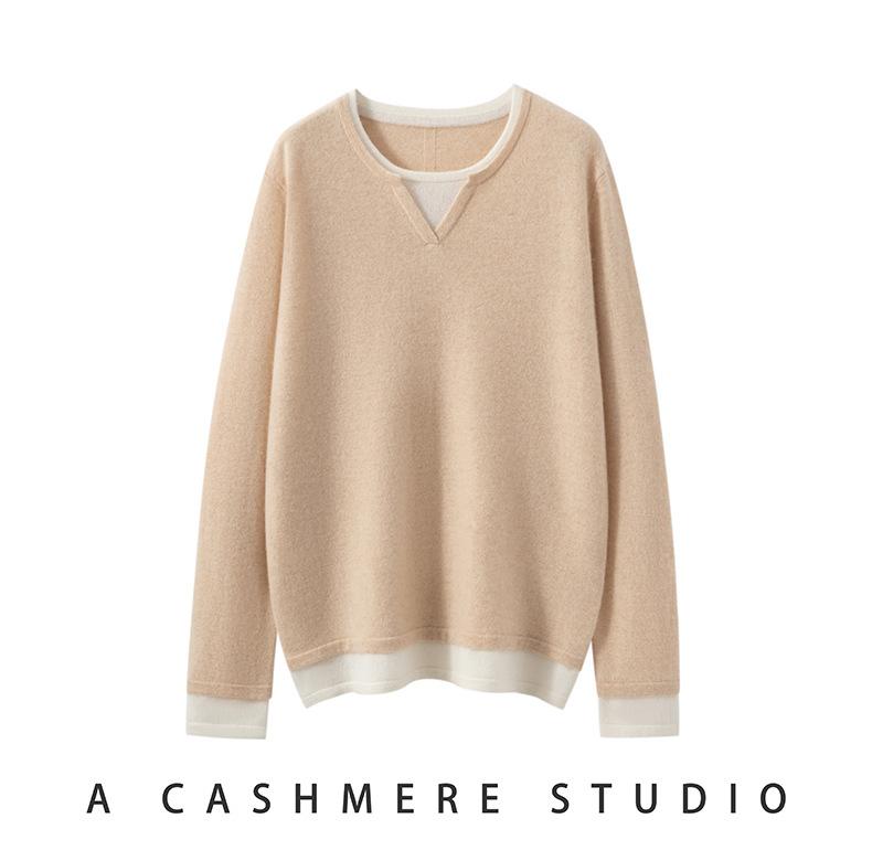 Cachmere para Mujer Cuello Redondo Falso Dos Piezas Moda Casual Temperamento Sencillo Suelto Versátil Suéter de Cachmere Otoño e Invierno Nuevo