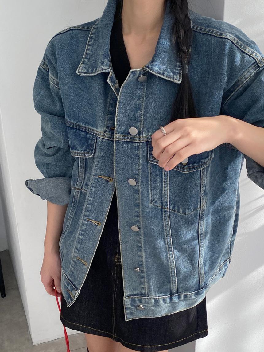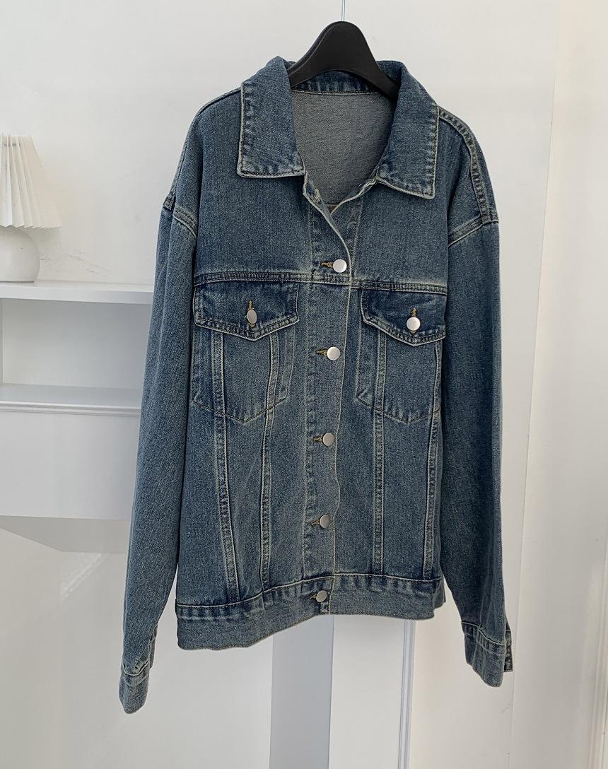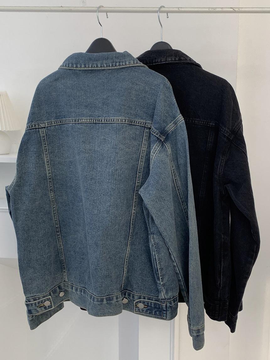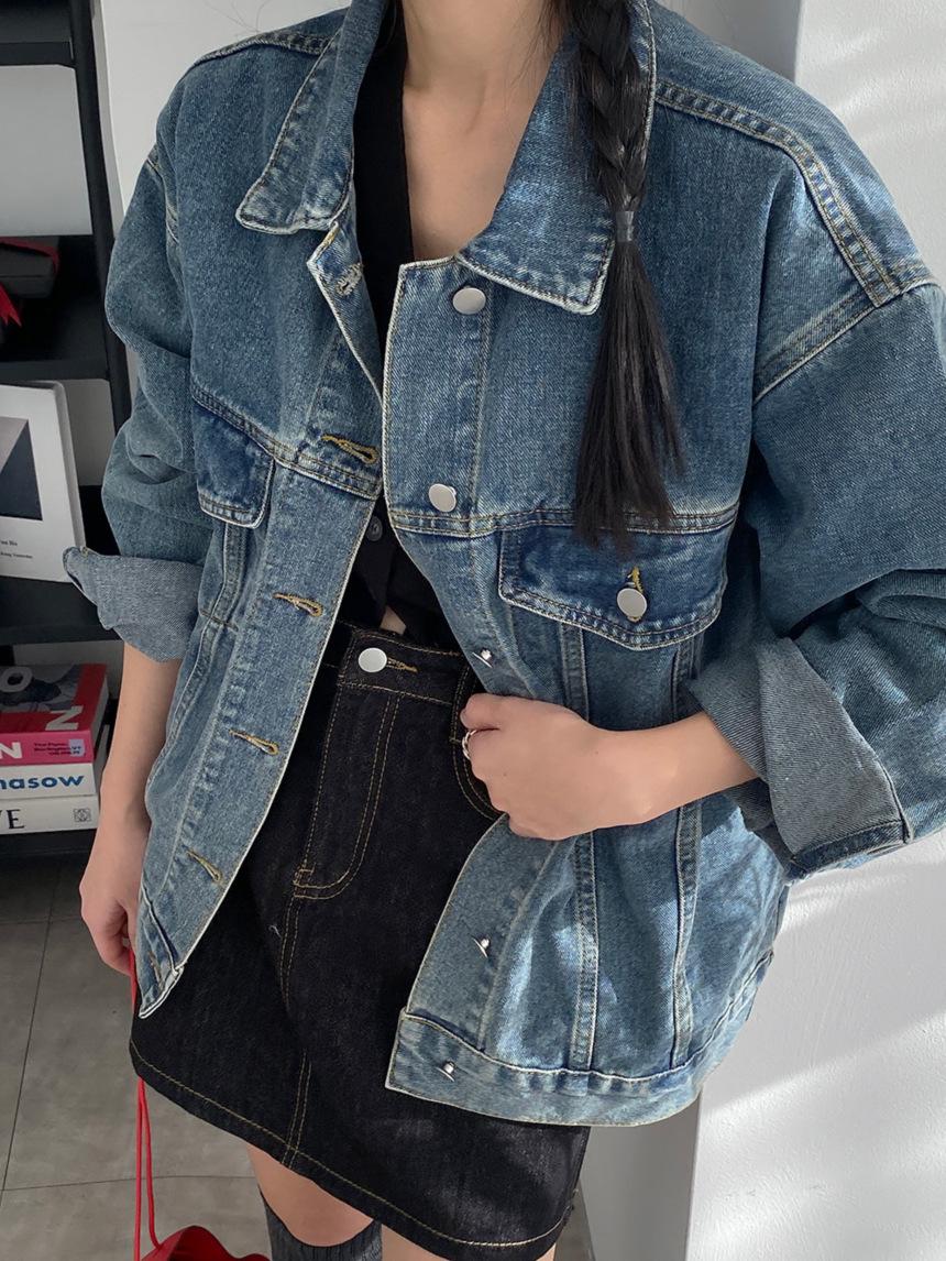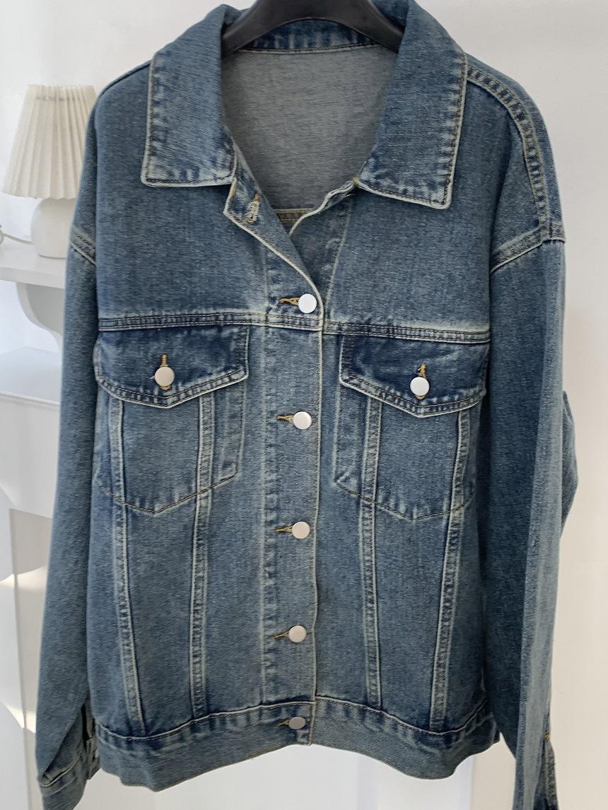 2025 Otoño Nuevo Estilo Coreano Nunca-Te-Cansas-de Chaqueta de Mezclilla~Chaqueta Estilo Boyfriend Azul Lavado Vintage Mujer