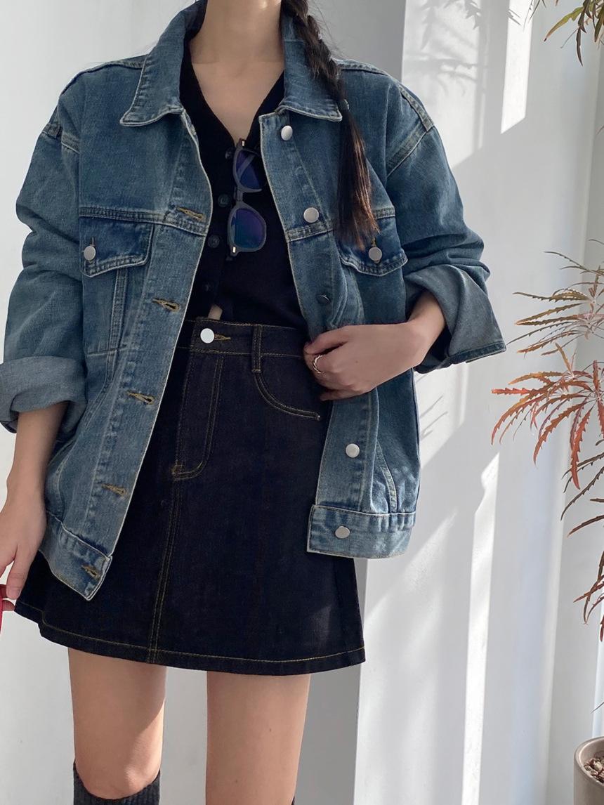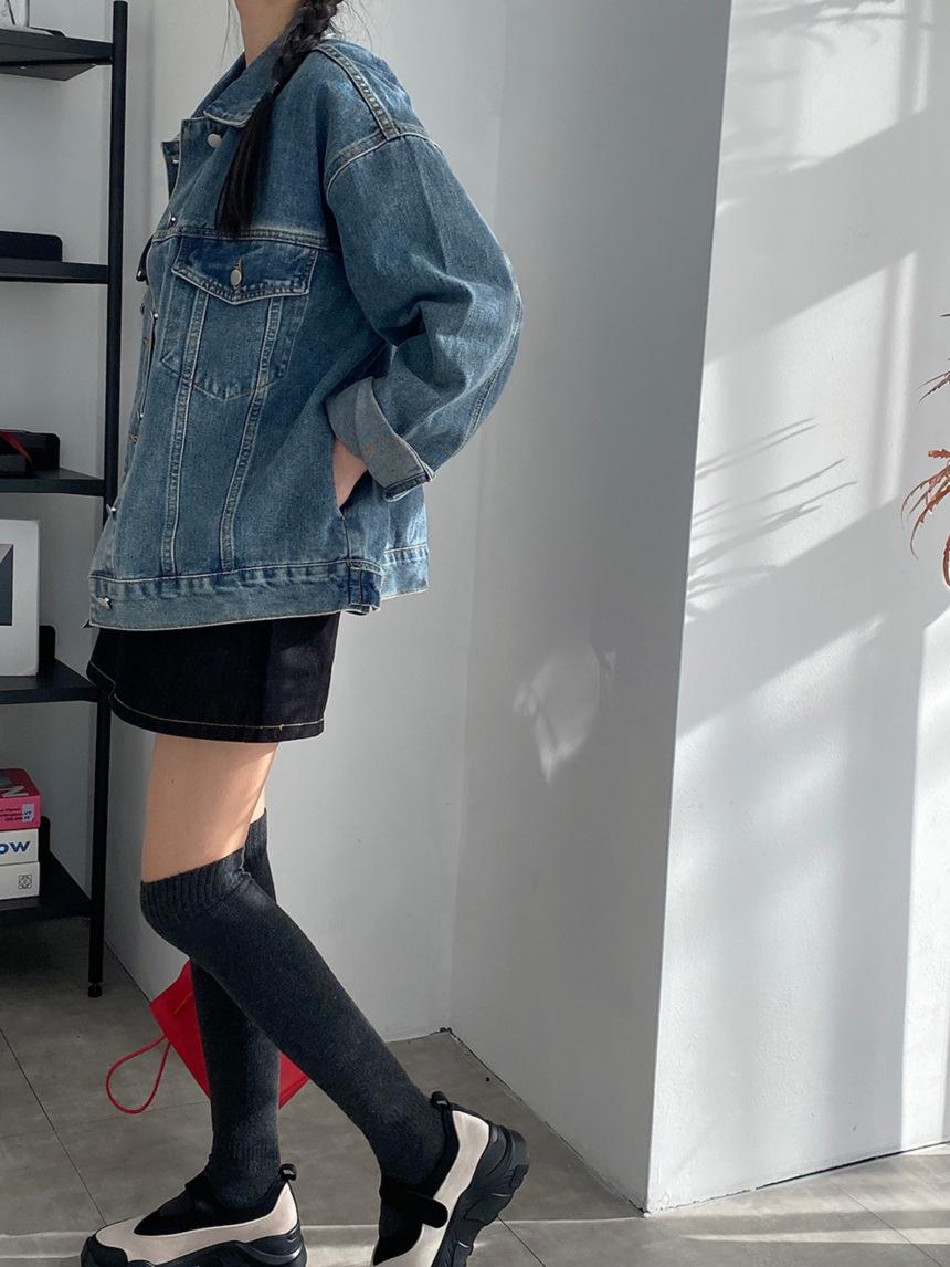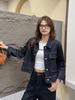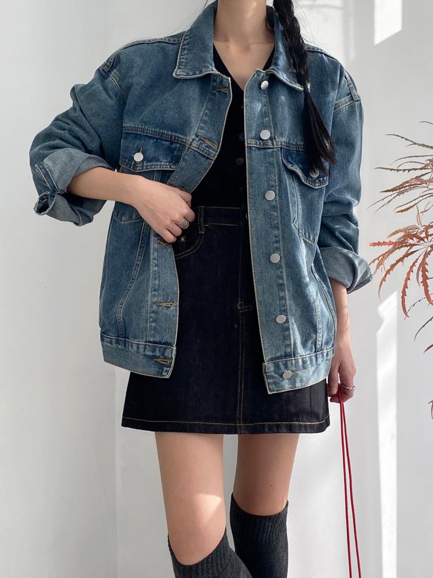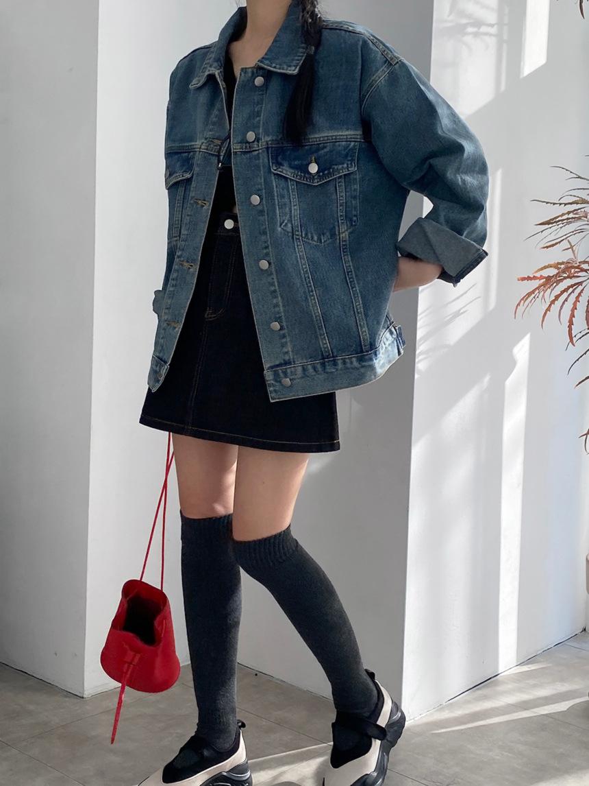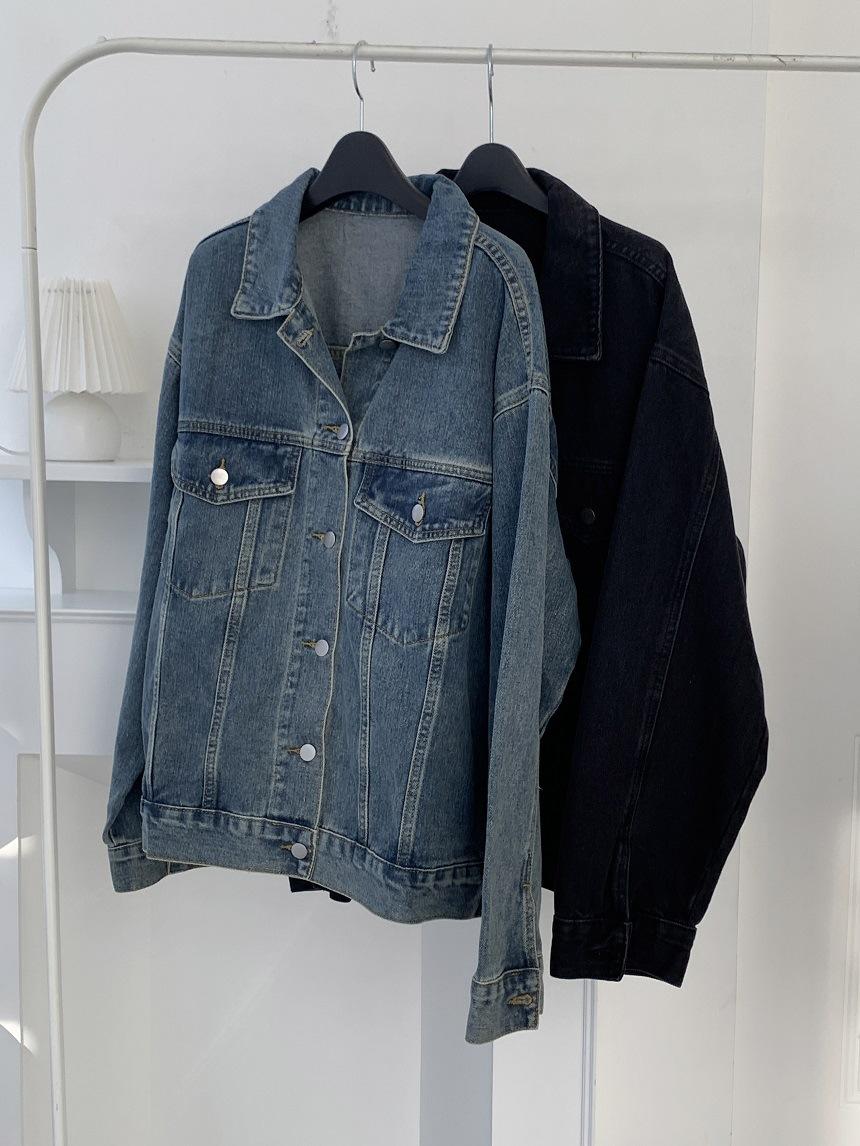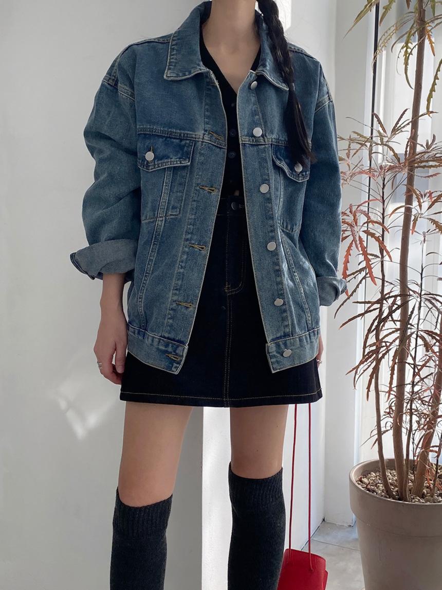 2025 Otoño Nuevo Estilo Coreano Nunca-Te-Cansas-de Chaqueta de Mezclilla~Chaqueta Estilo Boyfriend Azul Lavado Vintage Mujer