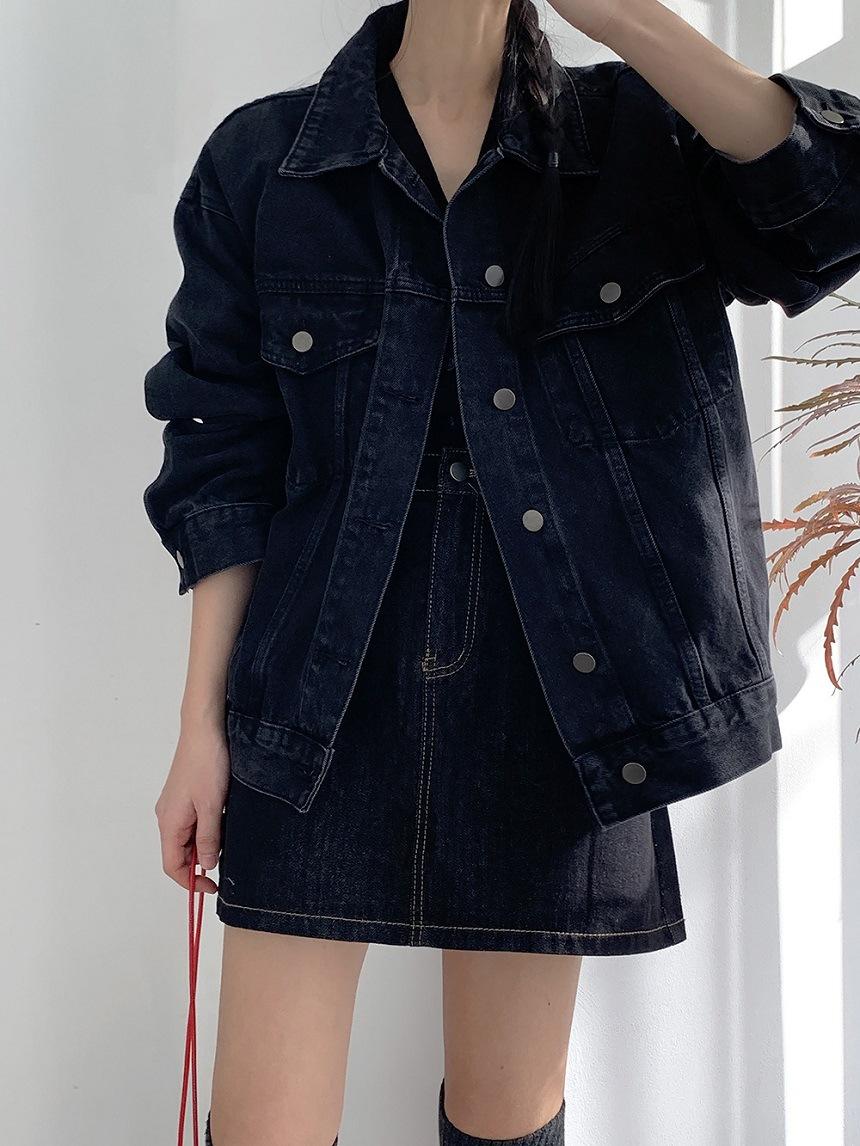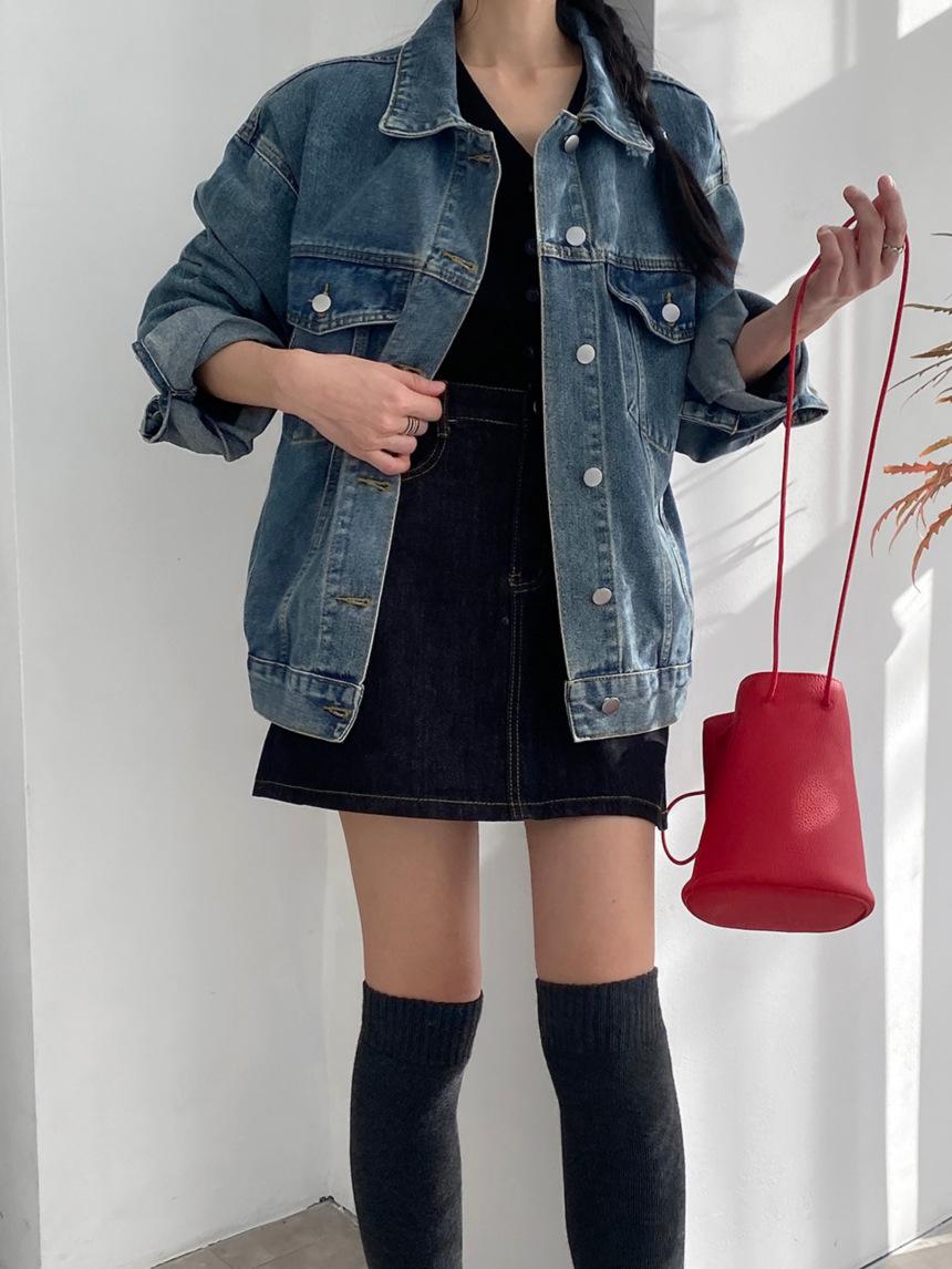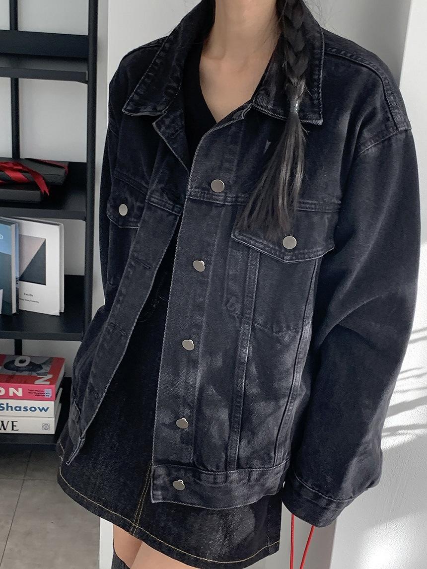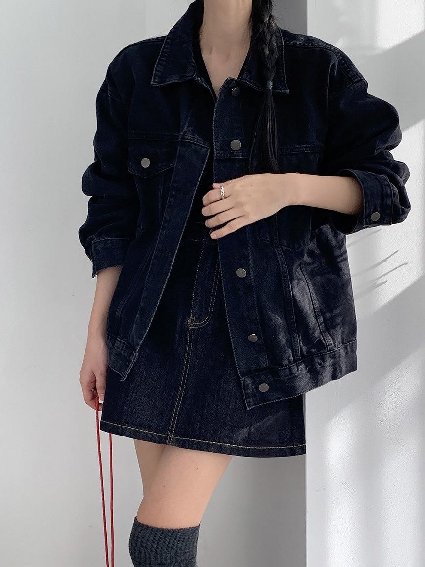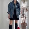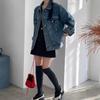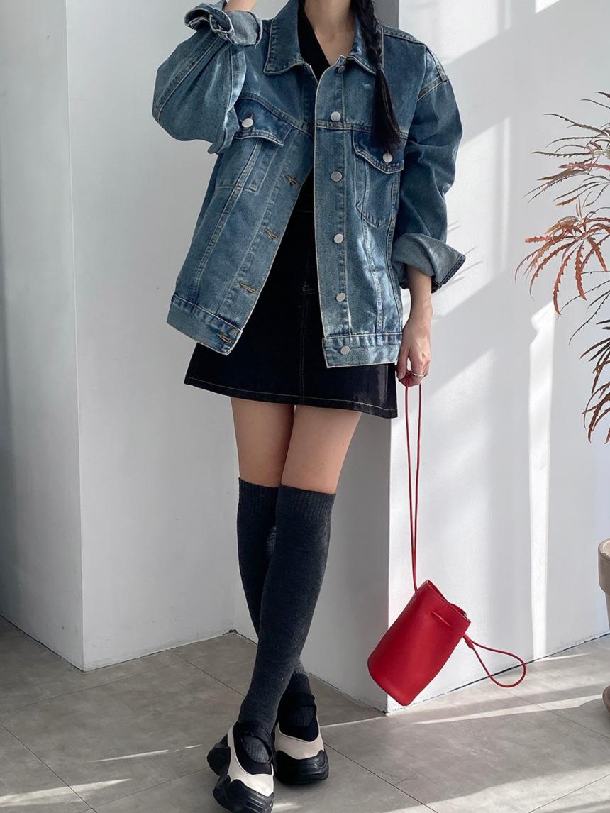 2025 Otoño Nuevo Estilo Coreano Nunca-Te-Cansas-de Chaqueta de Mezclilla~Chaqueta Estilo Boyfriend Azul Lavado Vintage Mujer