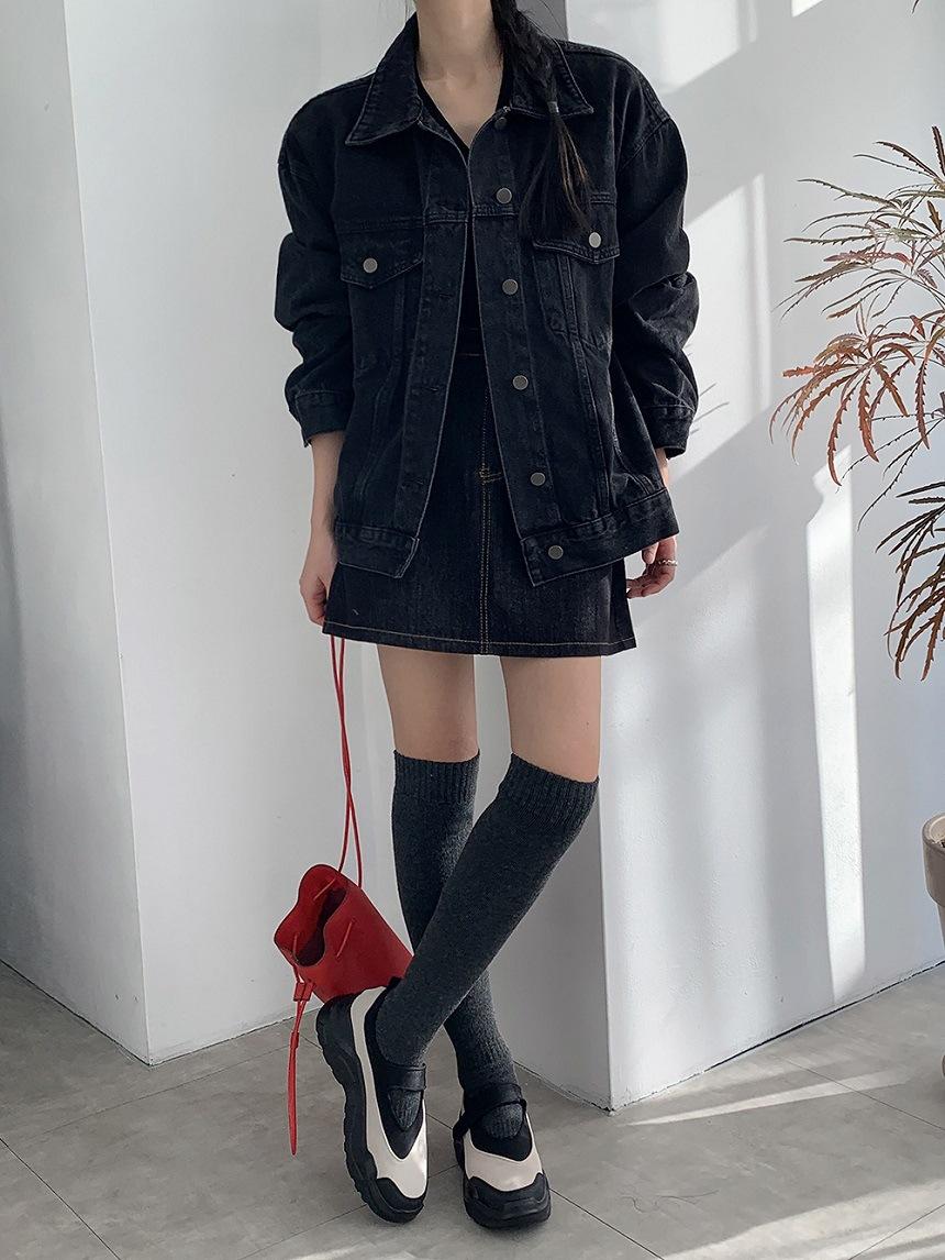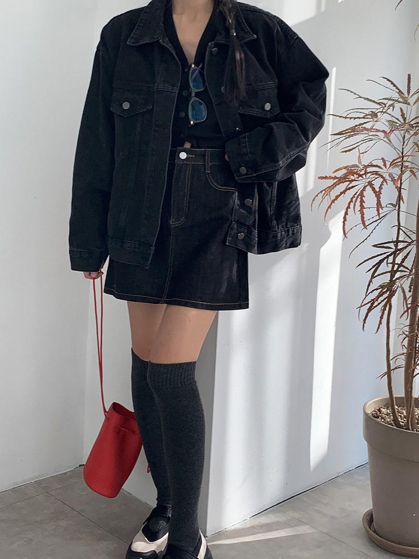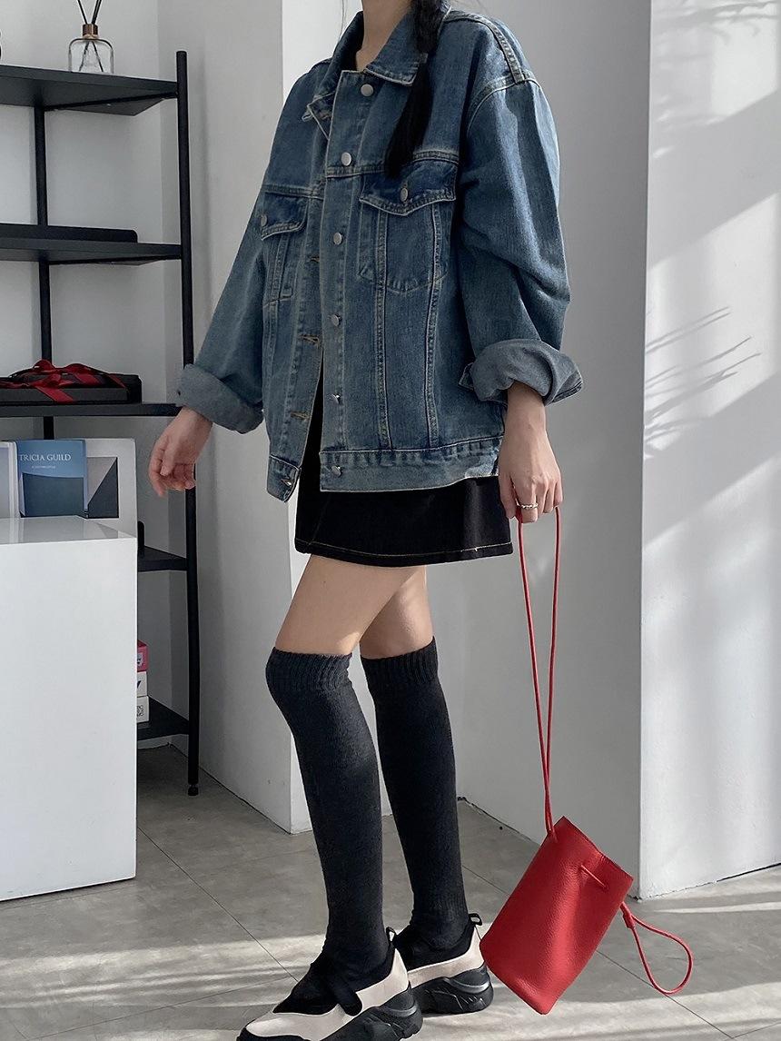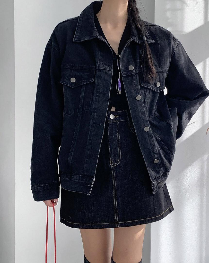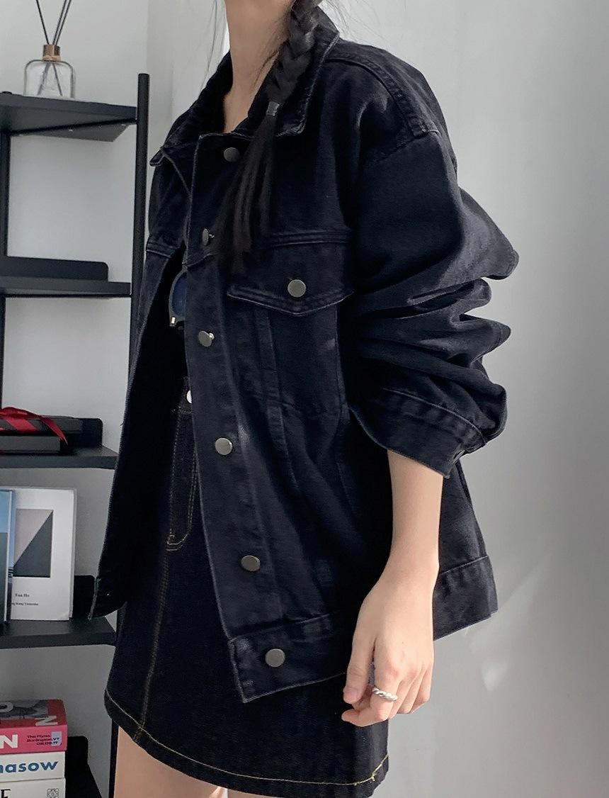 2025 Otoño Nuevo Estilo Coreano Nunca-Te-Cansas-de Chaqueta de Mezclilla~Chaqueta Estilo Boyfriend Azul Lavado Vintage Mujer