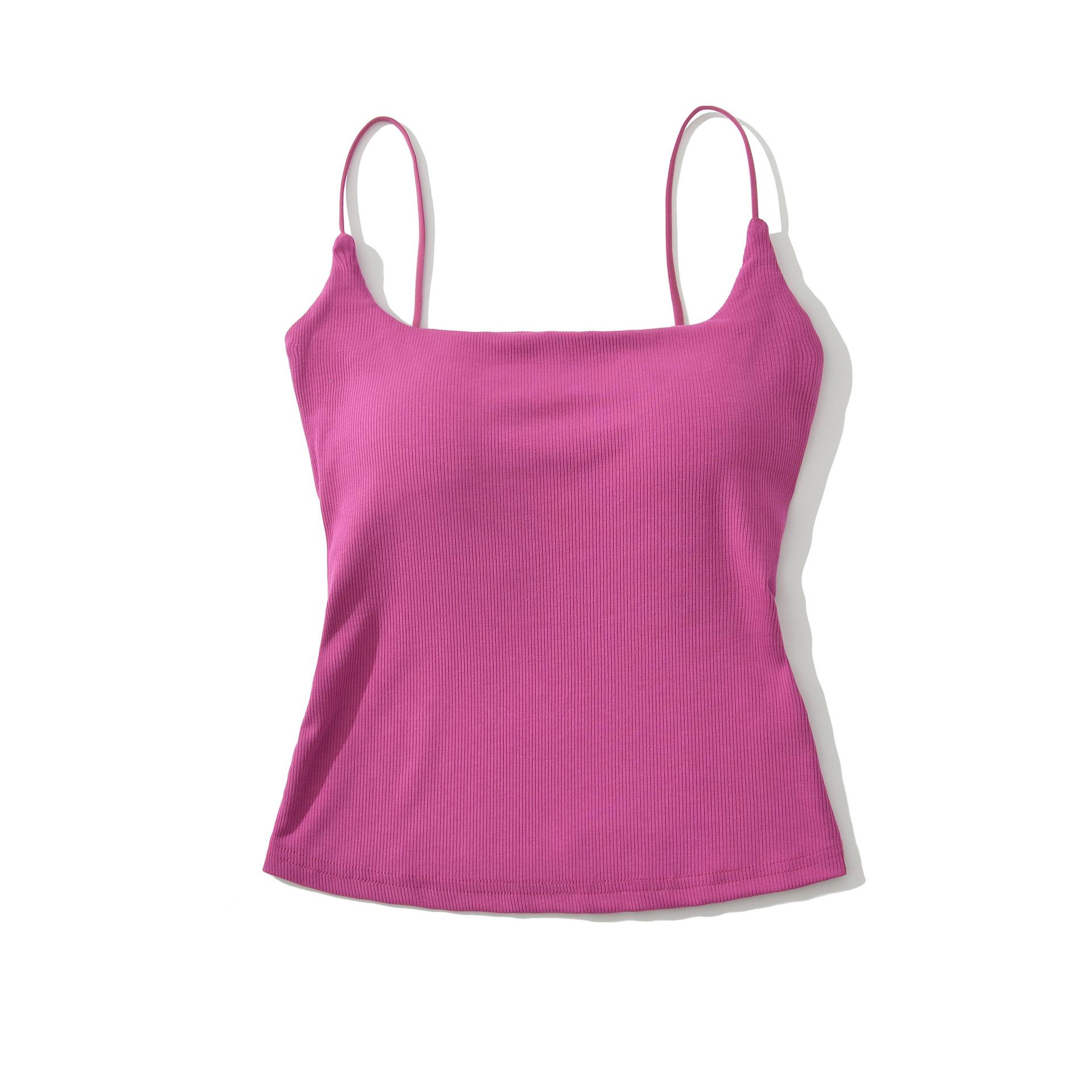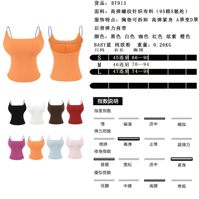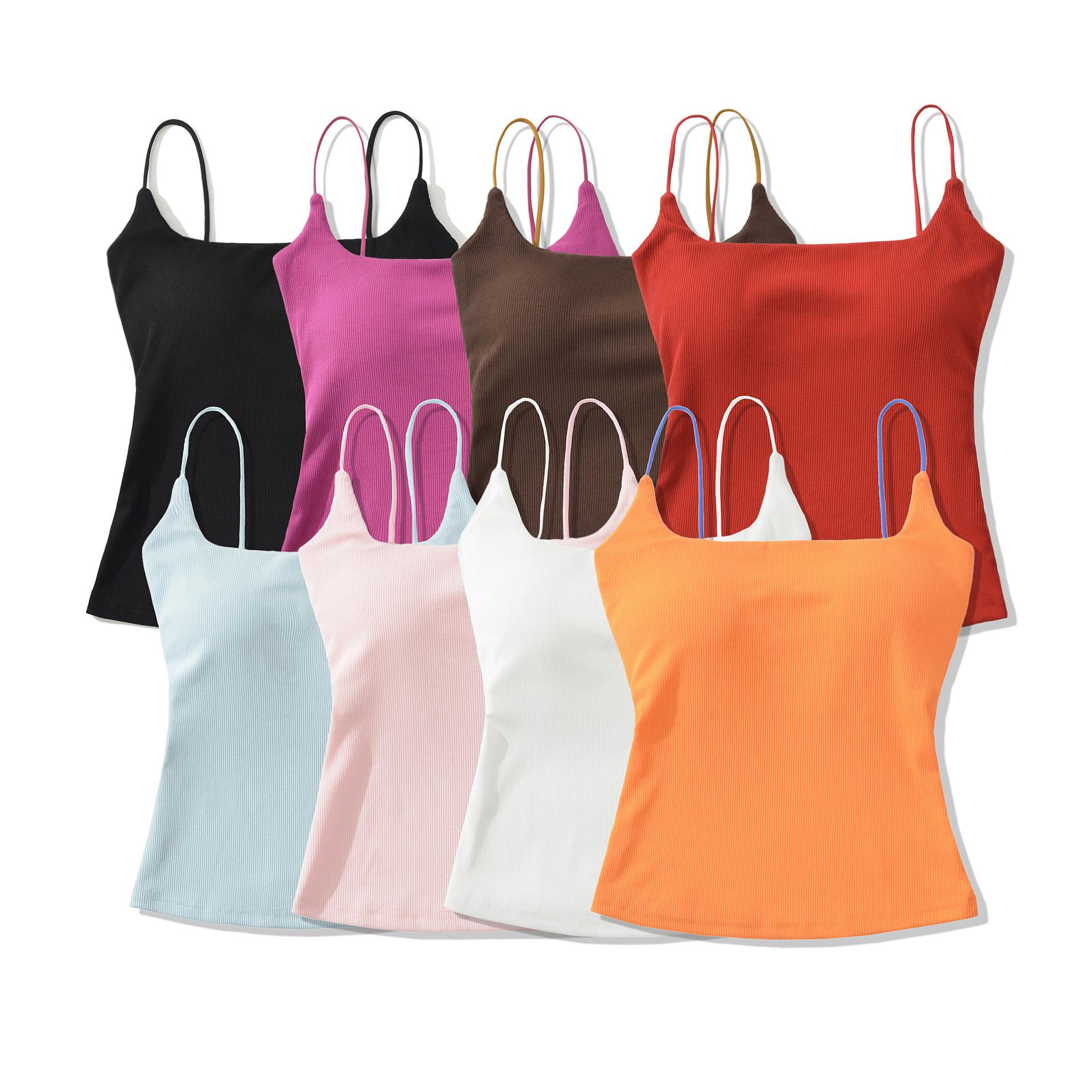 Venta al por mayor de ropa de mujer transfronteriza 2025 Verano Nuevo Estilo Europeo y Americano Color Sólido Top de Tirantes Espagueti Ajustado Camiseta sin Mangas con Almohadillas en el Pecho