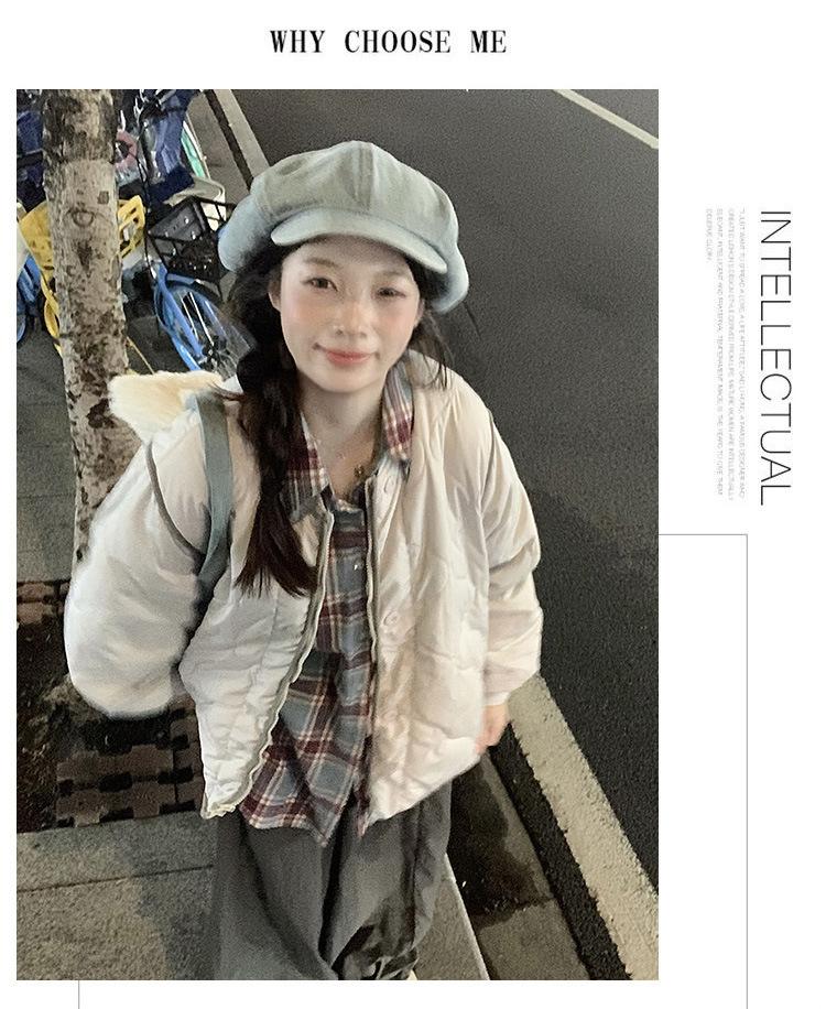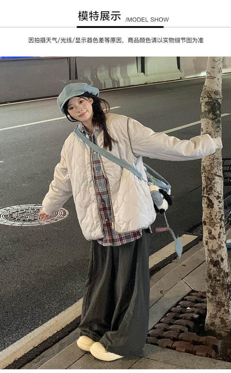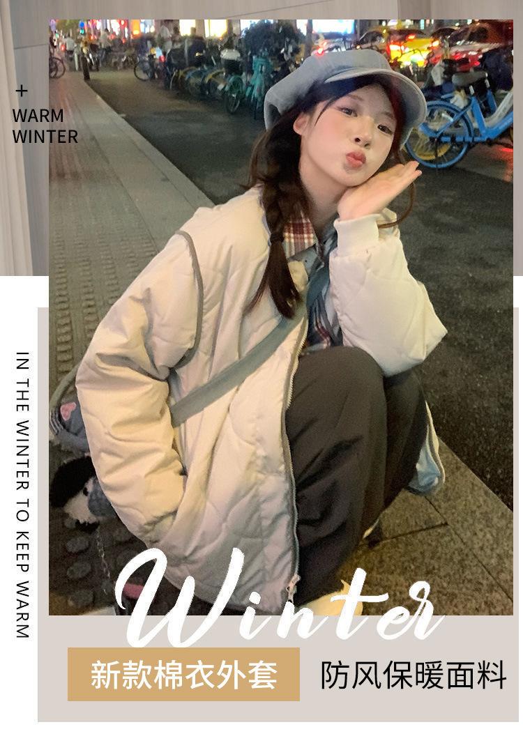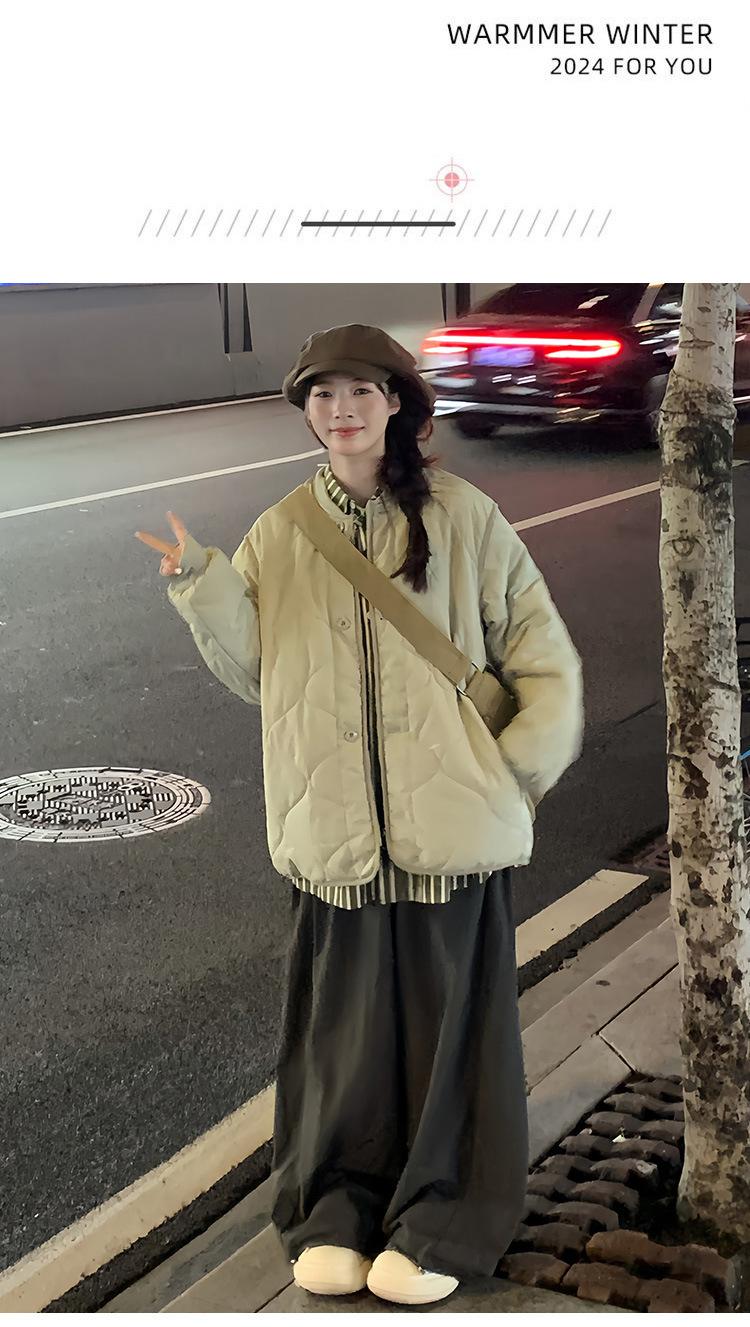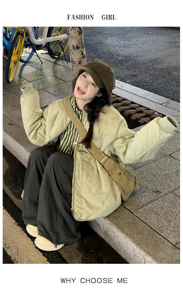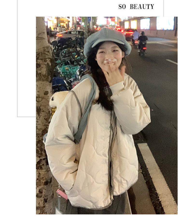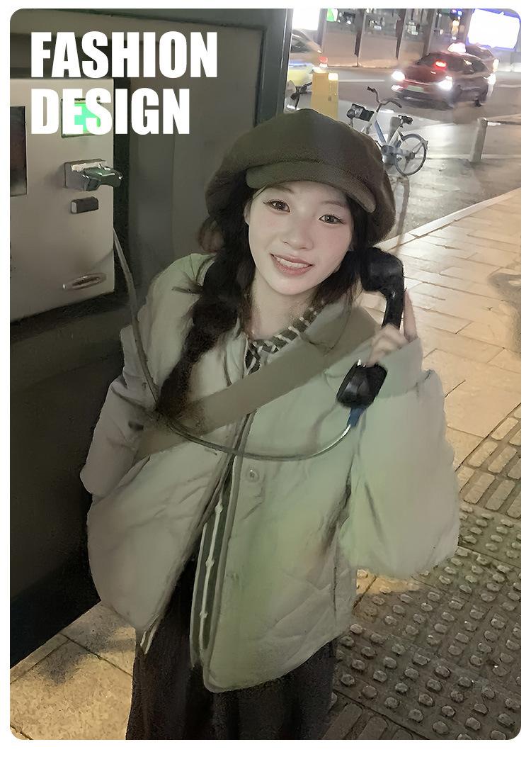 Chaqueta de algodón estilo argyle holgada para mujer otoño e invierno 2024, sentido del diseño petite, acolchada de algodón, holgada, adelgazante, abrigo de algodón para mujer