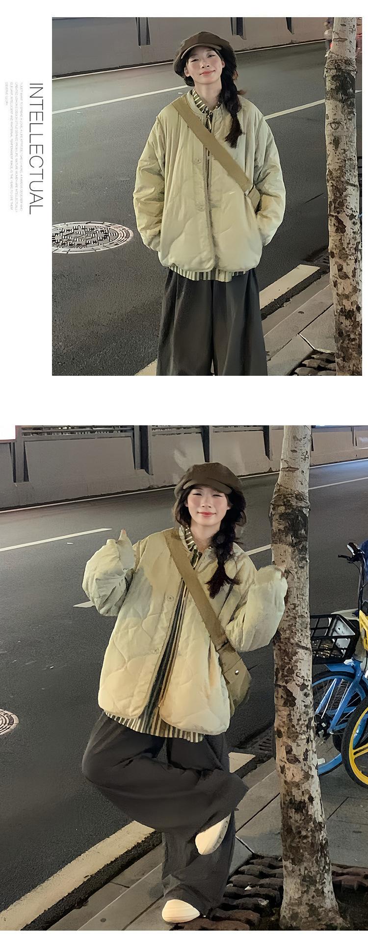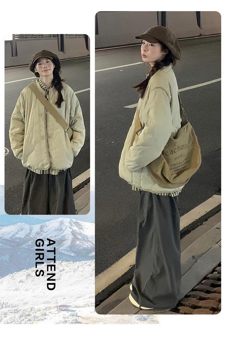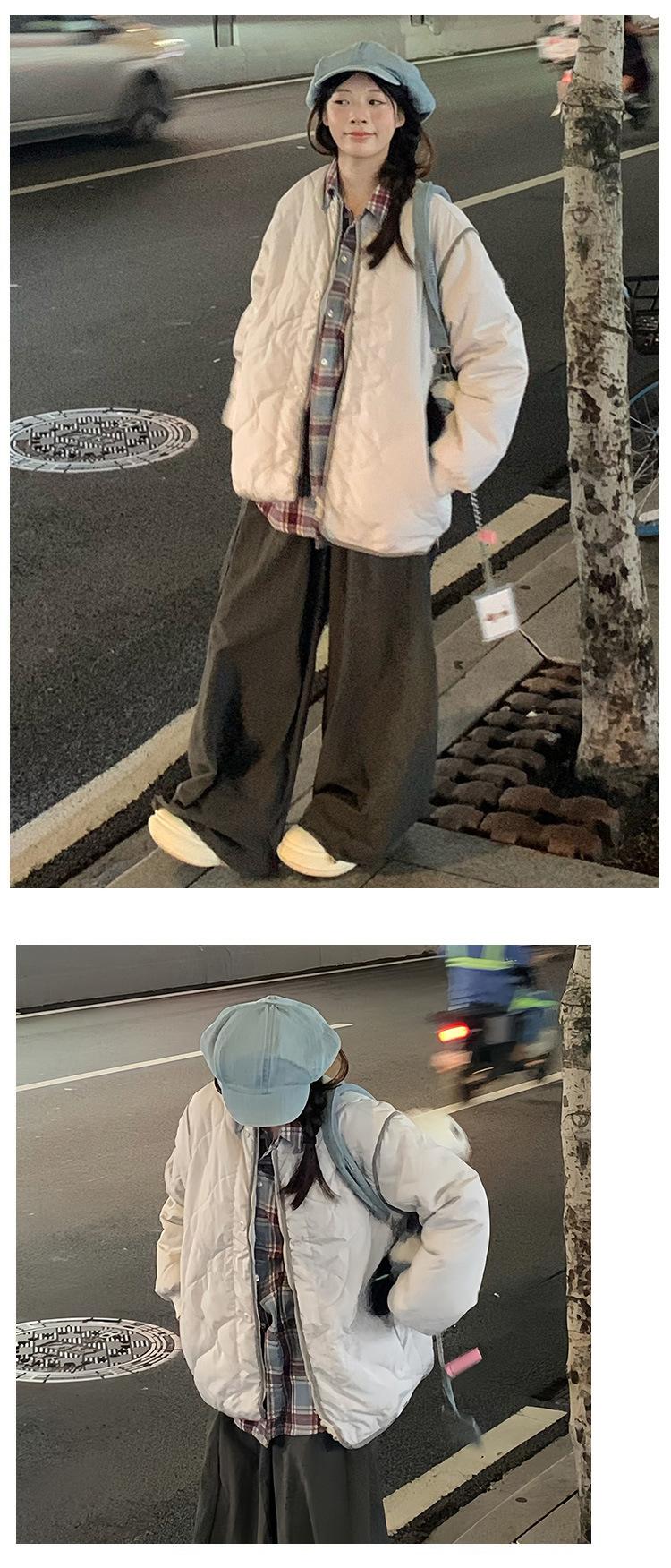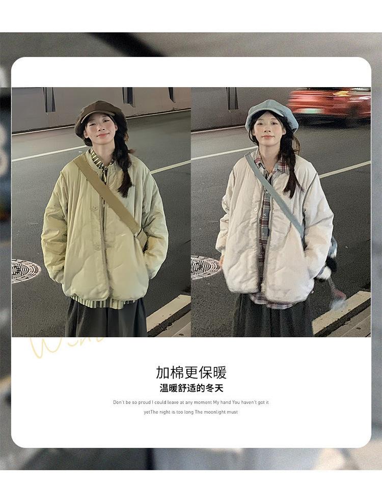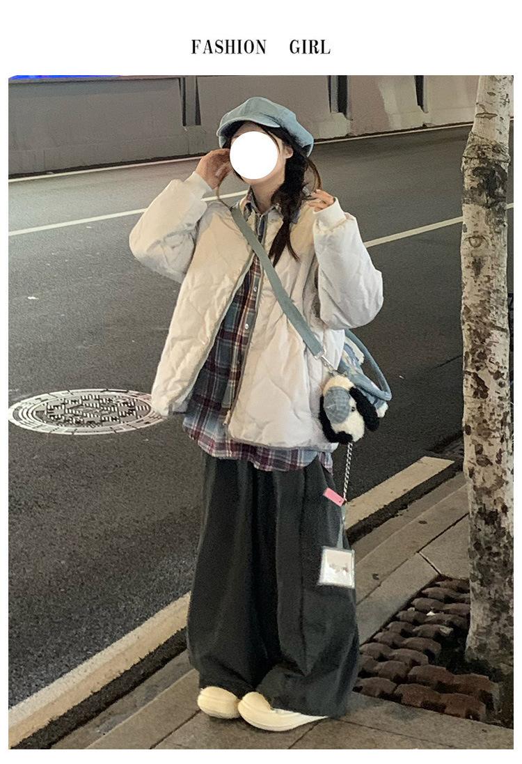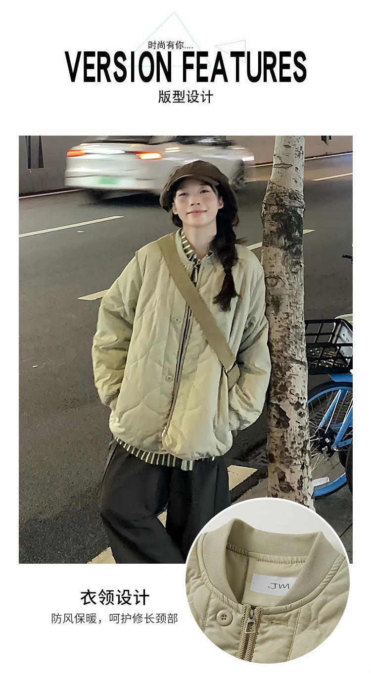 Chaqueta de algodón estilo argyle holgada para mujer otoño e invierno 2024, sentido del diseño petite, acolchada de algodón, holgada, adelgazante, abrigo de algodón para mujer