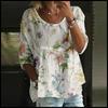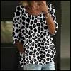 2025 Nueva Ropa de Mujer Europea y Americana de Comercio Exterior Transfronterizo Amazon AliExpress Estación Independiente Top de Manga con Cuello Redondo Estampado