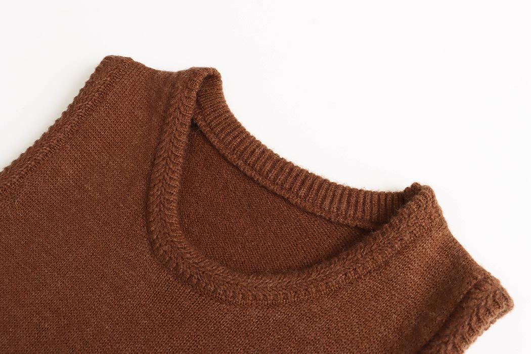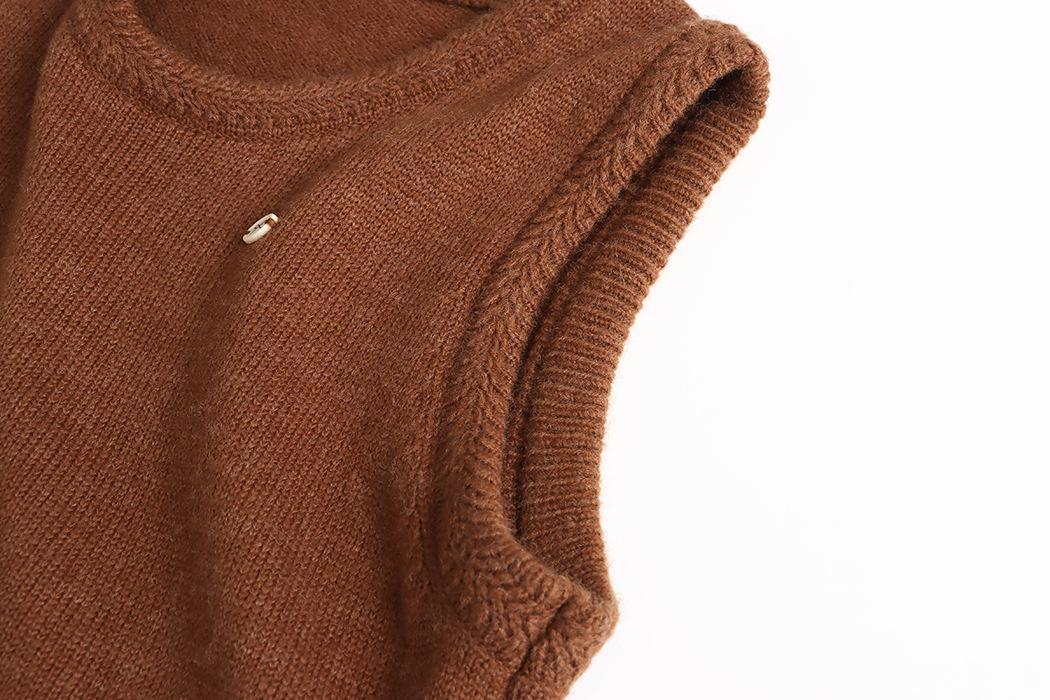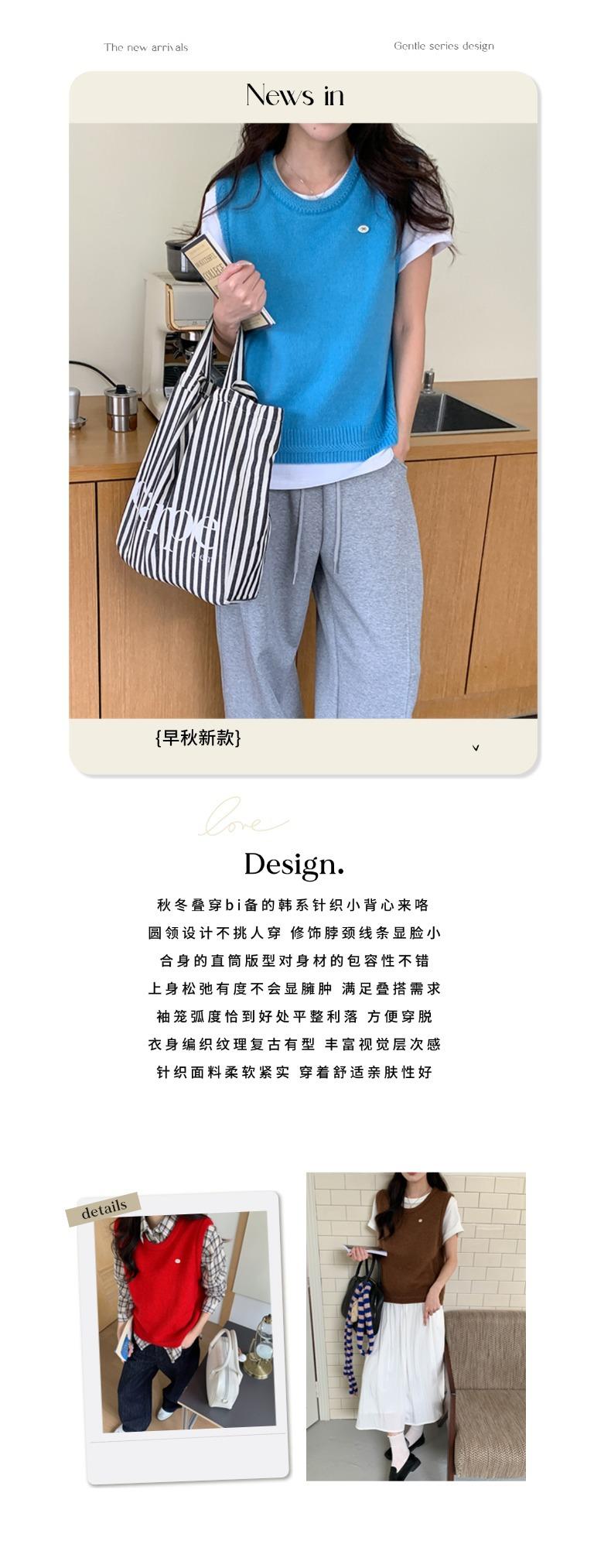 3er Mañana Principios de Otoño Nuevo Estilo Coreano Metal Pequeña Etiqueta Cuello Redondo Chaleco de Punto ZY3270