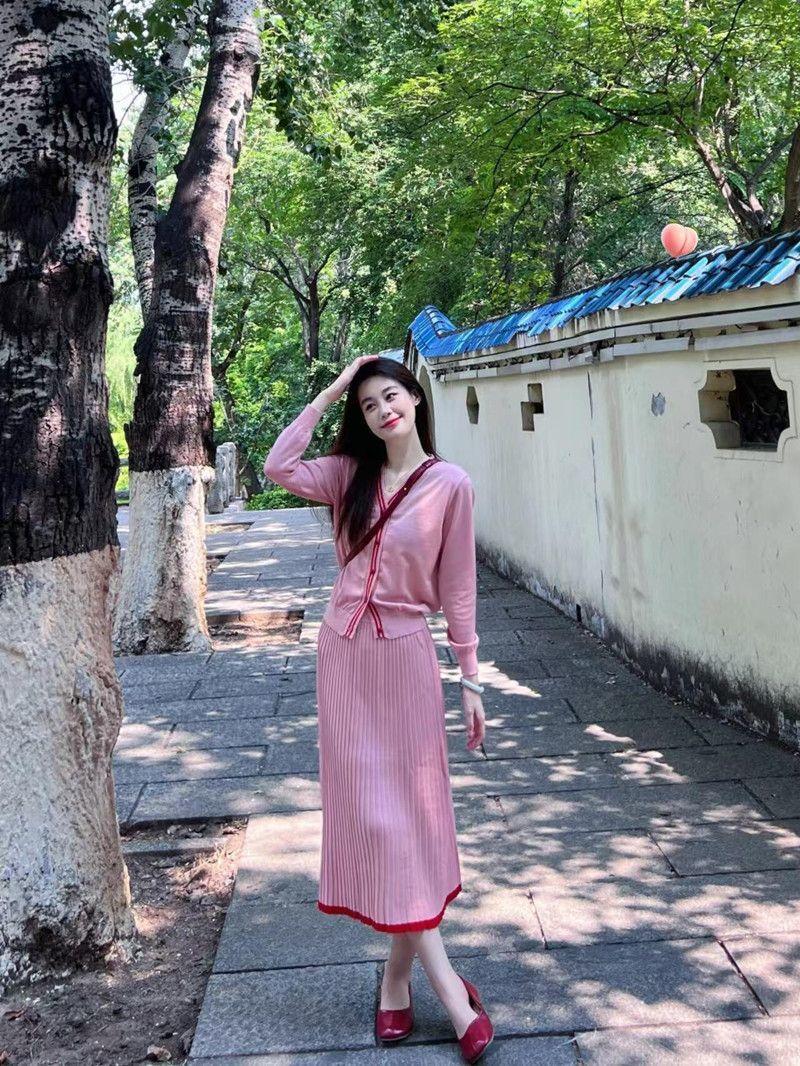 Skirt one piece, Knitted cardigan one piece, Midi Skirt + Knit Cardigan Two-Piece Set