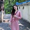 Conjunto dulce y suave de estilo coreano para mujer Otoño e Invierno Nuevo Cárdigan de punto de manga larga Adelgazante Falda midi de cintura alta Conjunto de dos piezas