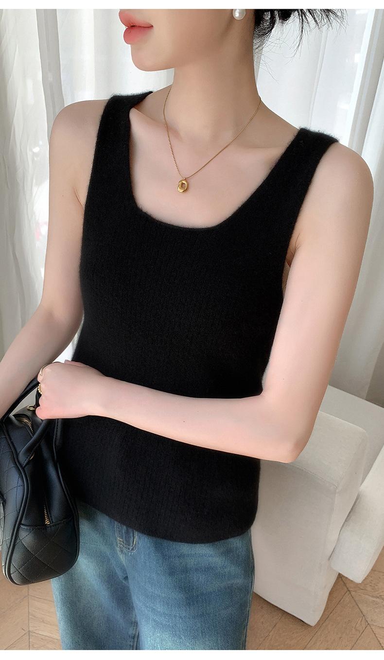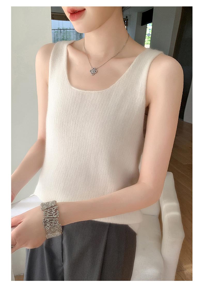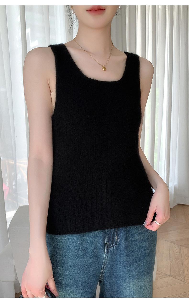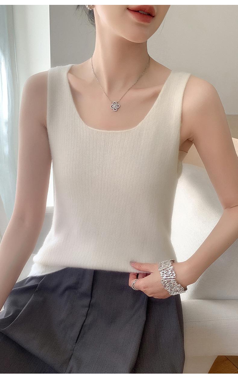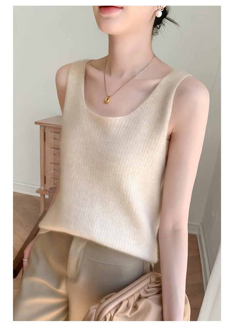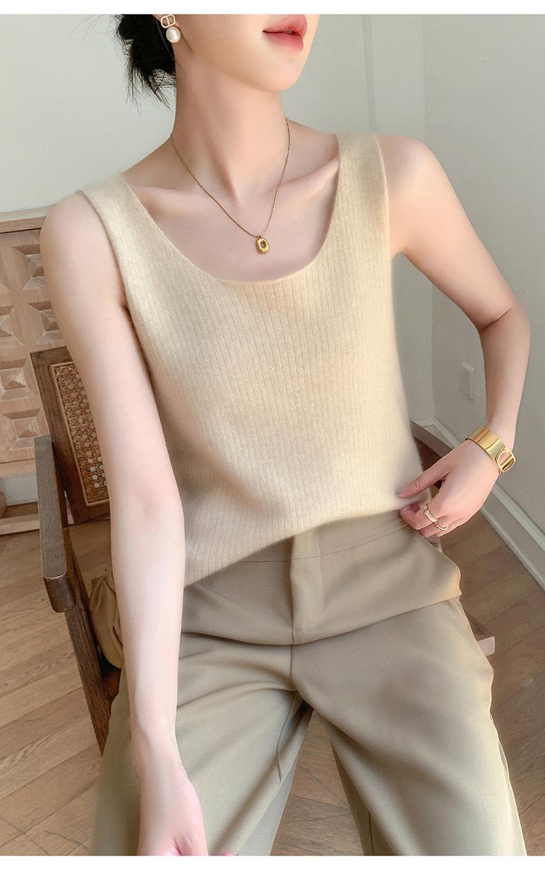 Cuello U Otoño/Invierno Estilo Coreano Color Sólido Tejido de Cachemira Sin Mangas Top Jersey Suave y Agradable al Tacto Chaleco de Capa Interior para Mujer Sin Mangas