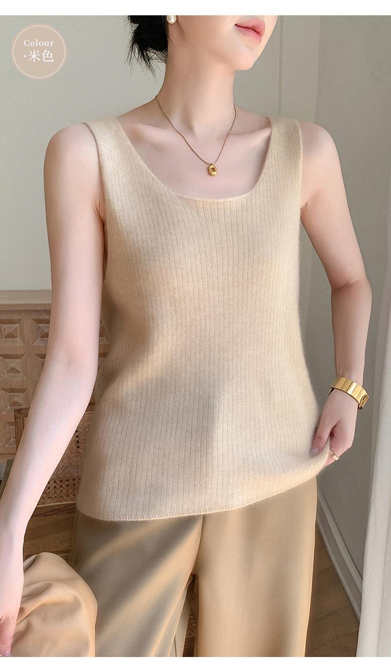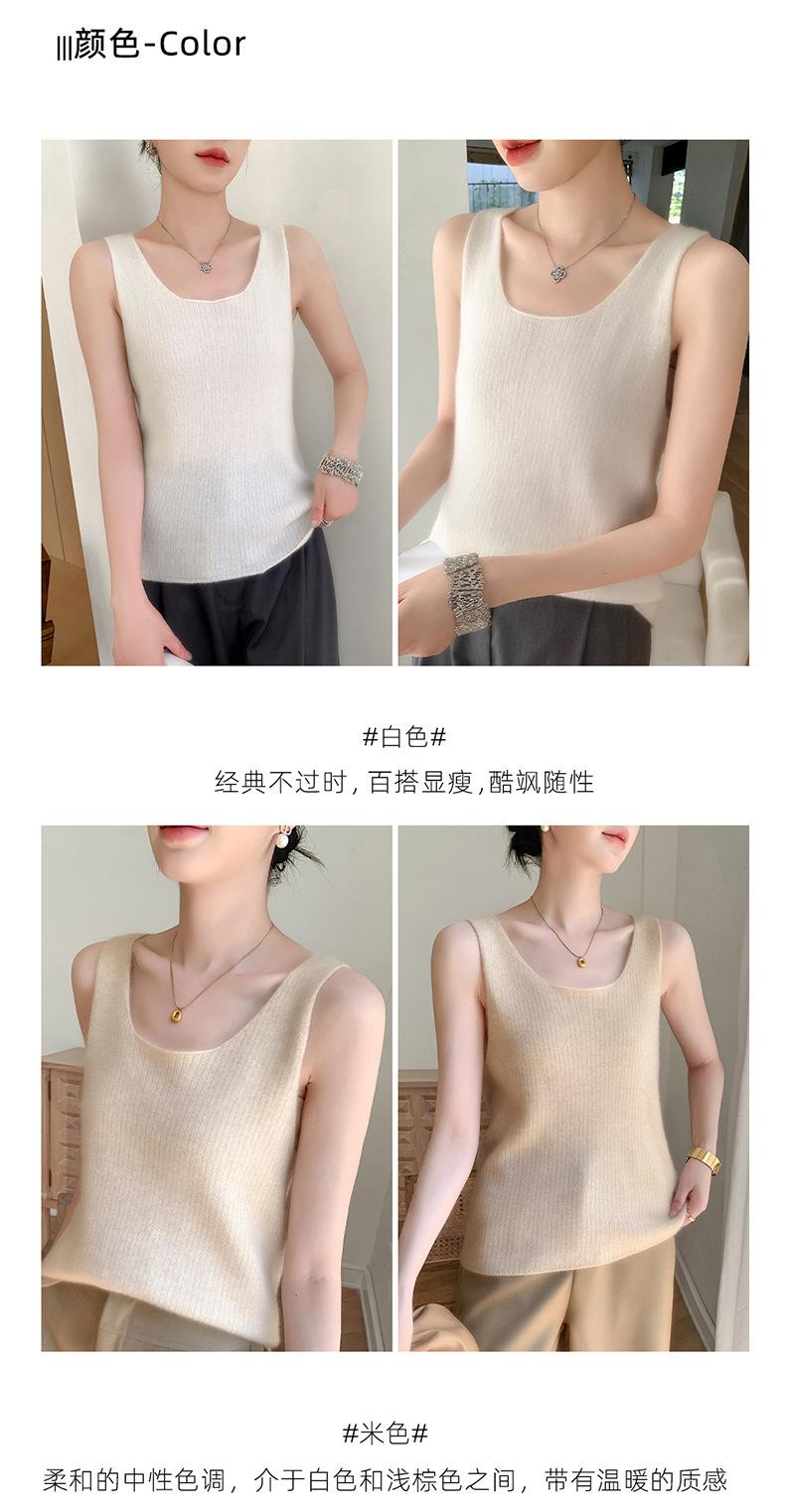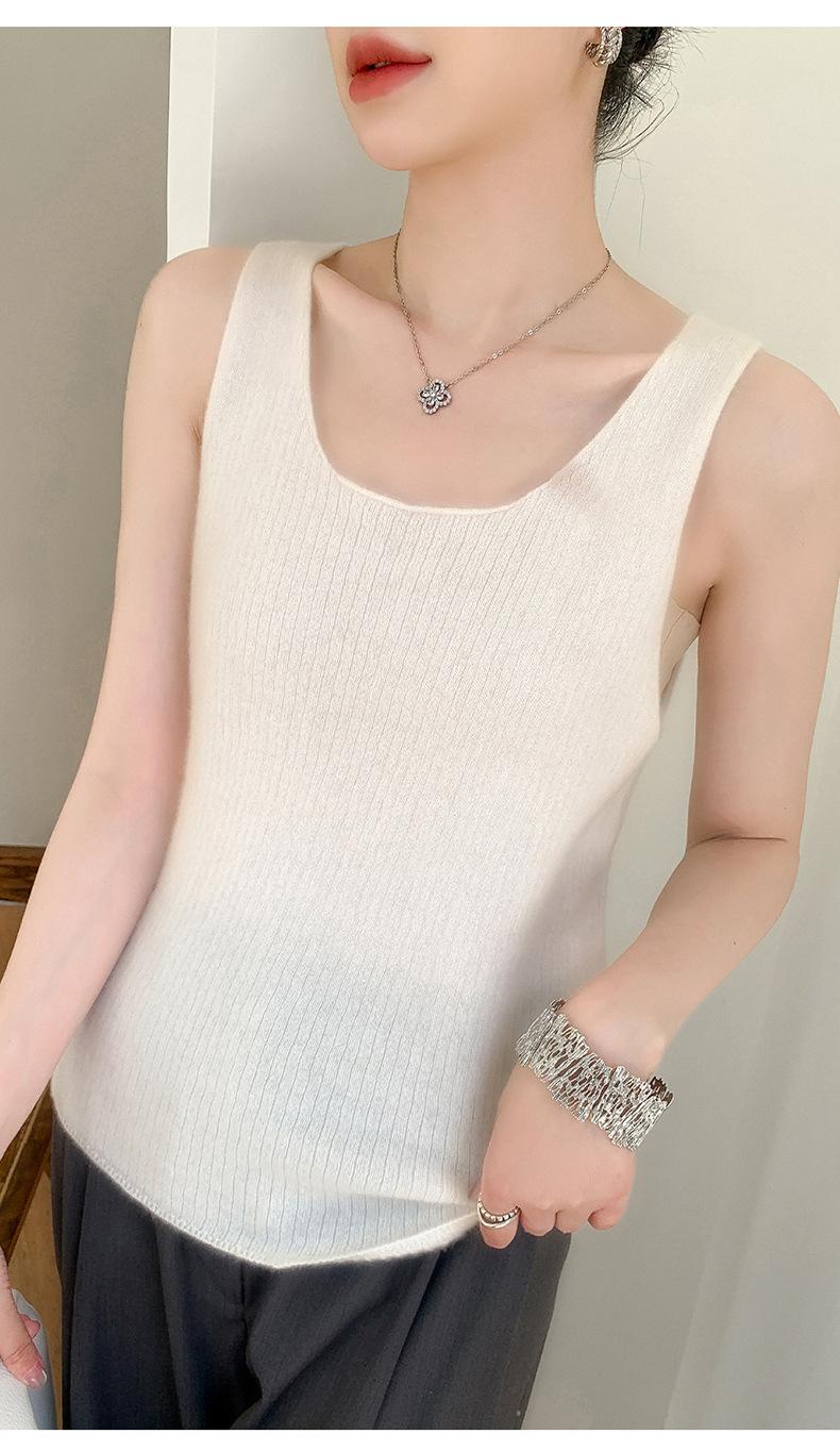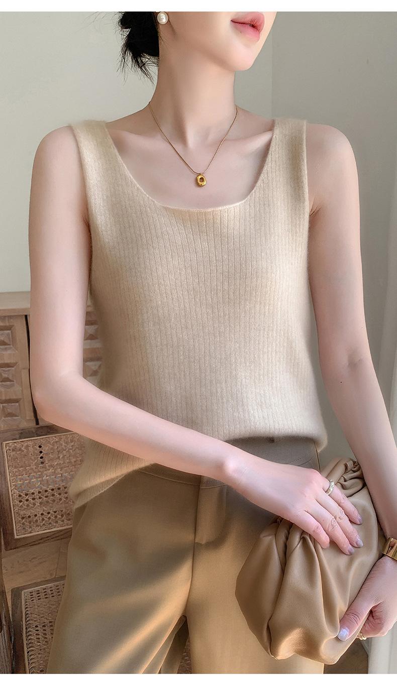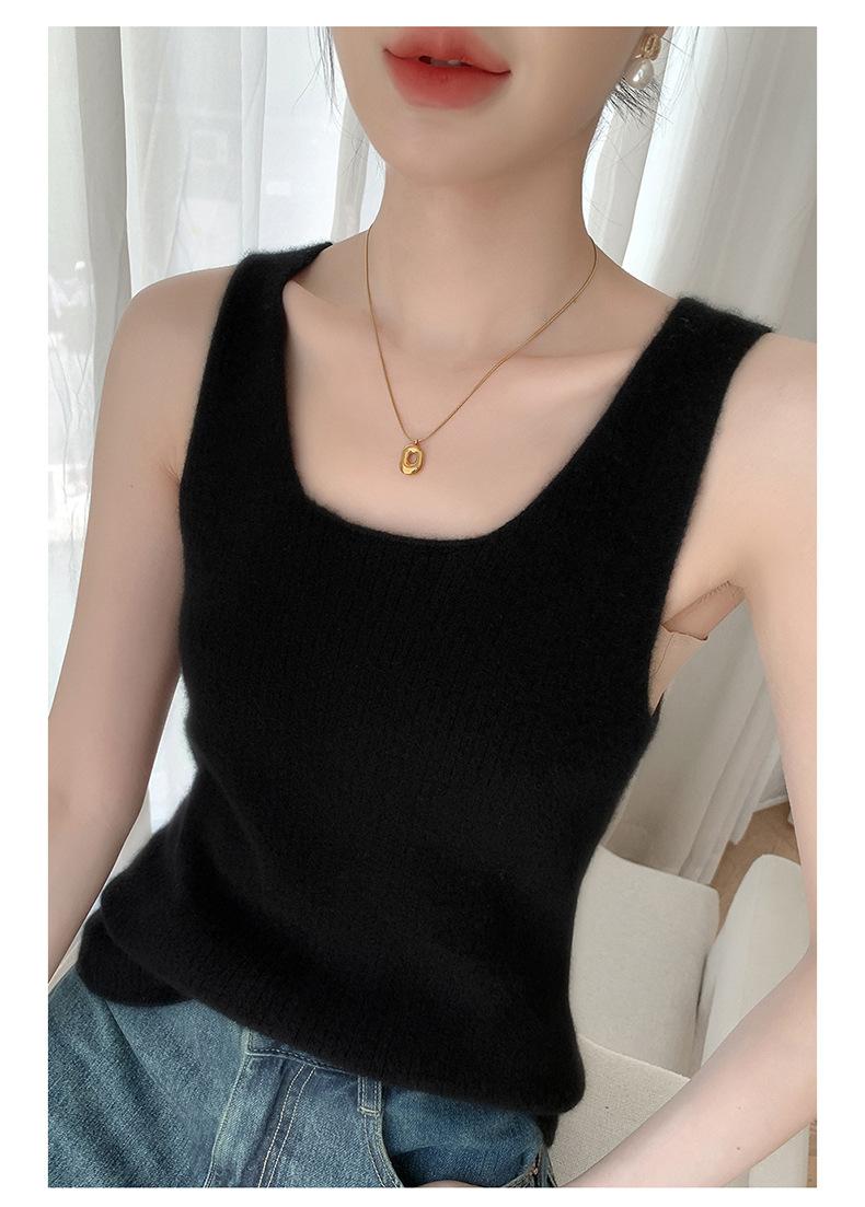 Cuello U Otoño/Invierno Estilo Coreano Color Sólido Tejido de Cachemira Sin Mangas Top Jersey Suave y Agradable al Tacto Chaleco de Capa Interior para Mujer Sin Mangas
