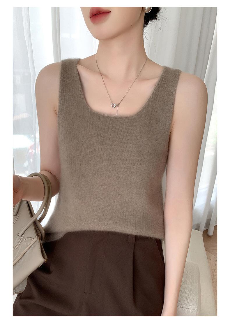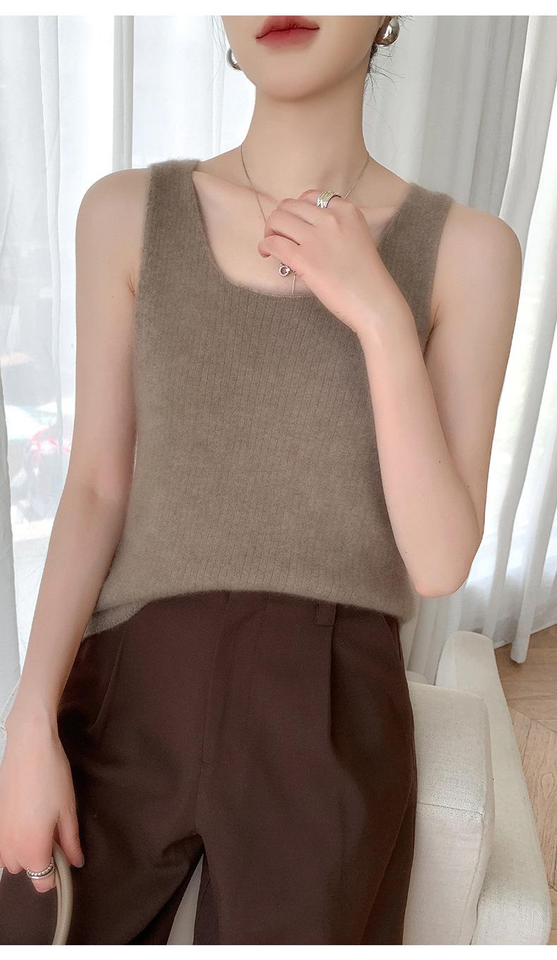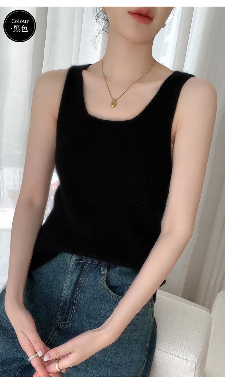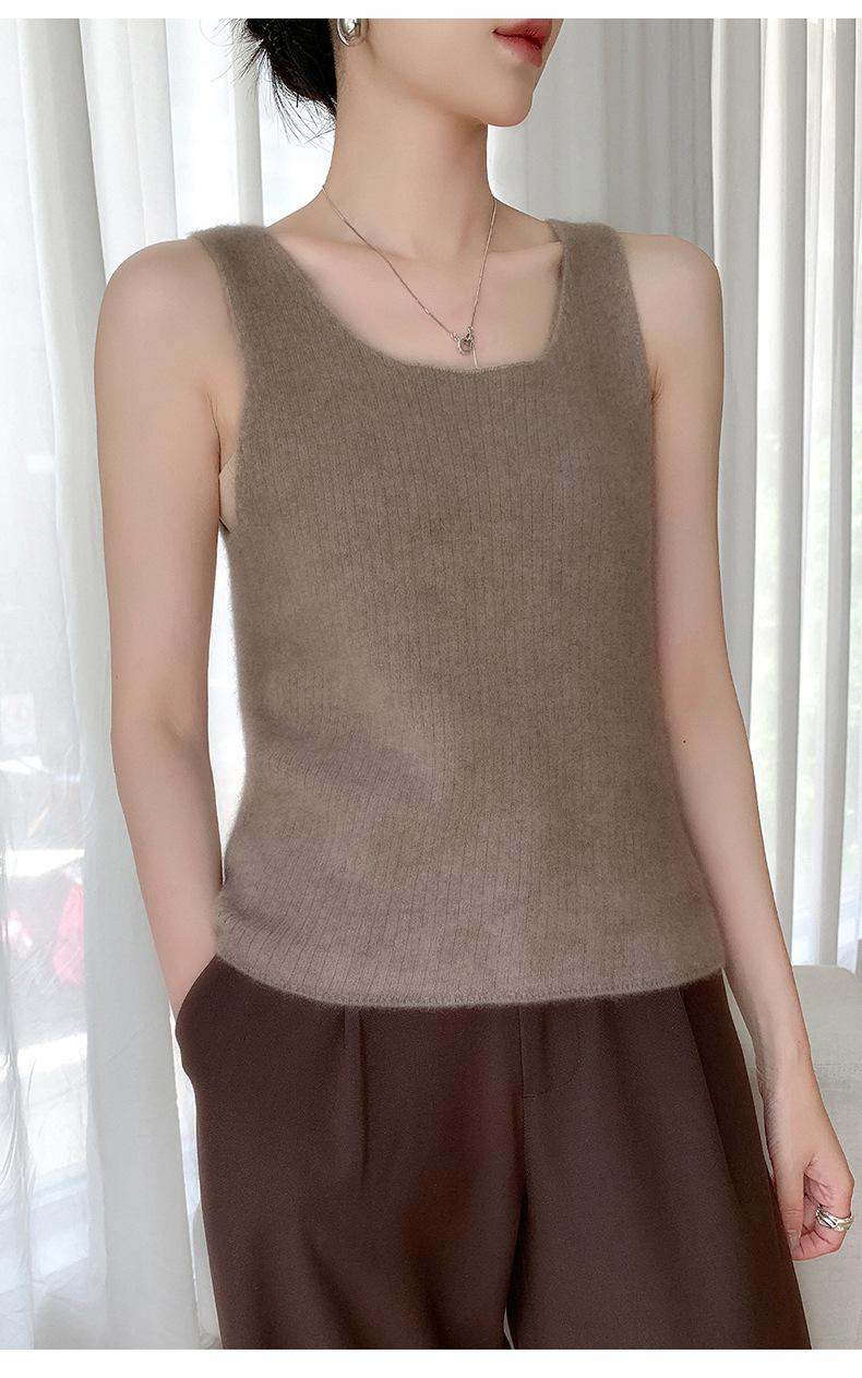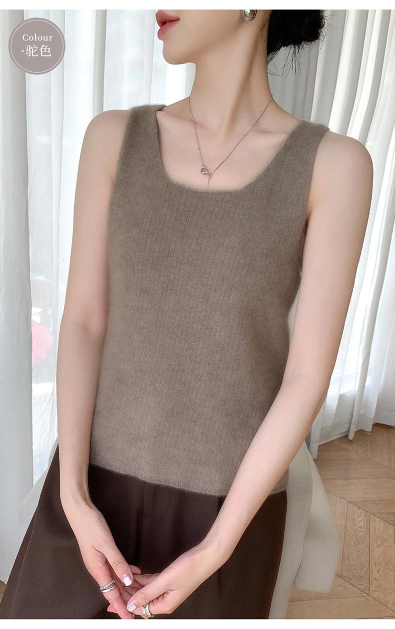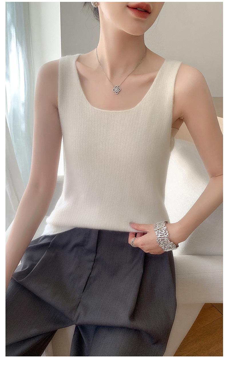Cuello U Otoño/Invierno Estilo Coreano Color Sólido Tejido de Cachemira Sin Mangas Top Jersey Suave y Agradable al Tacto Chaleco de Capa Interior para Mujer Sin Mangas