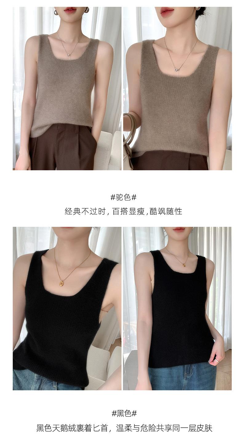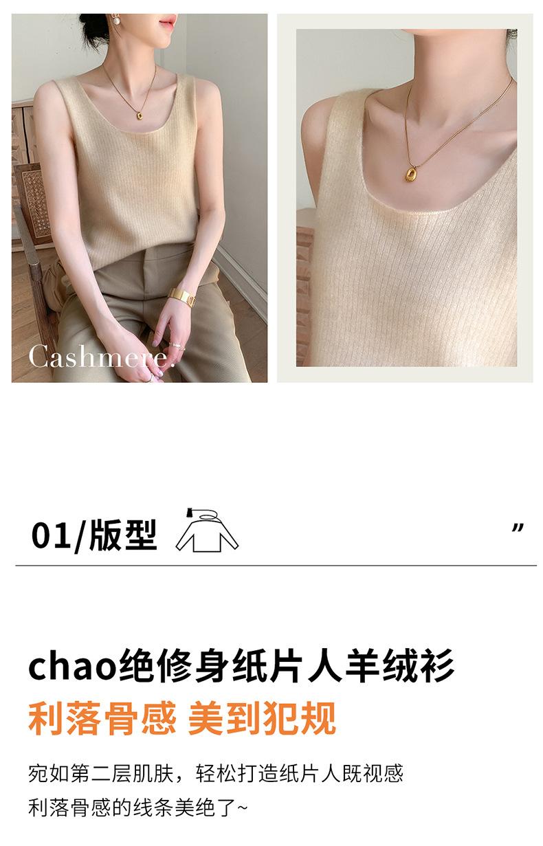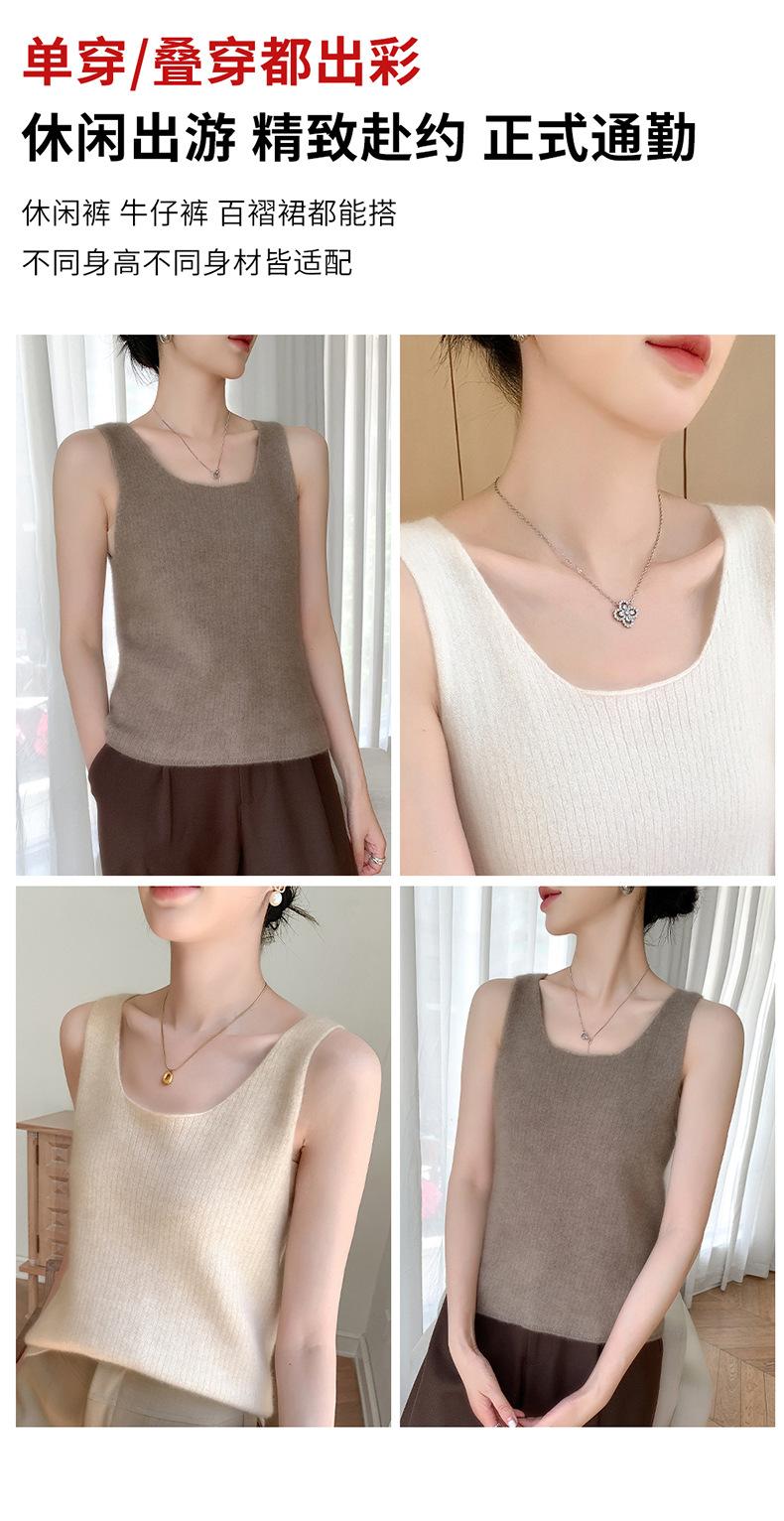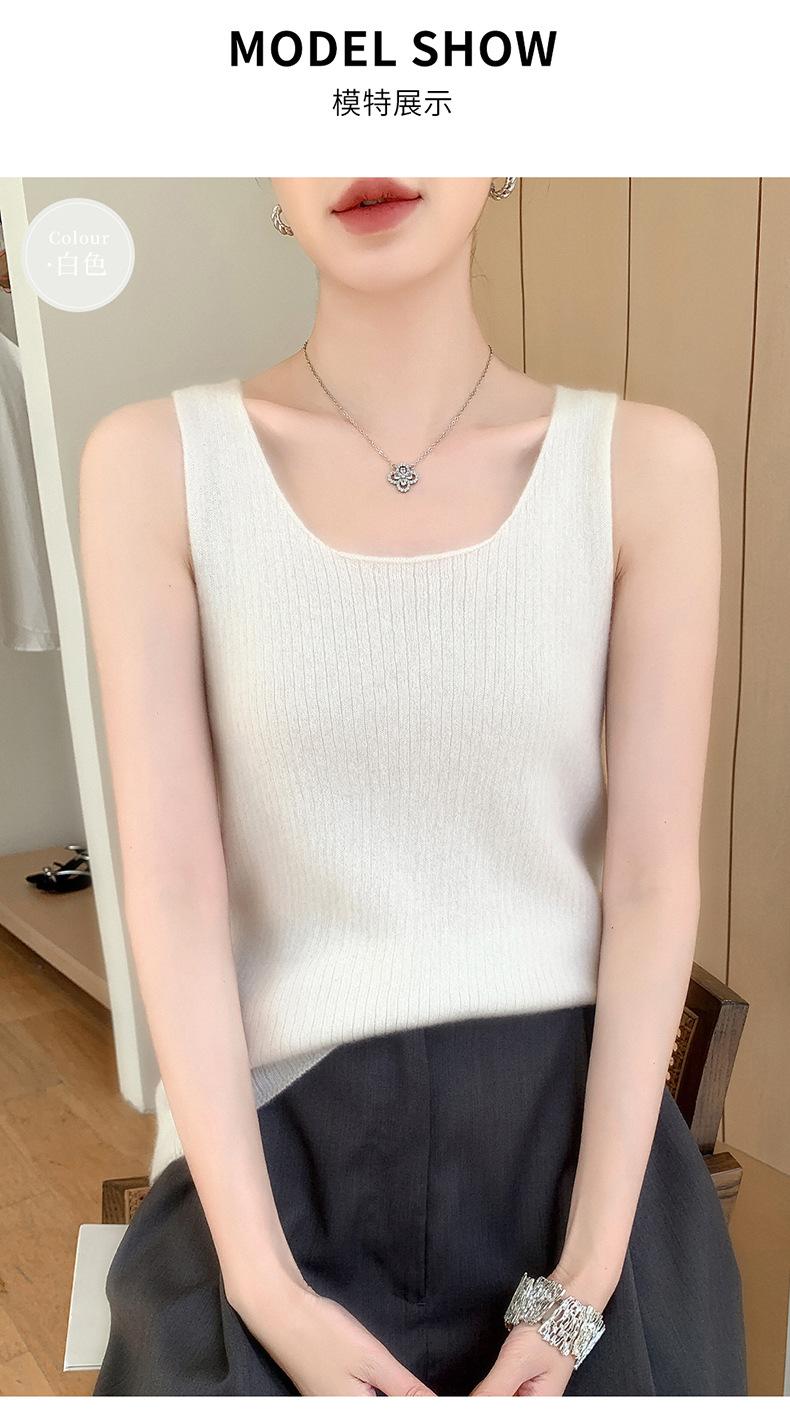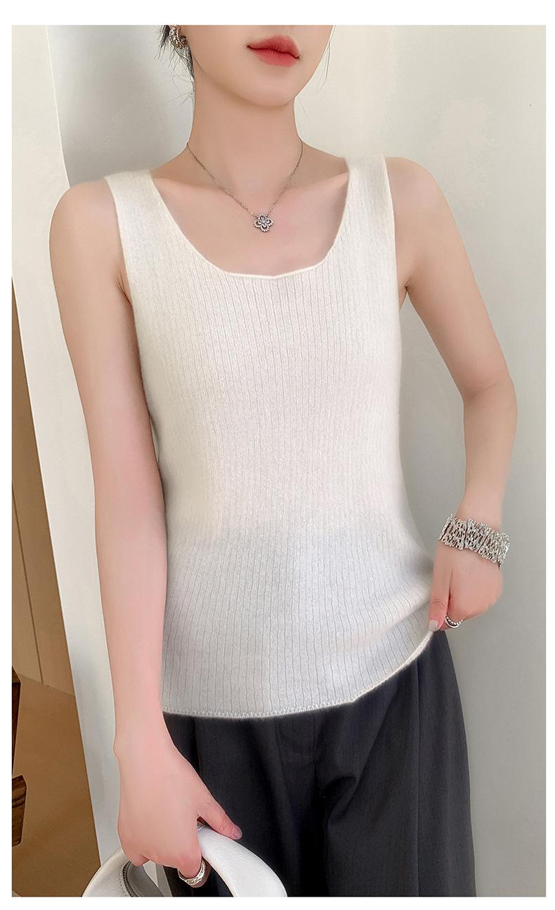 Cuello U Otoño/Invierno Estilo Coreano Color Sólido Tejido de Cachemira Sin Mangas Top Jersey Suave y Agradable al Tacto Chaleco de Capa Interior para Mujer Sin Mangas