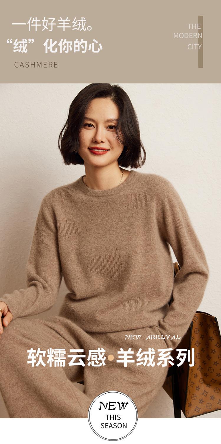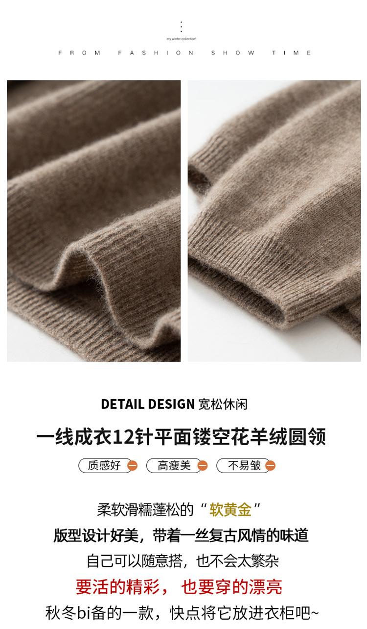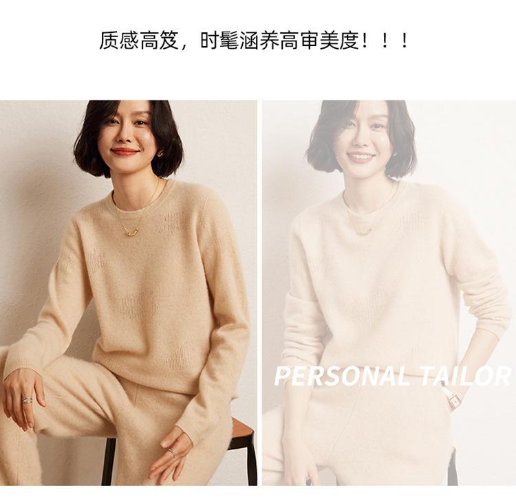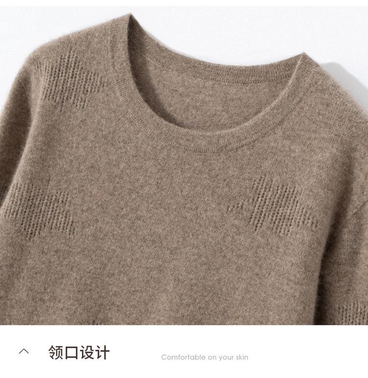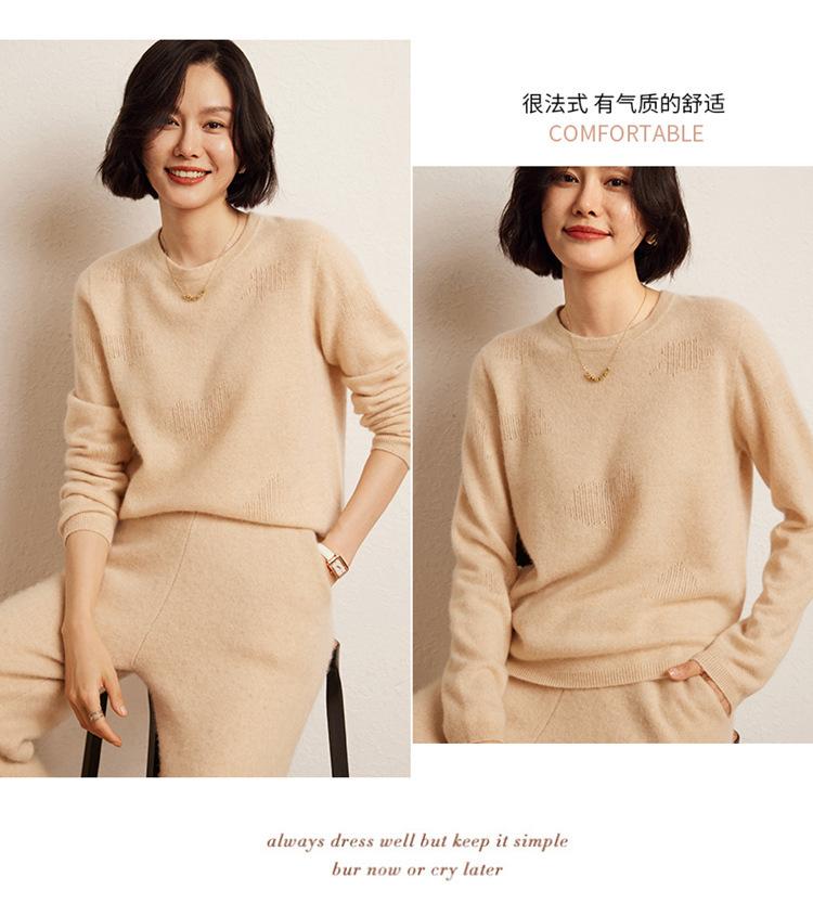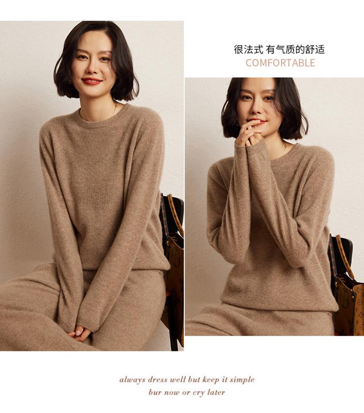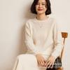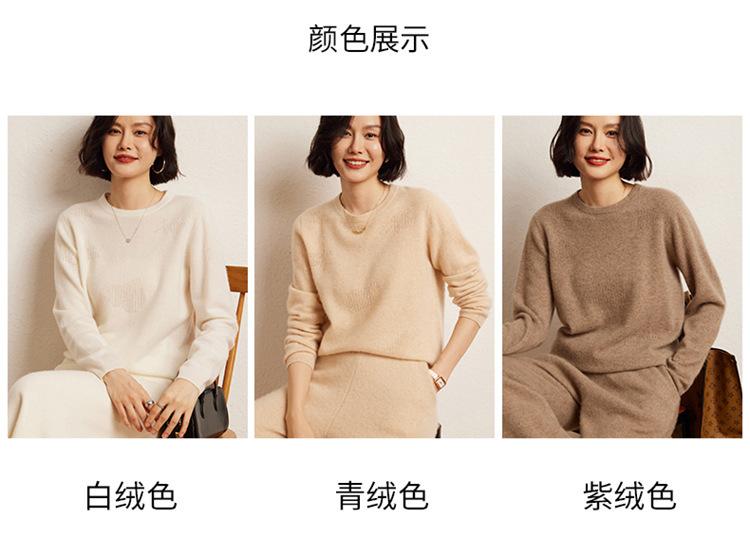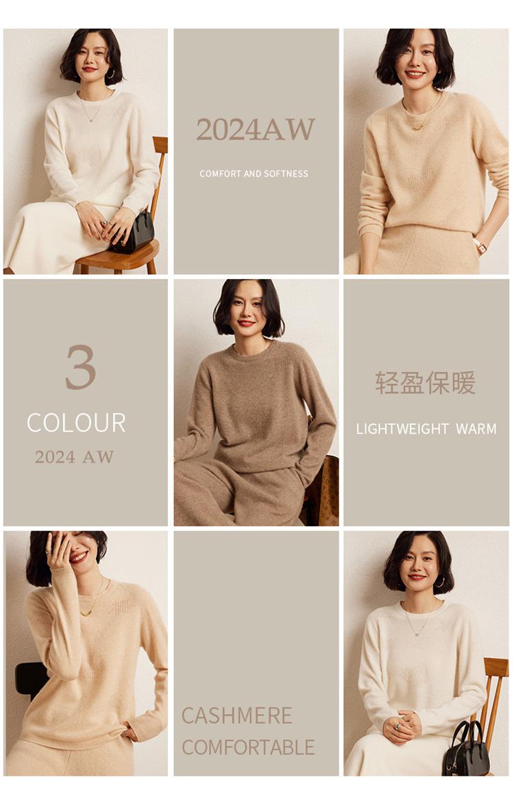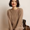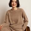 Cachemira 2025 Otoño/Invierno Nuevo Suéter de Punto Corto Suelto de Cuello Redondo y Color Sólido con Recorte Plano para Mujer