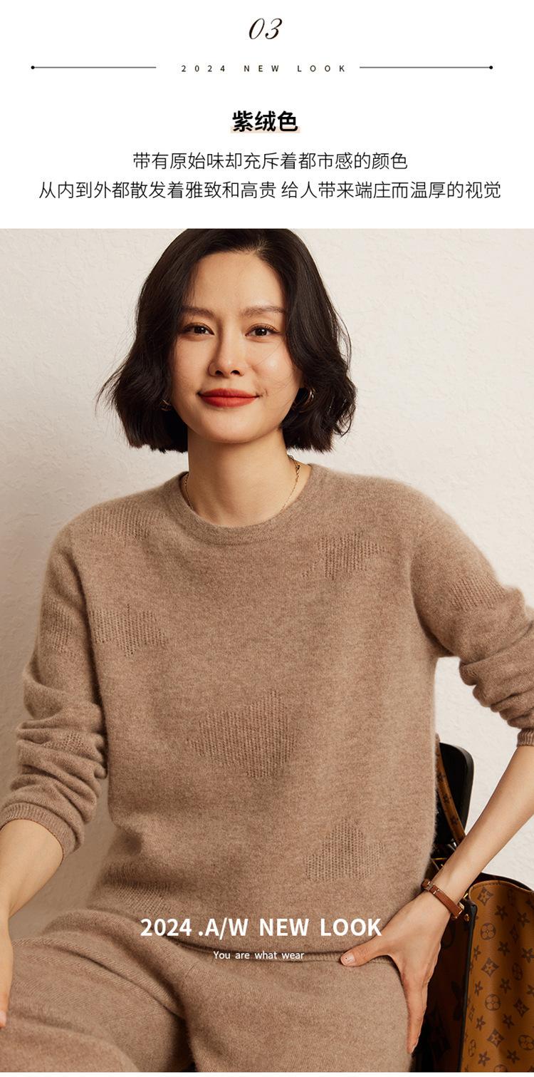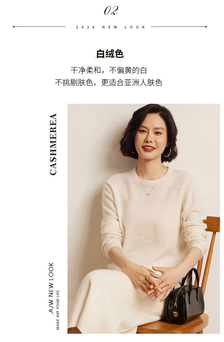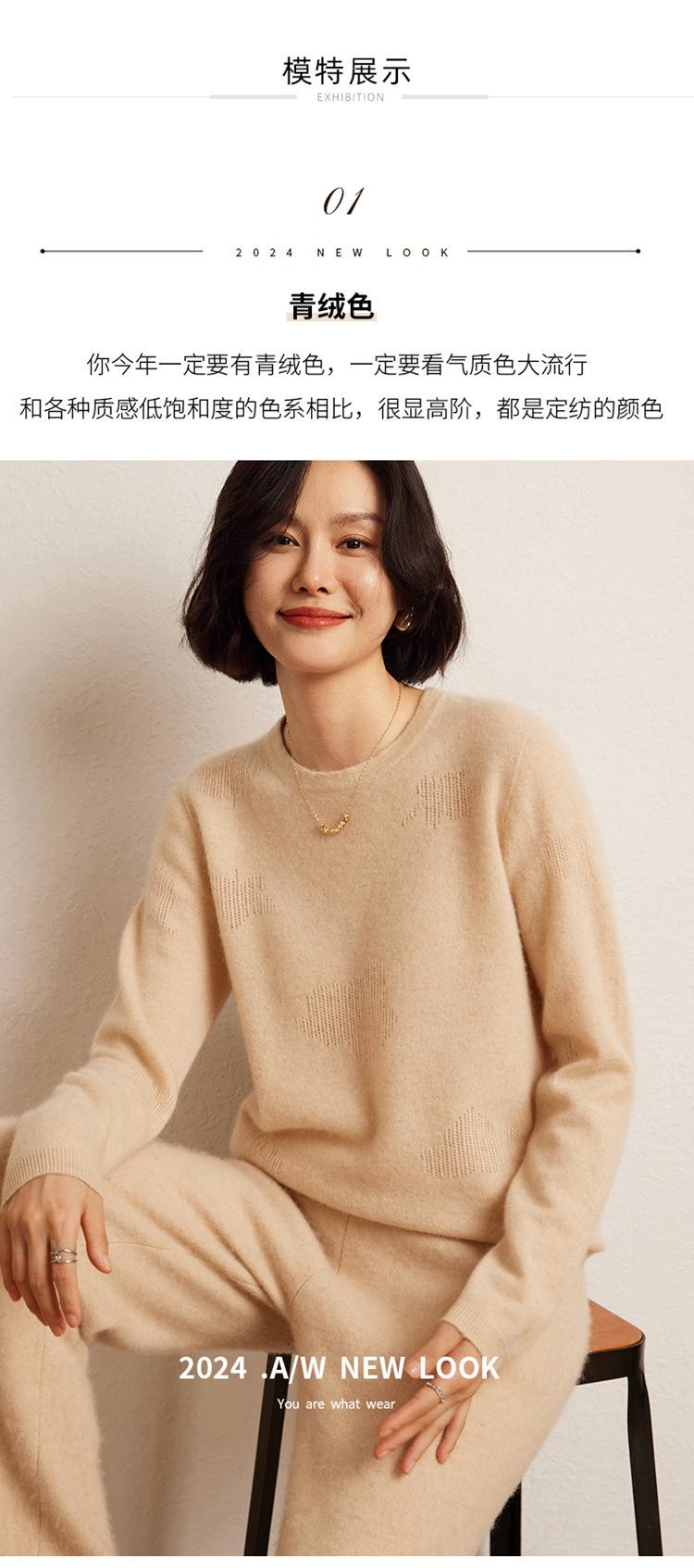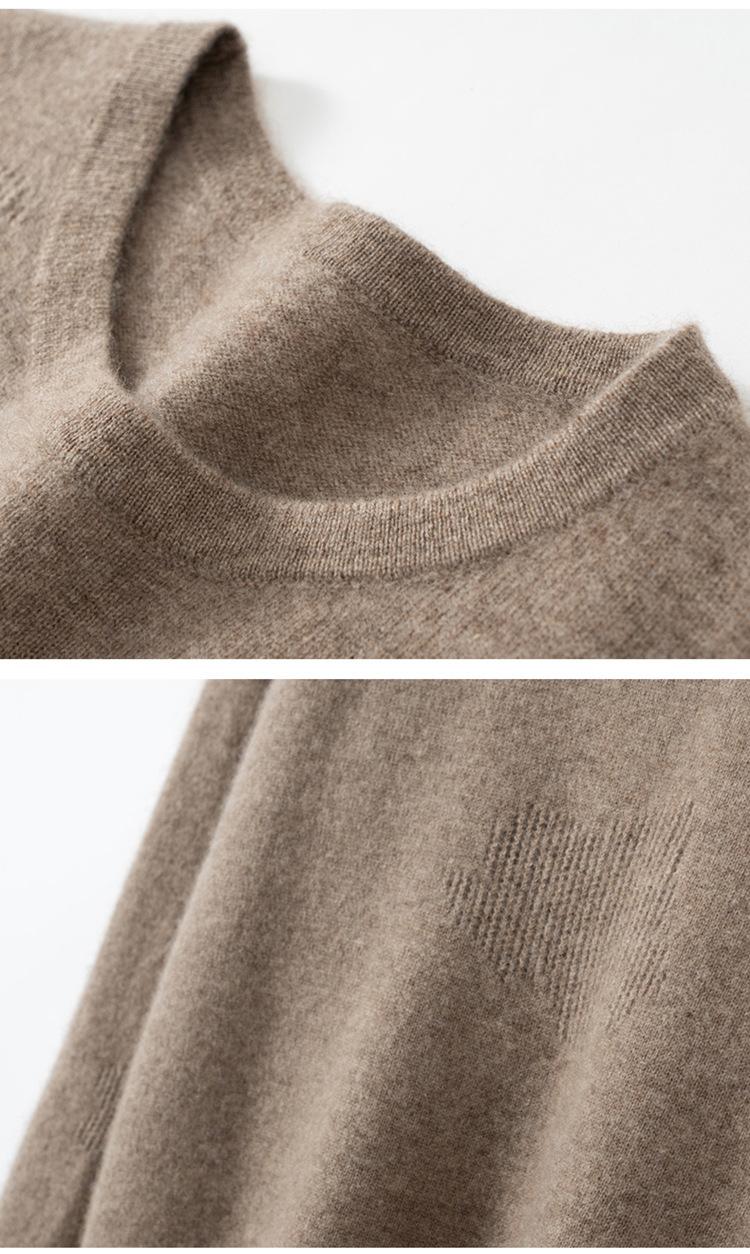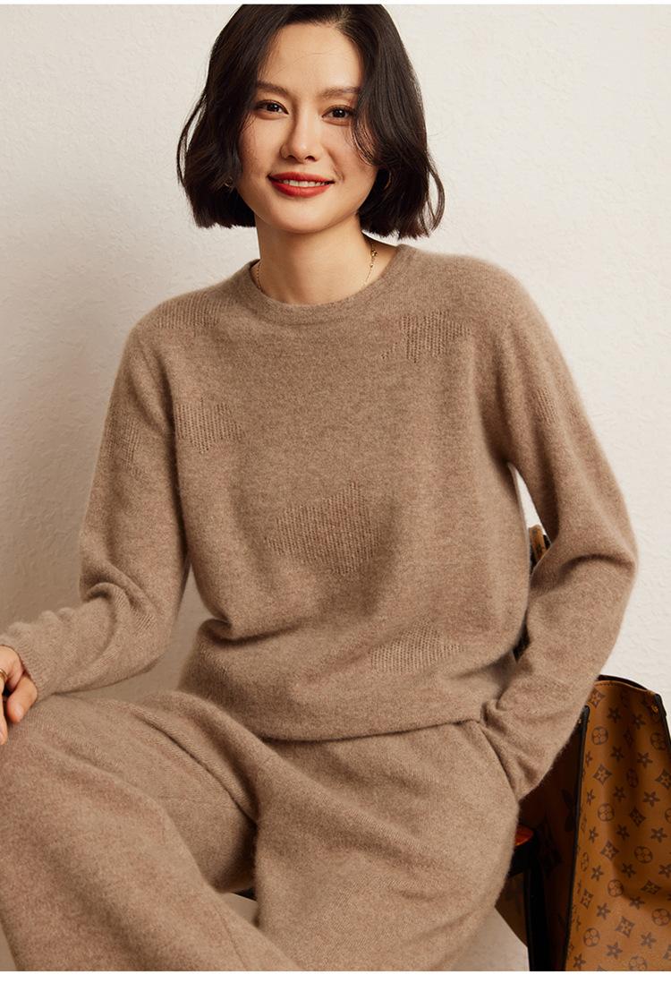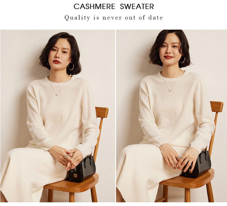 Cachemira 2025 Otoño/Invierno Nuevo Suéter de Punto Corto Suelto de Cuello Redondo y Color Sólido con Recorte Plano para Mujer