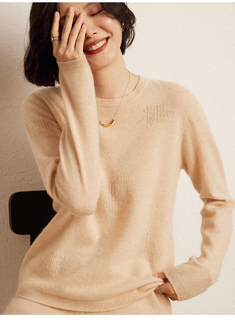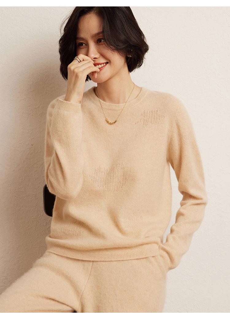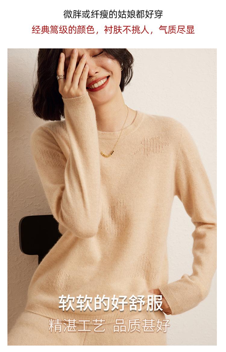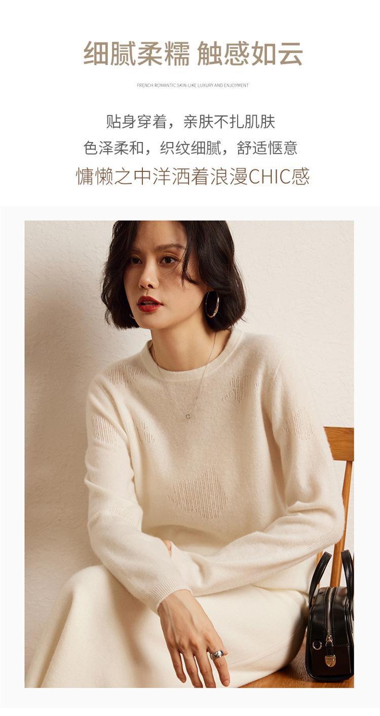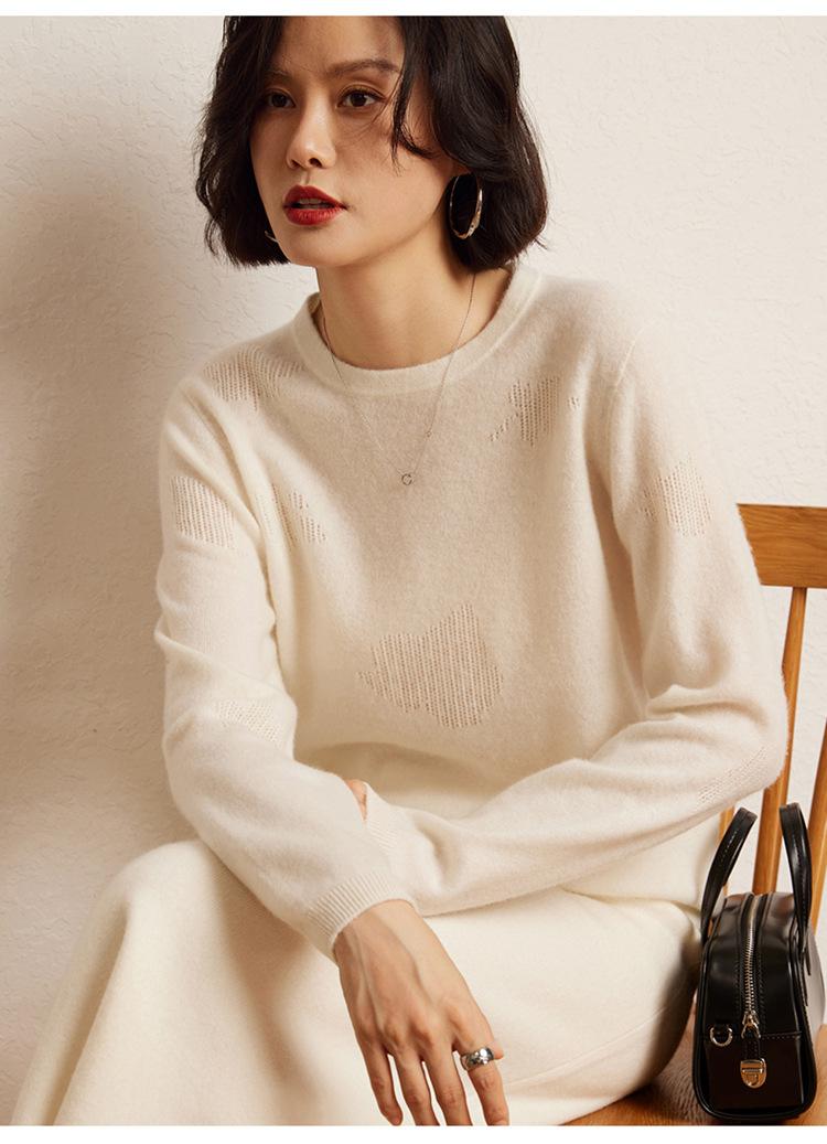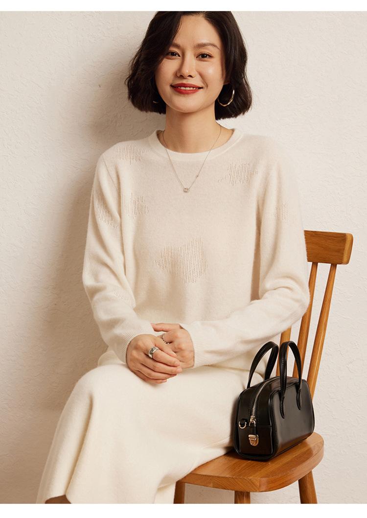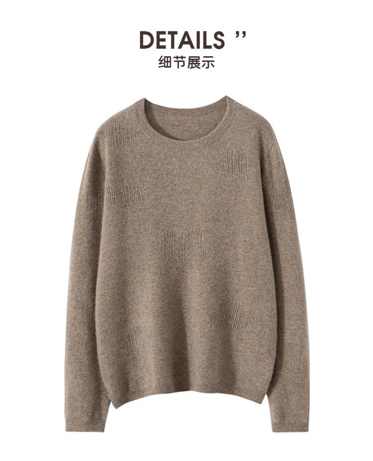 Cachemira 2025 Otoño/Invierno Nuevo Suéter de Punto Corto Suelto de Cuello Redondo y Color Sólido con Recorte Plano para Mujer