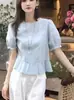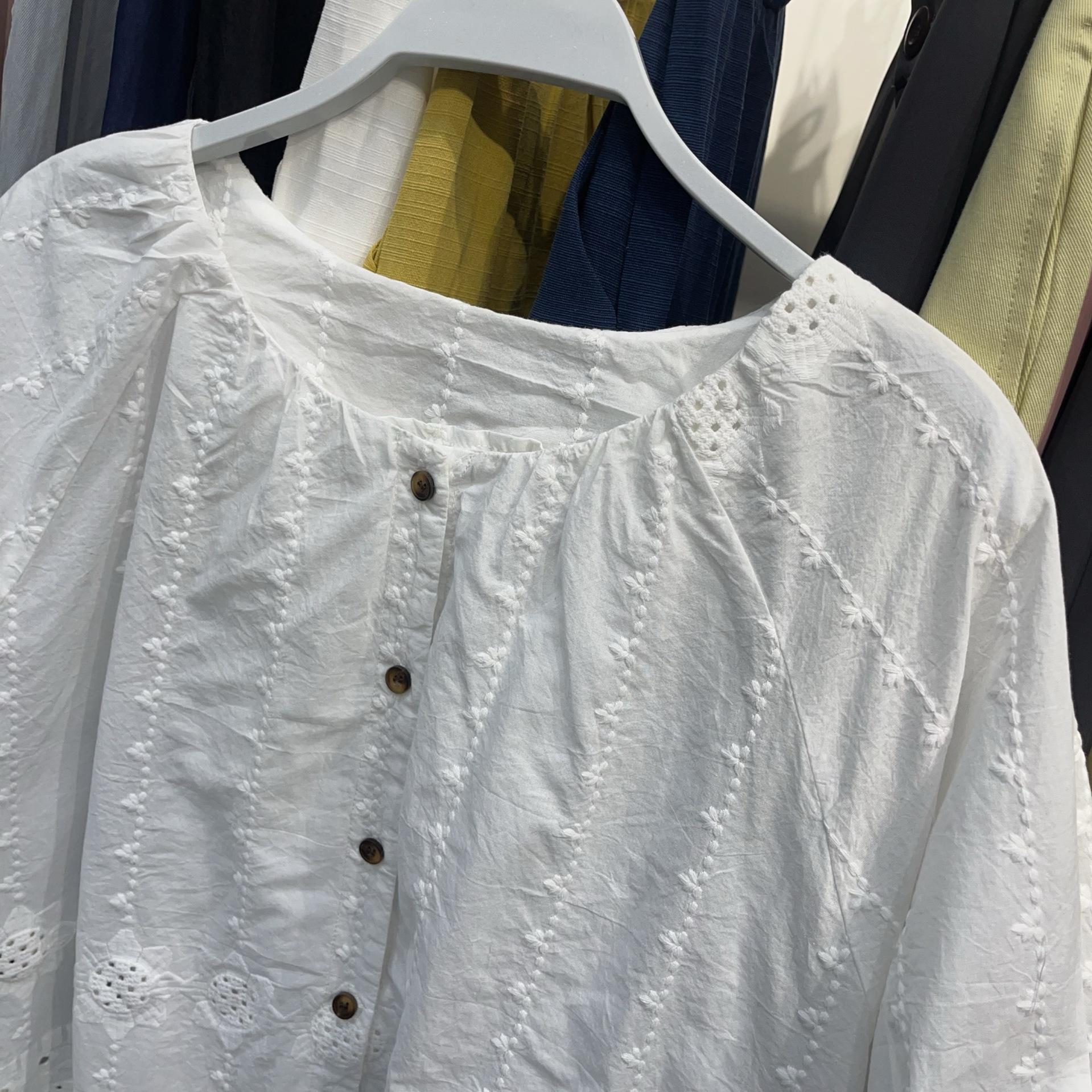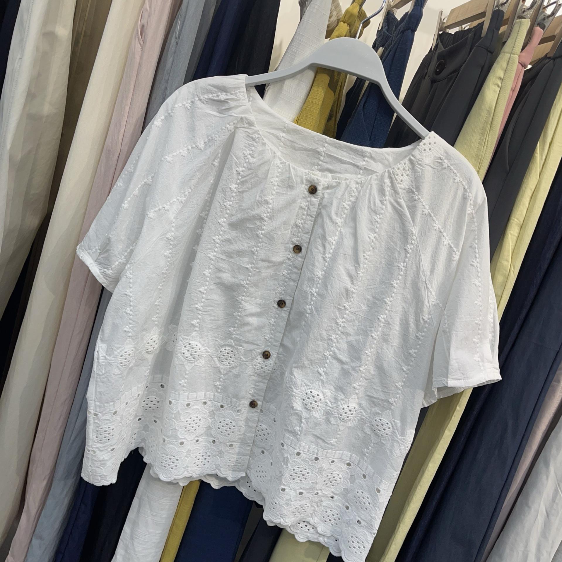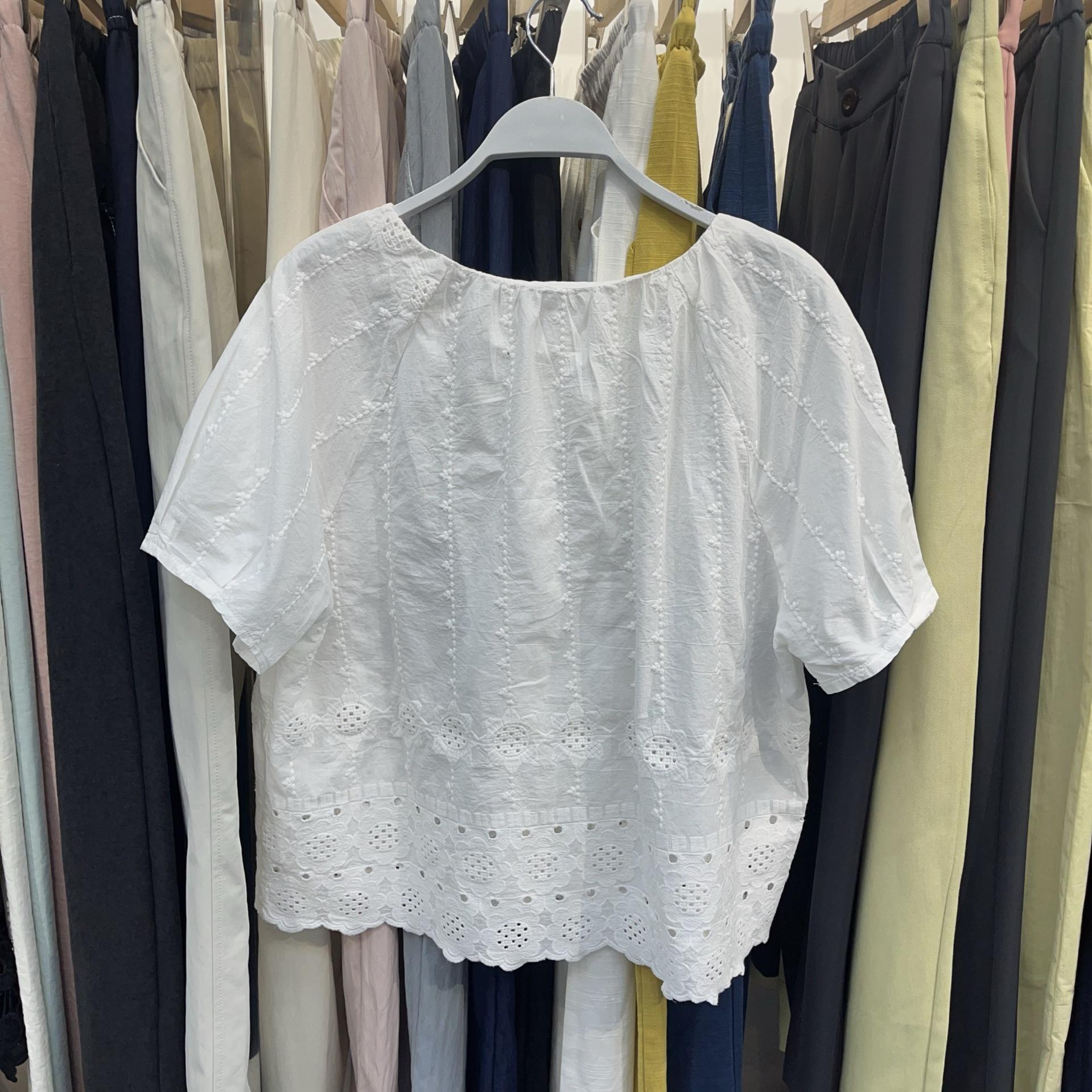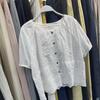 2025 Nuevo Verano Estilo Coreano Moda Versátil Cuello Redondo Manga Corta Camiseta de Mujer Holgada con Efecto Adelgazante Top Bordado con Recortes