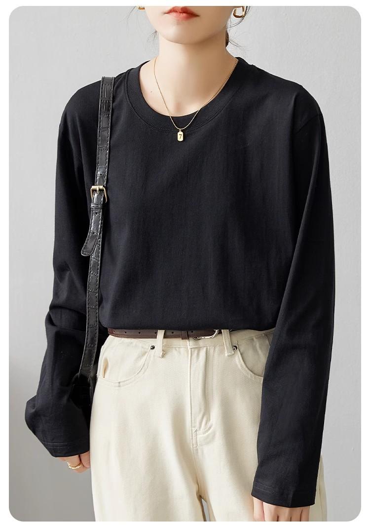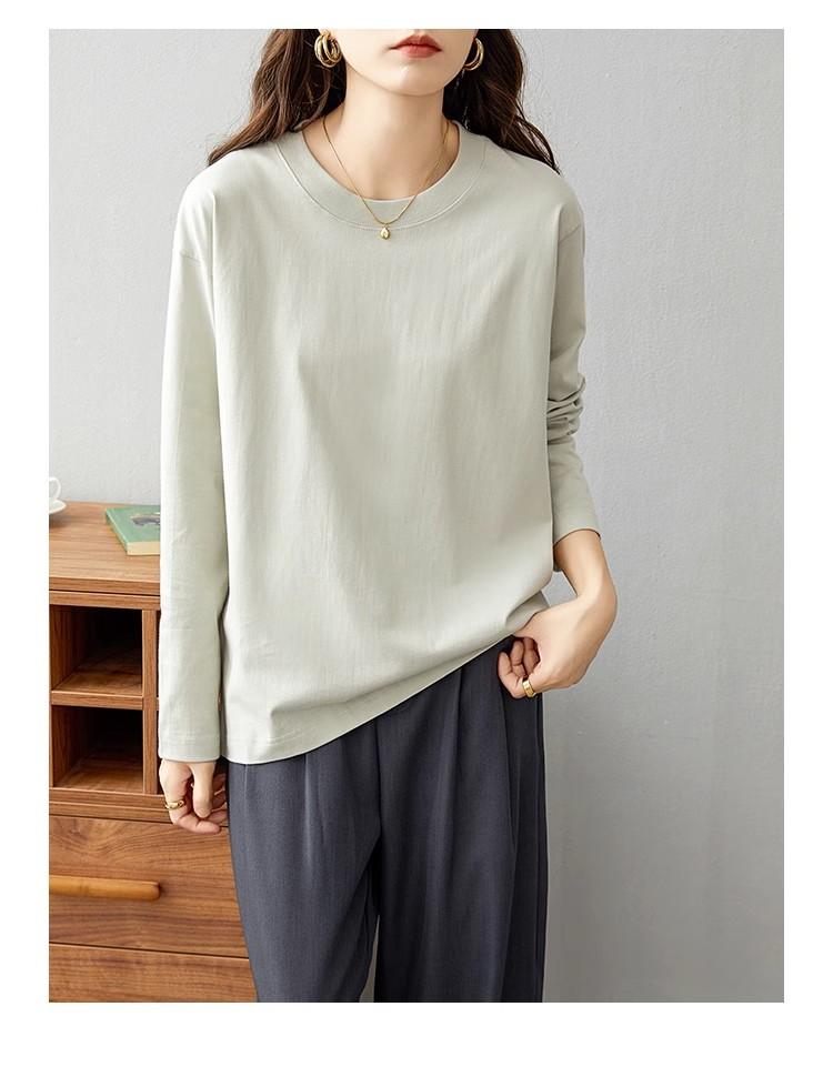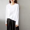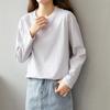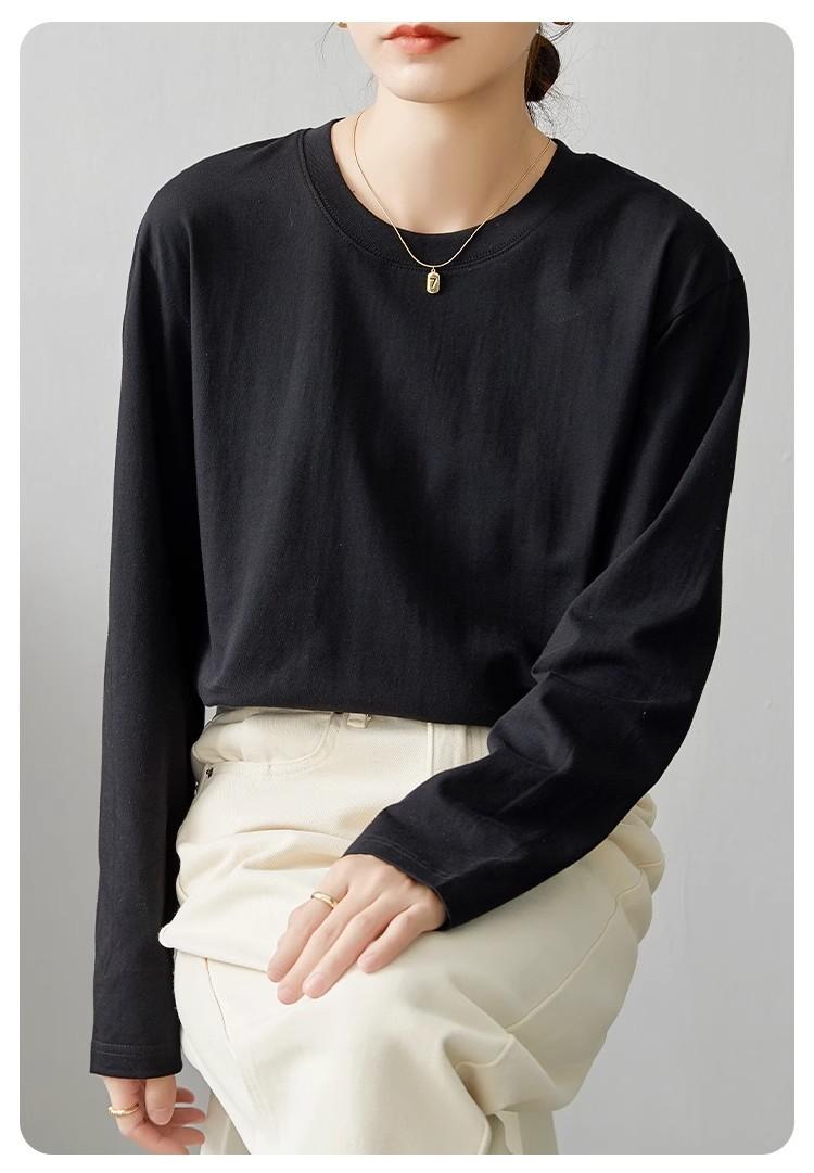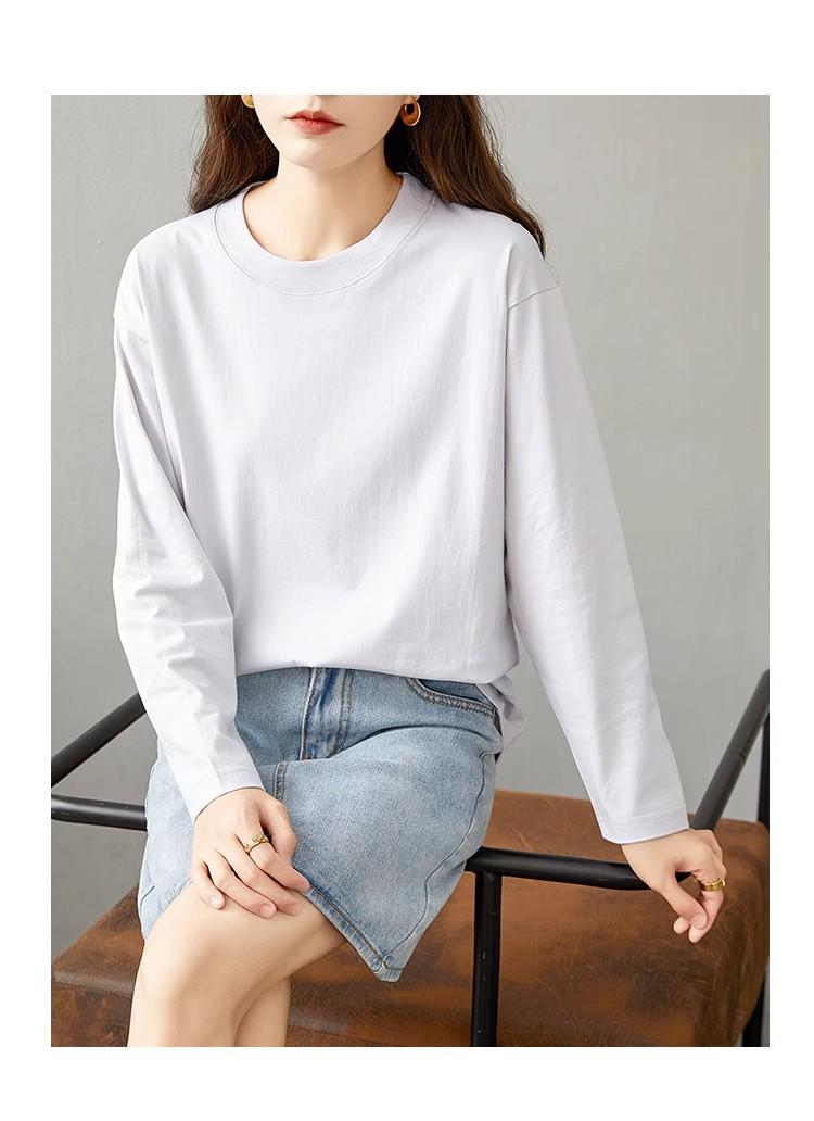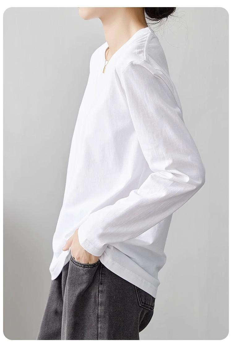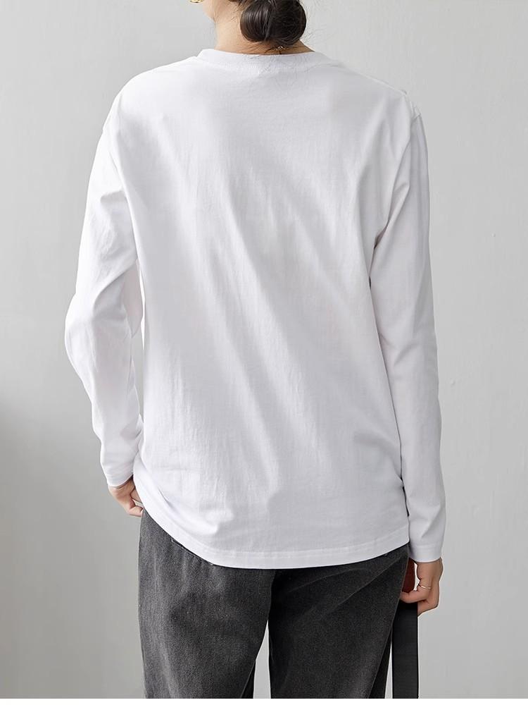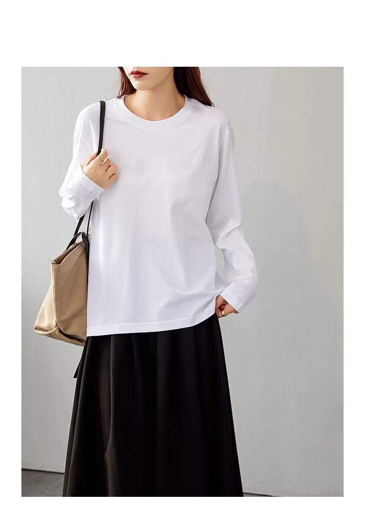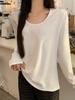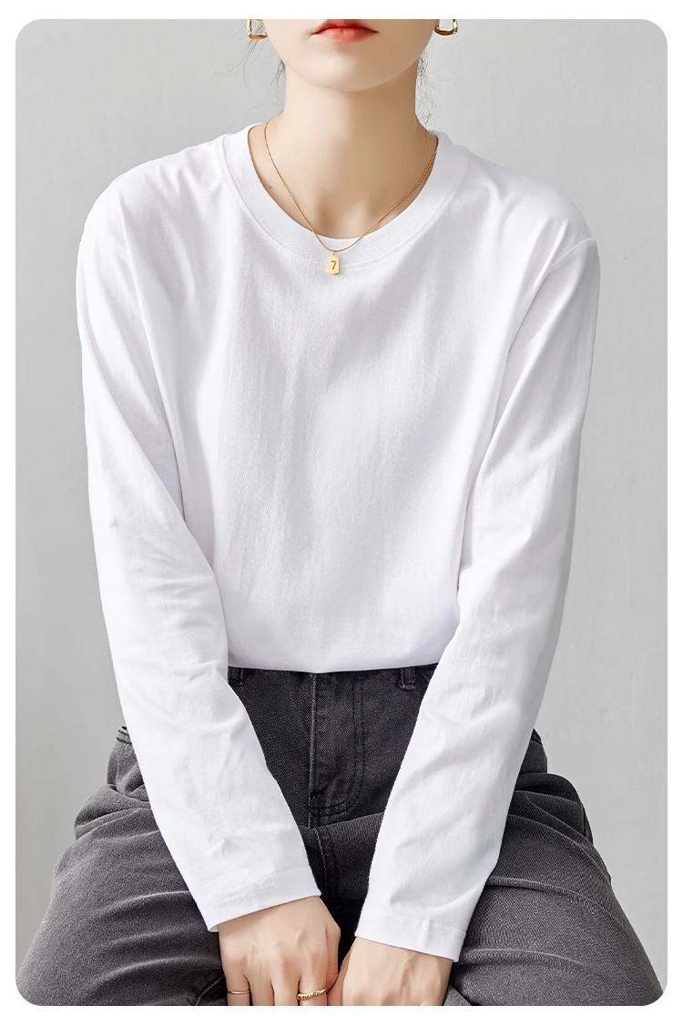Camiseta blanca mujer manga larga primavera otoño 2025 nueva cuello redondo camiseta básica de algodón puro hombro recto top estilo básico