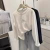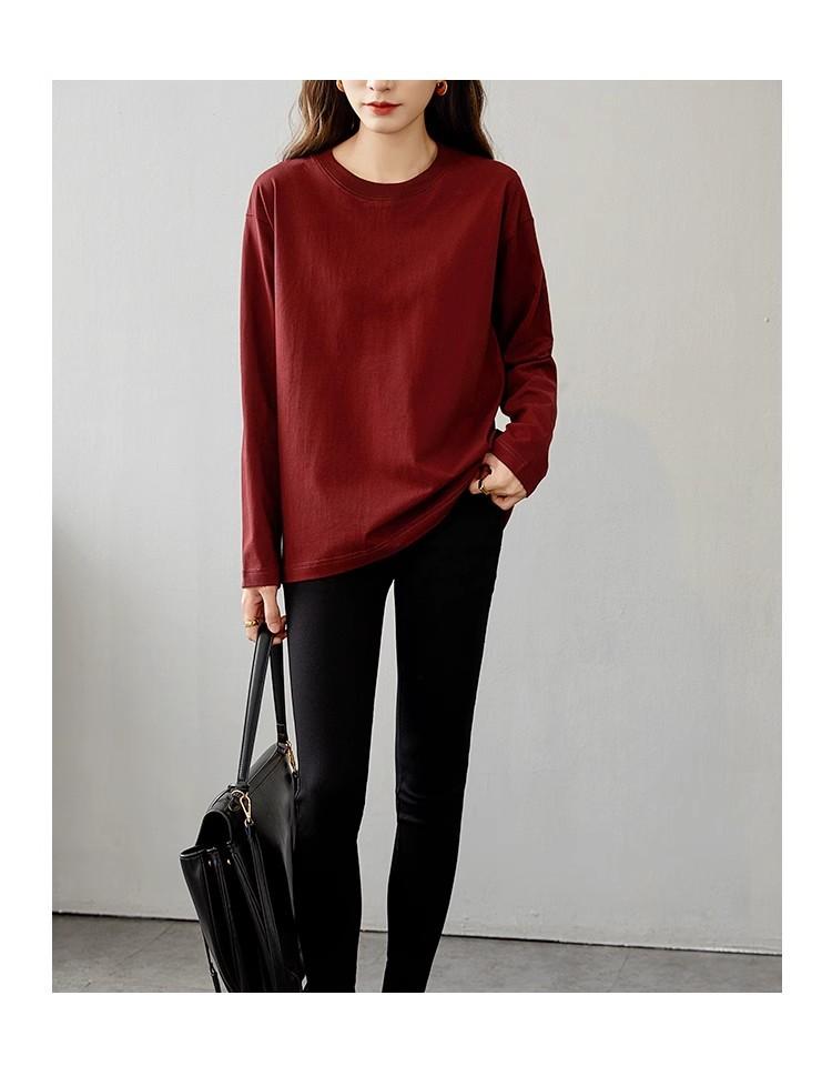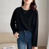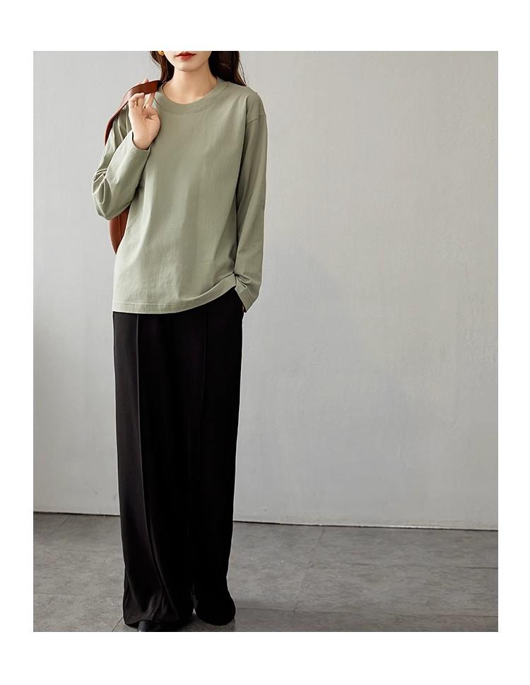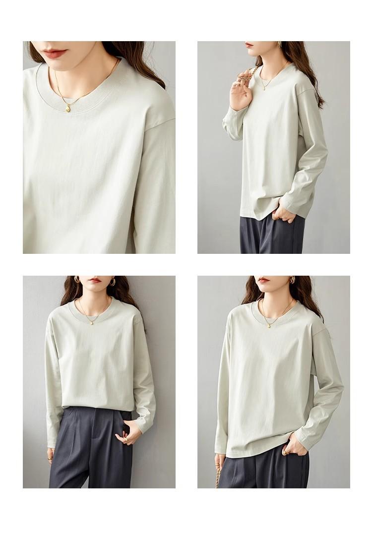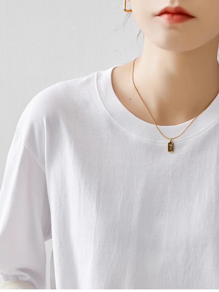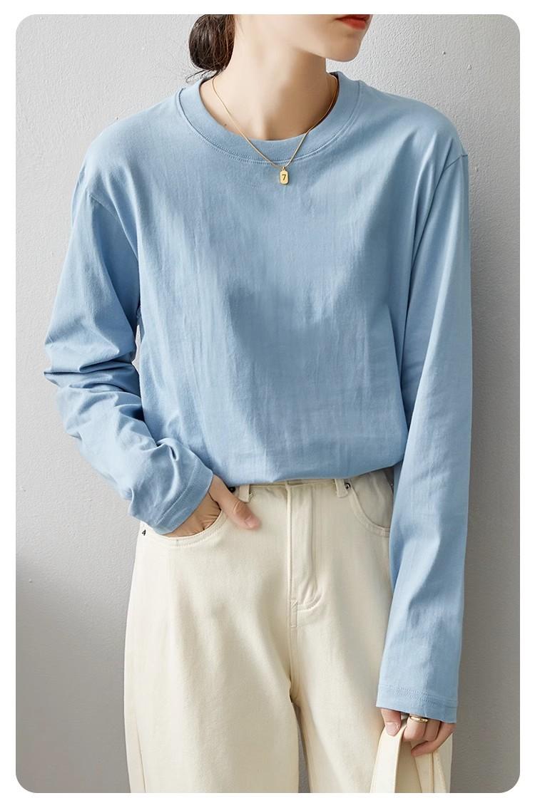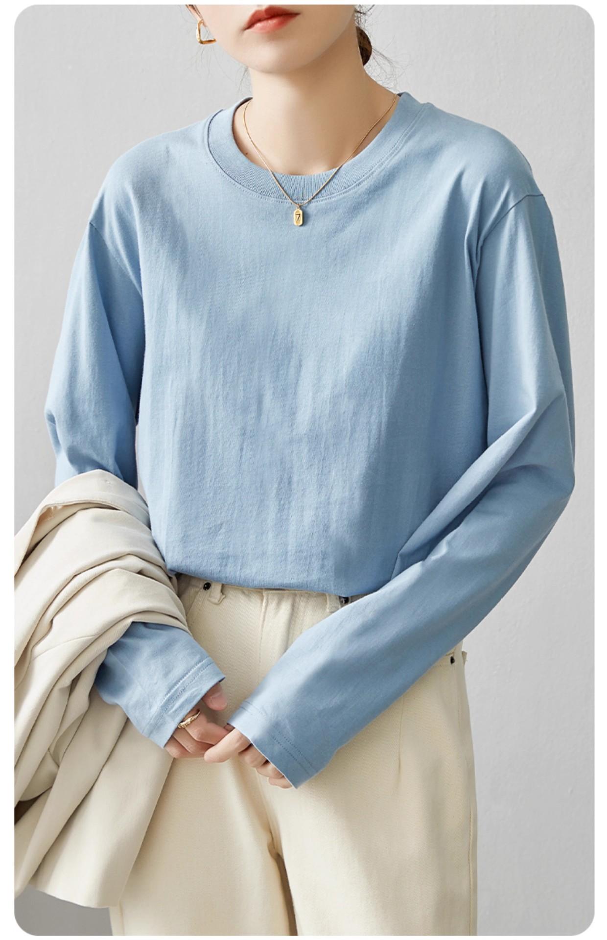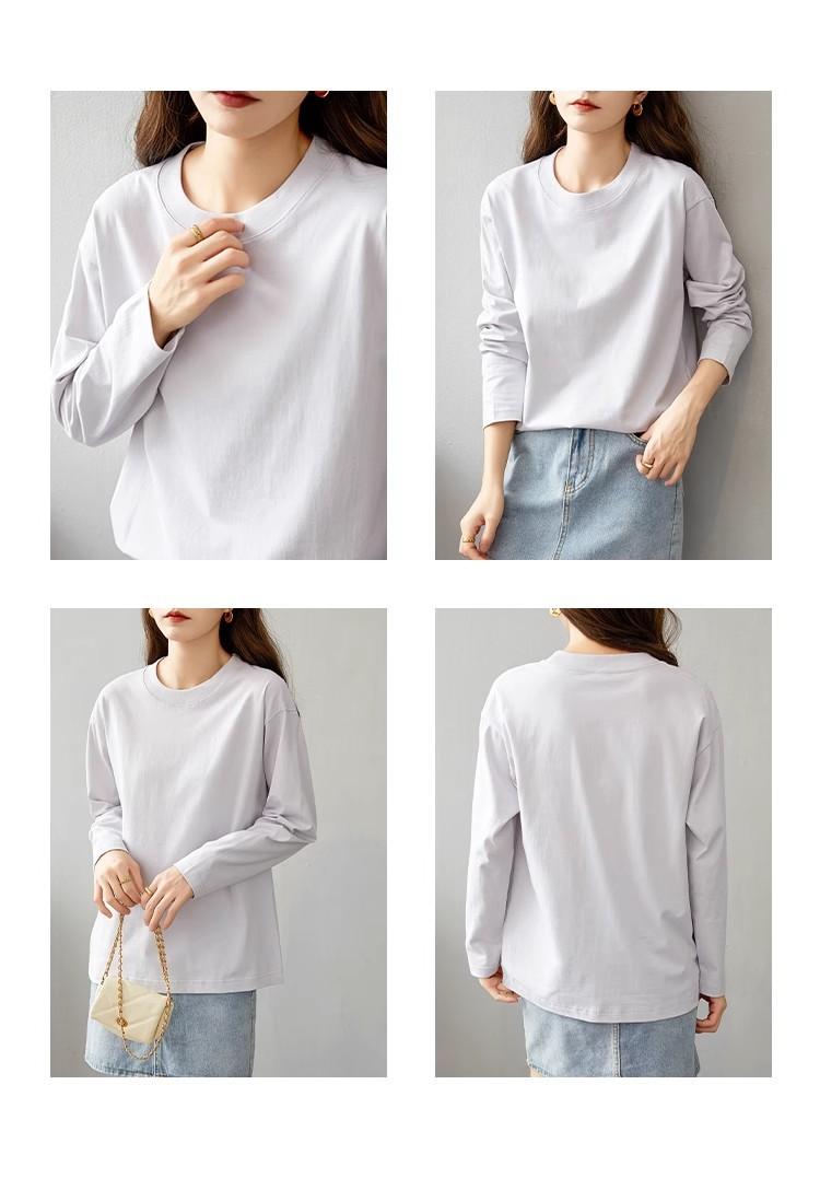 Camiseta blanca mujer manga larga primavera otoño 2025 nueva cuello redondo camiseta básica de algodón puro hombro recto top estilo básico
