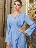 BA3040 Nuevo Vestido con Volantes de Manga Larga y Cuello en V