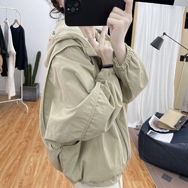 Chaqueta Cortavientos Corta con Capucha de Color Sólido 2025 Nueva Moda Primavera y Otoño Chaqueta Casual Holgada Top