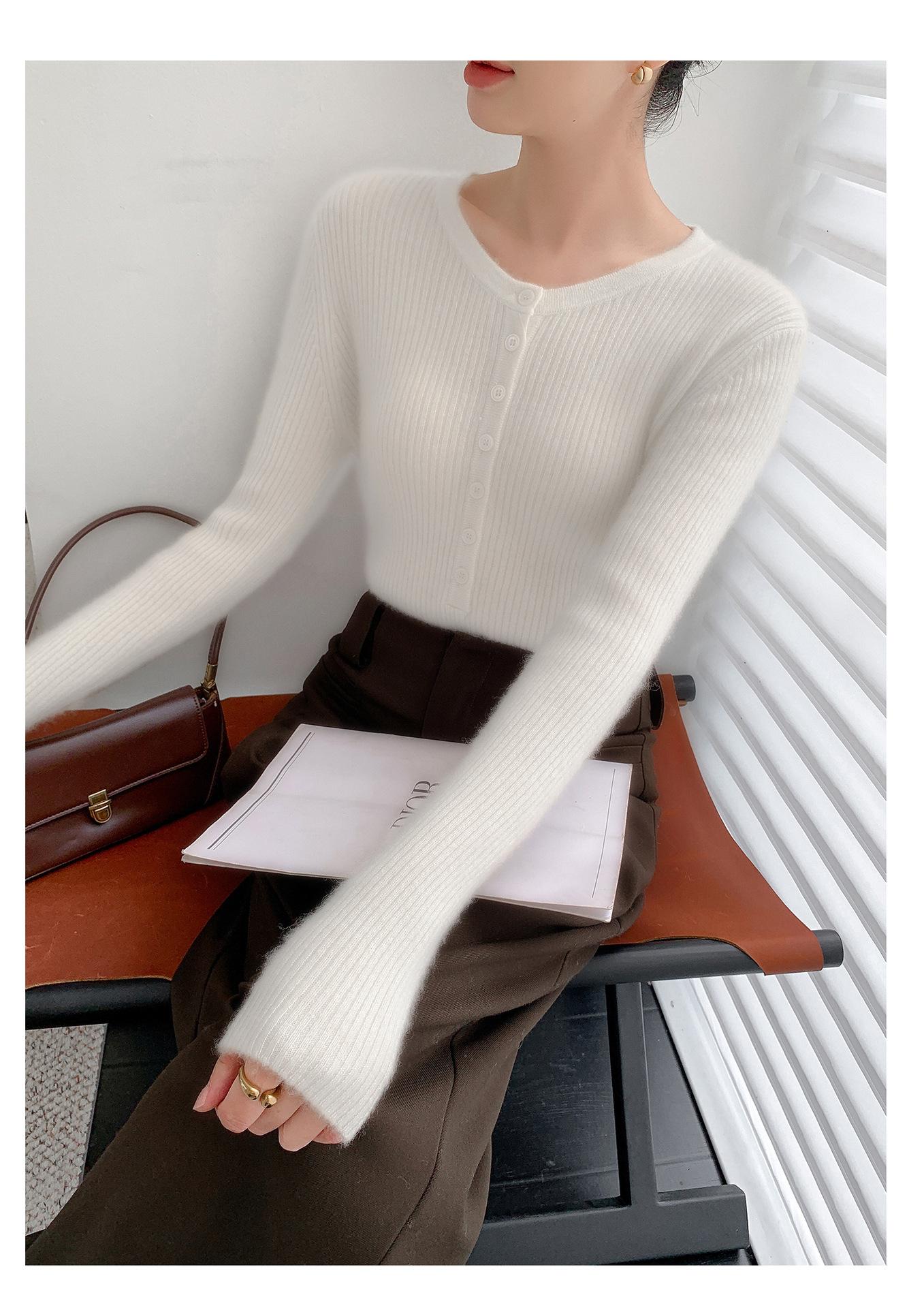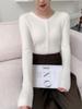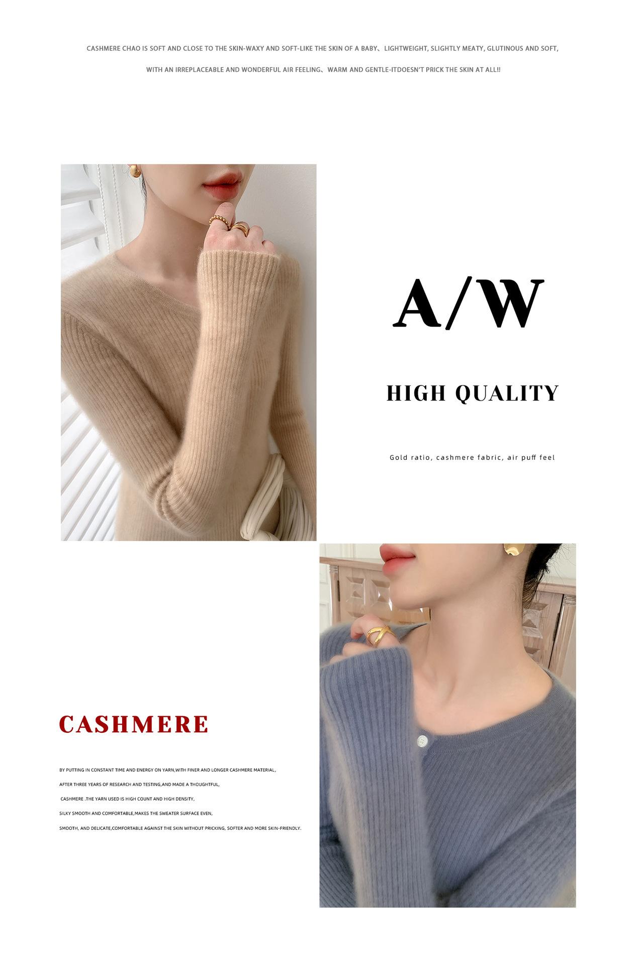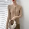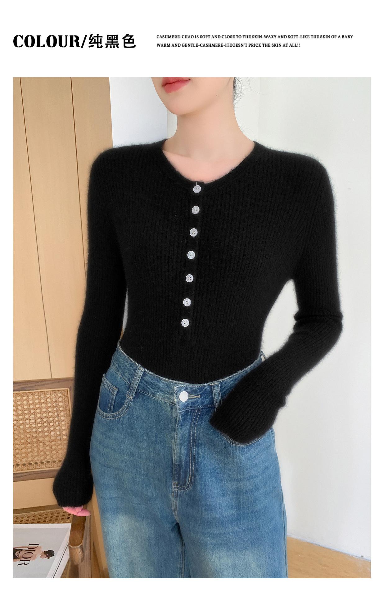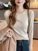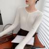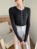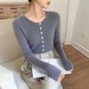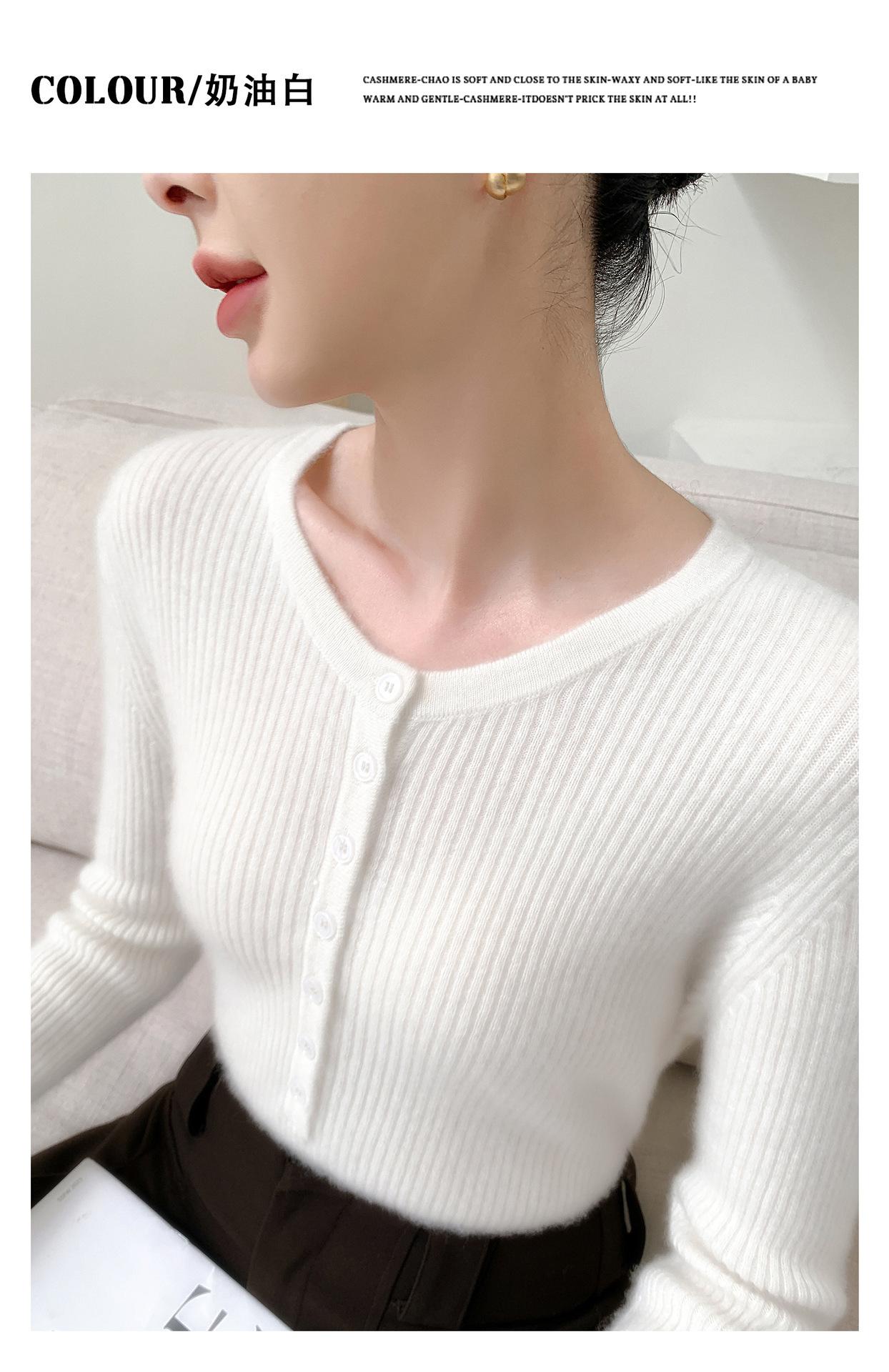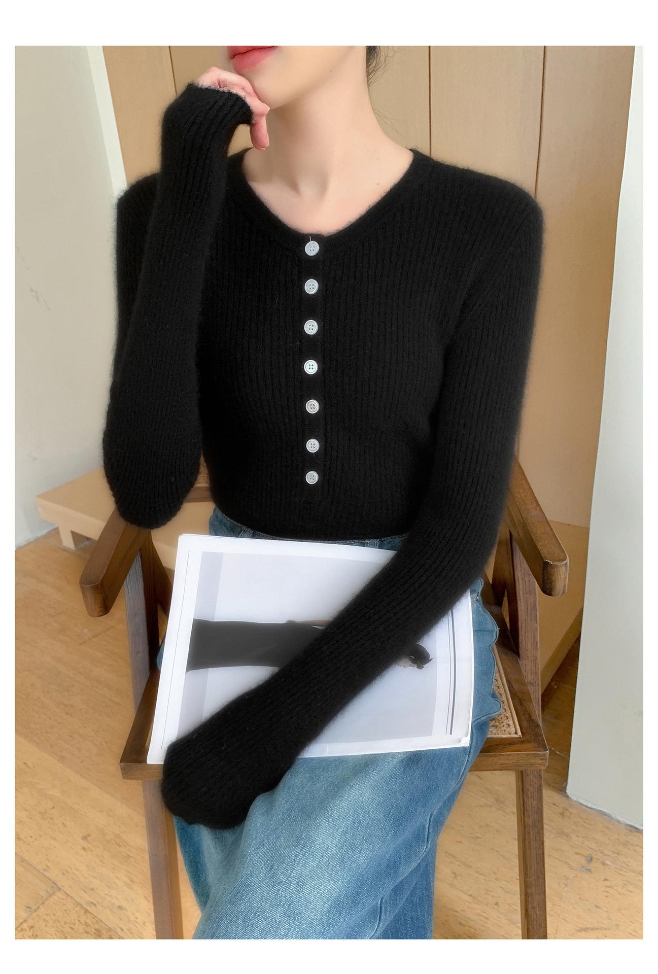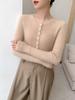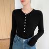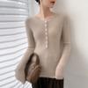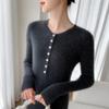 Camiseta básica de punto estilo coreano para mujer Sensación del año Nuevo estilo Cuello redondo acanalado Diseño de otoño Cachemira Moda Botones