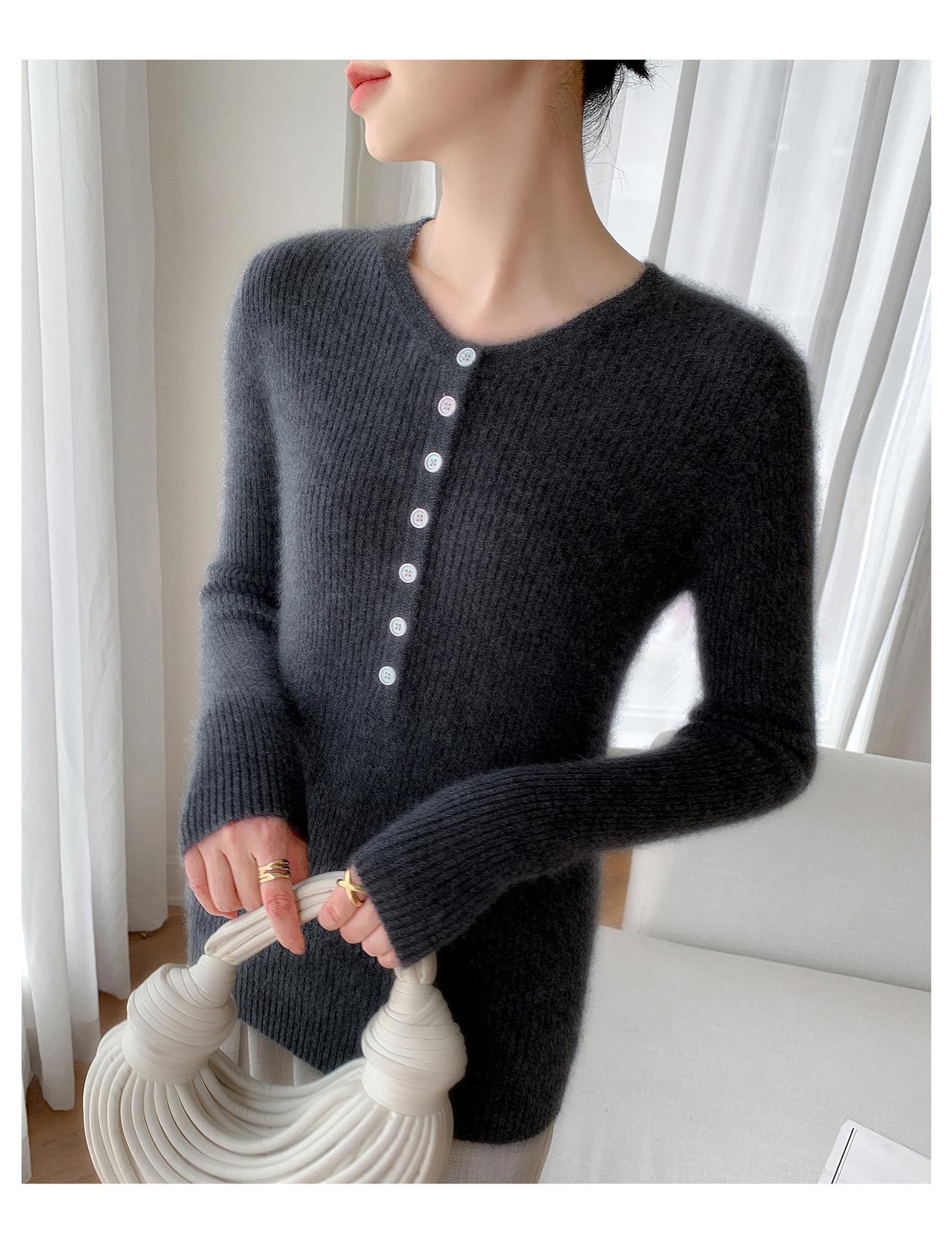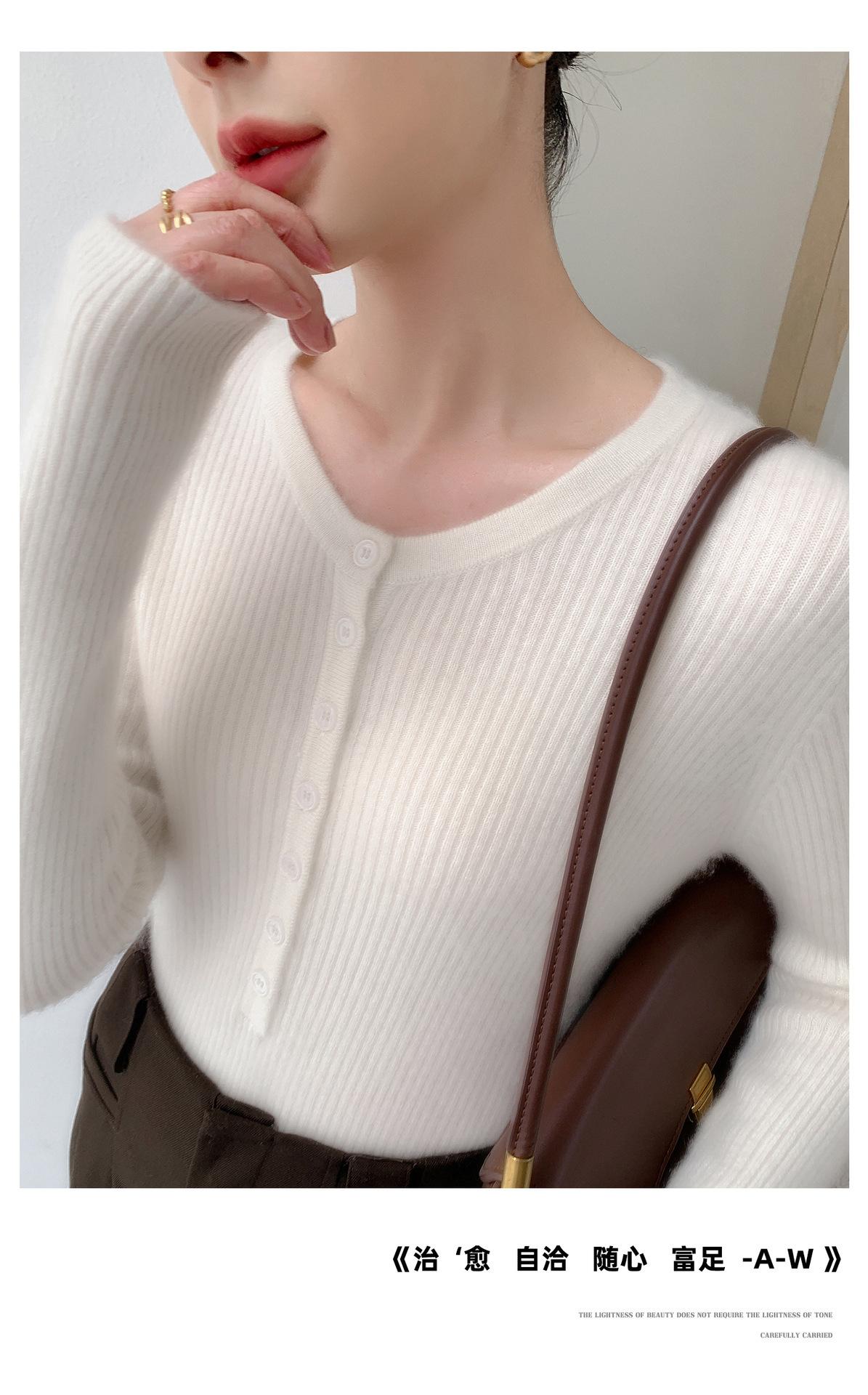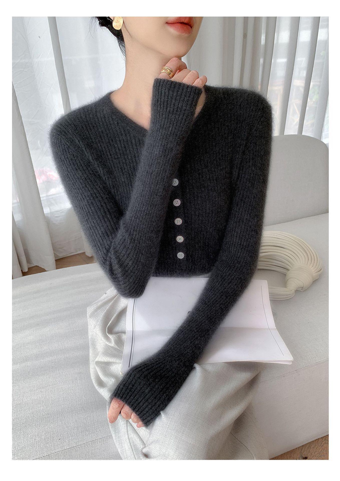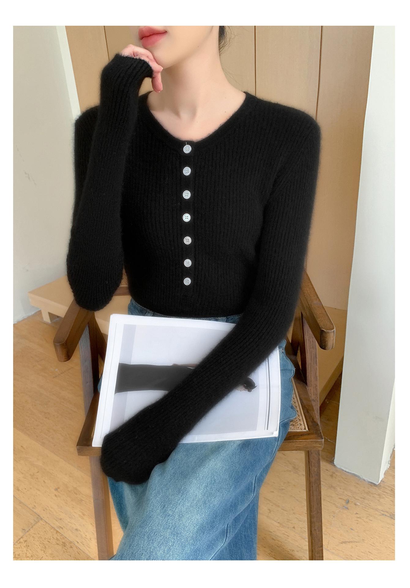 Camiseta básica de punto estilo coreano para mujer Sensación del año Nuevo estilo Cuello redondo acanalado Diseño de otoño Cachemira Moda Botones