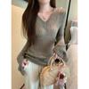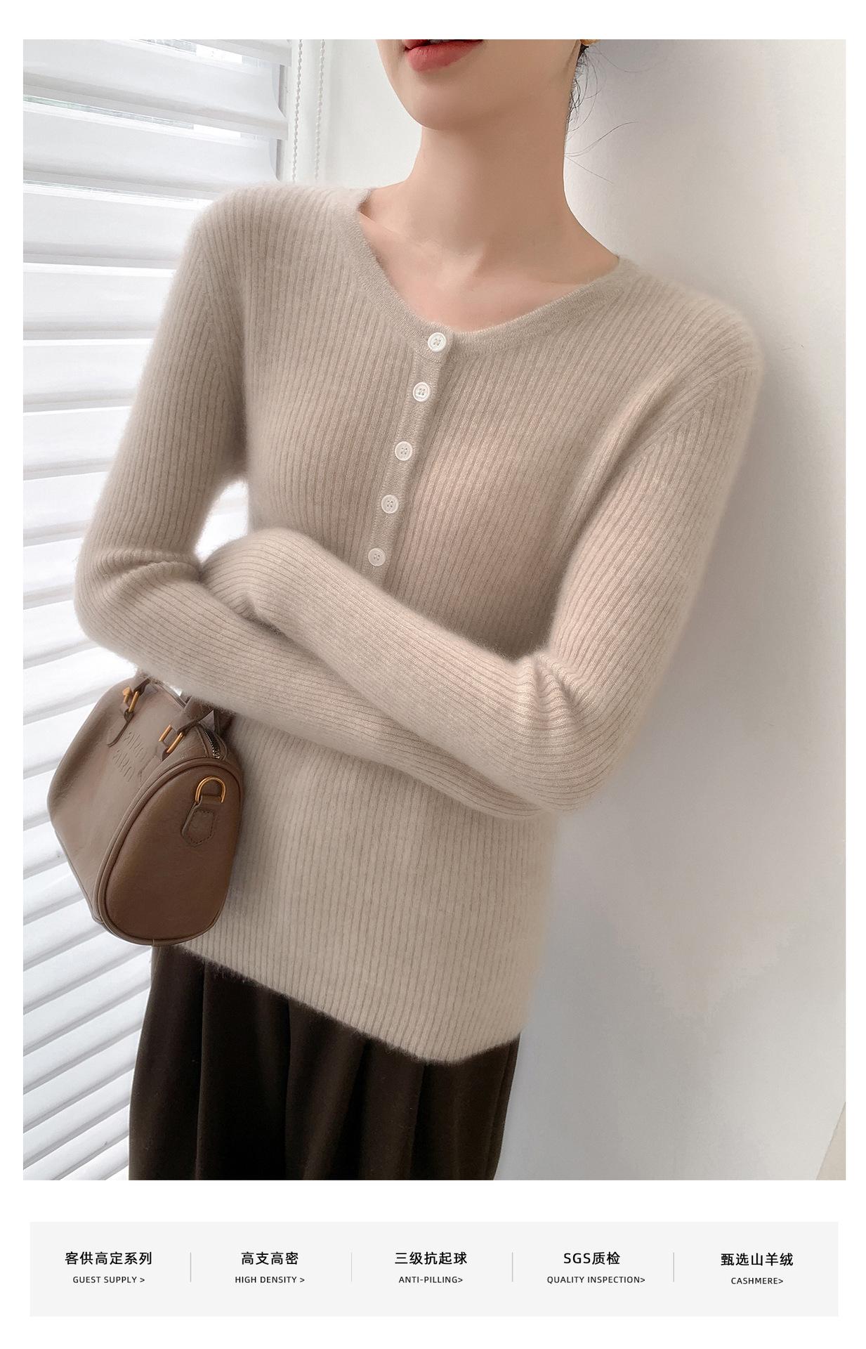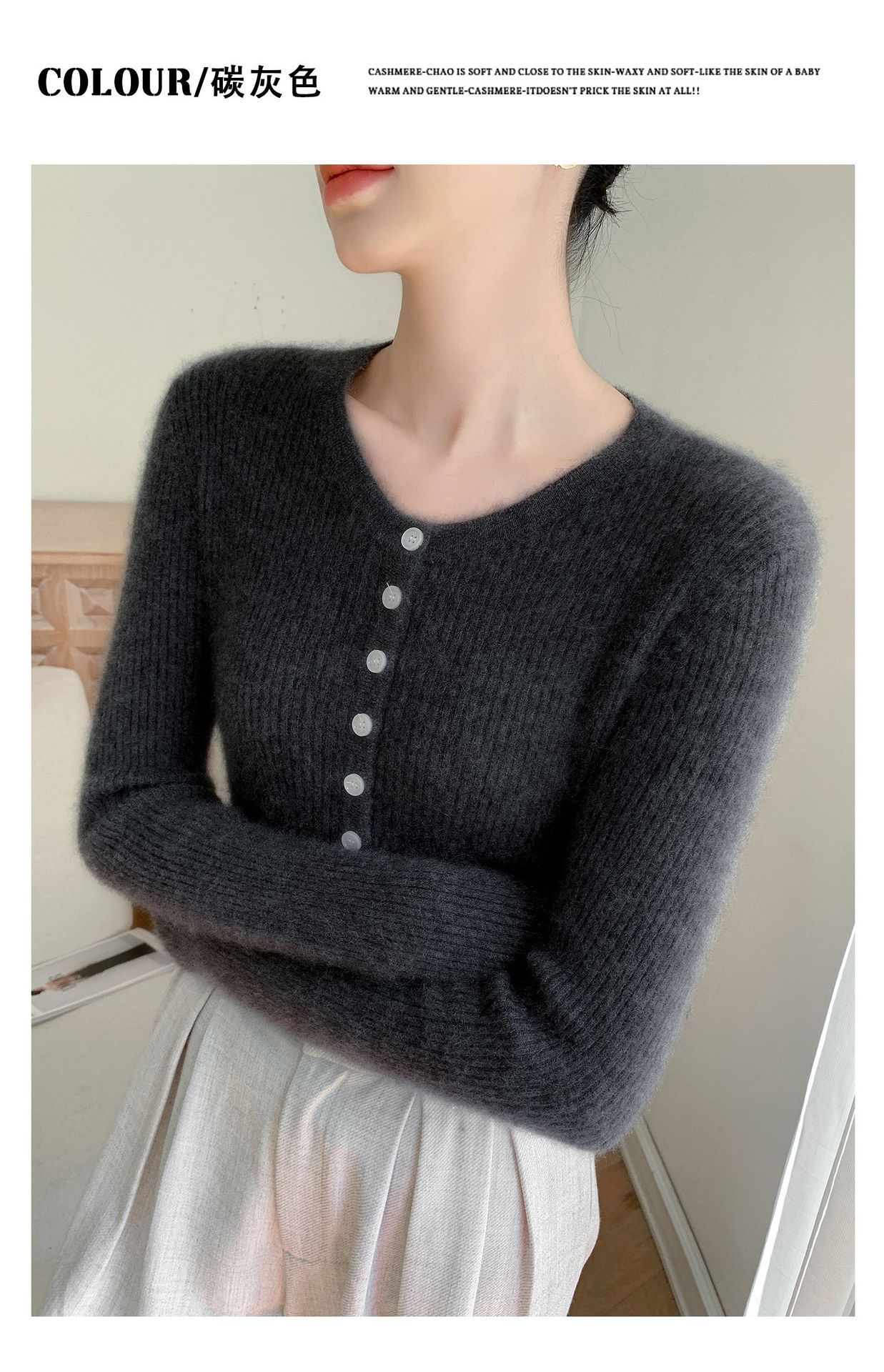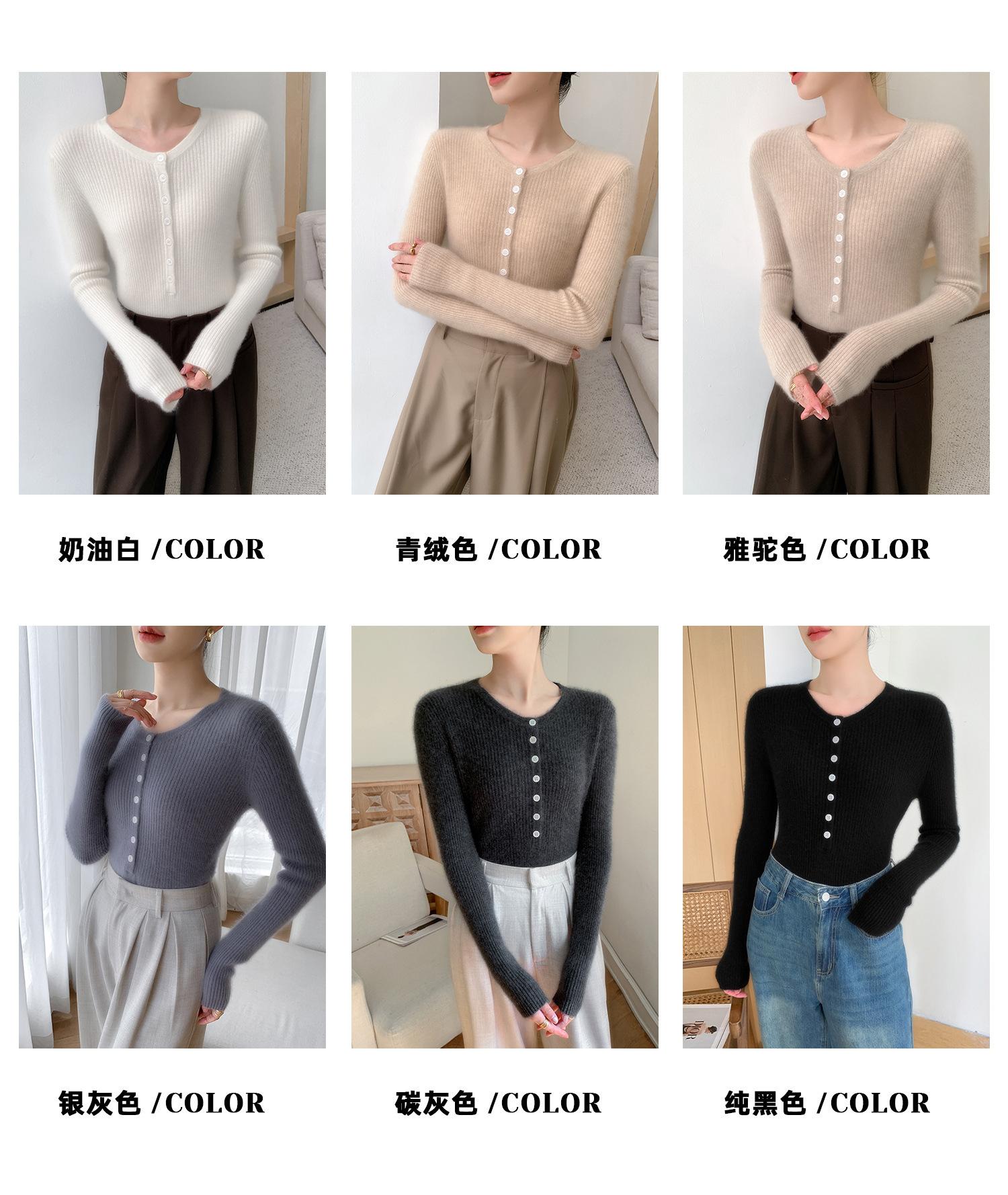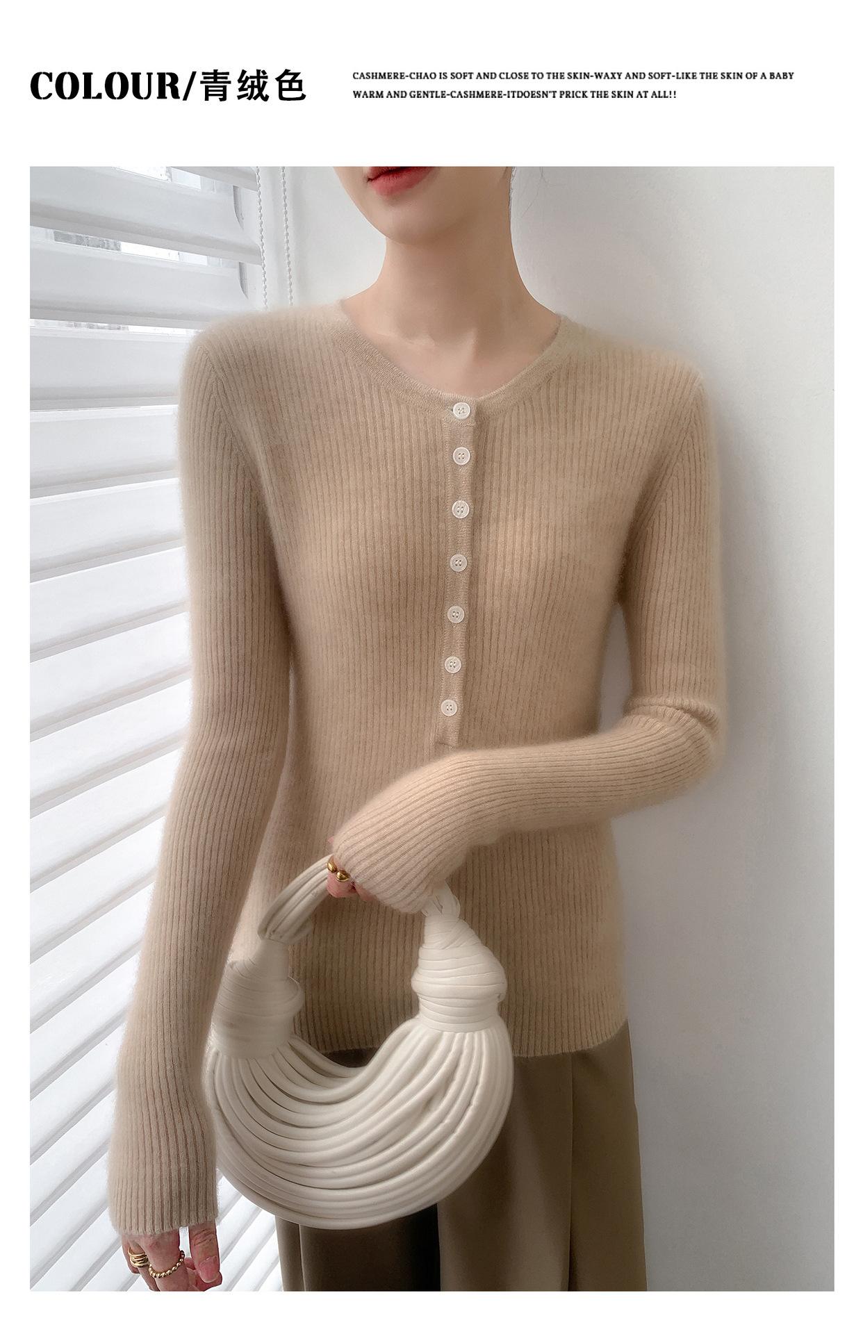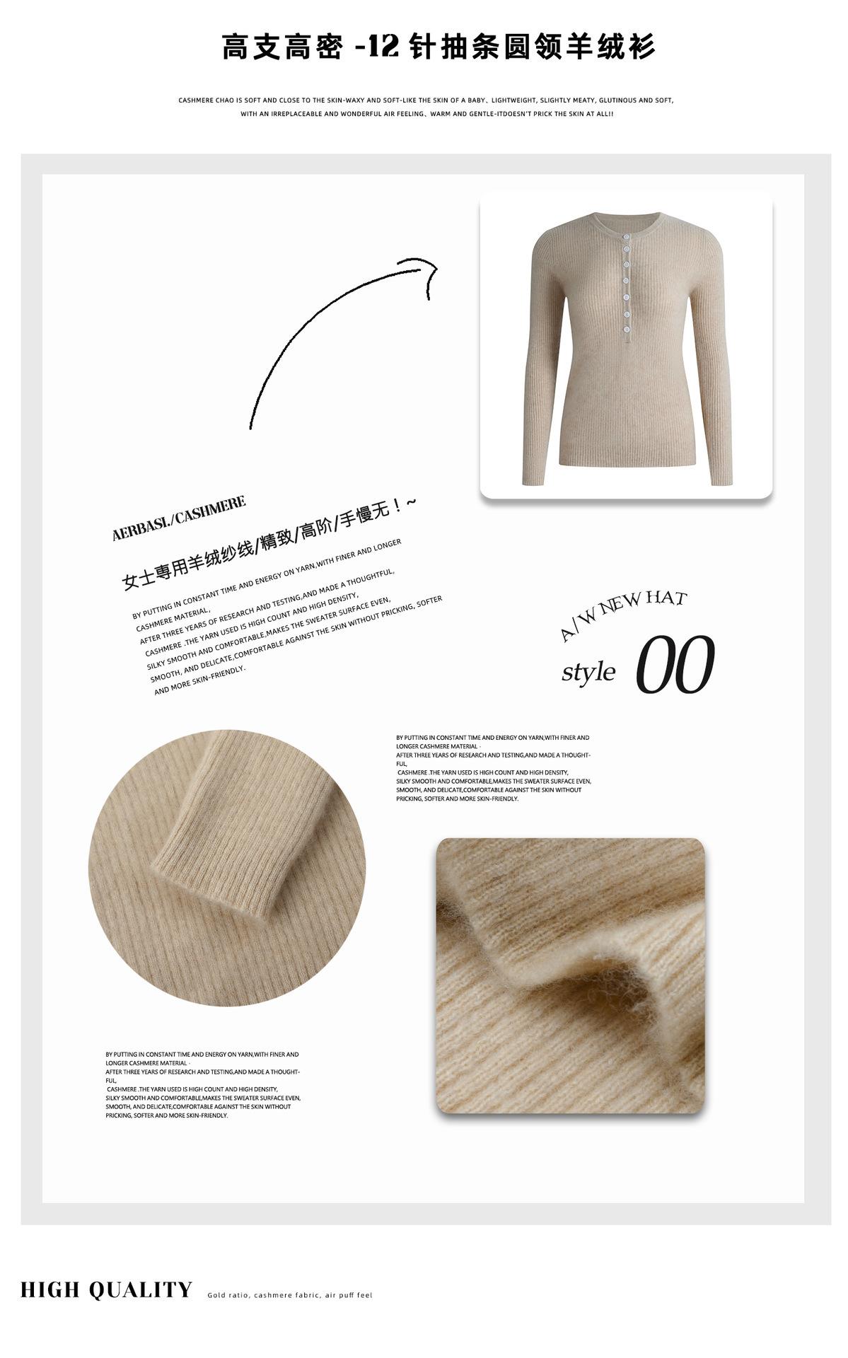 Camiseta básica de punto estilo coreano para mujer Sensación del año Nuevo estilo Cuello redondo acanalado Diseño de otoño Cachemira Moda Botones