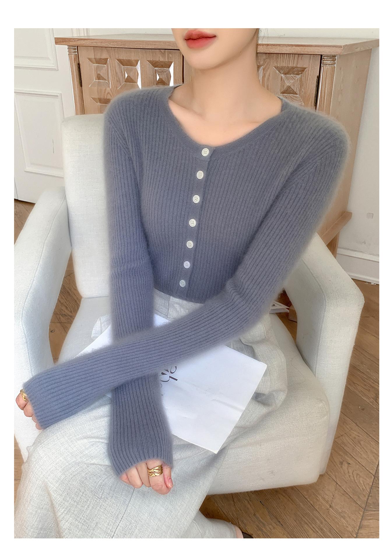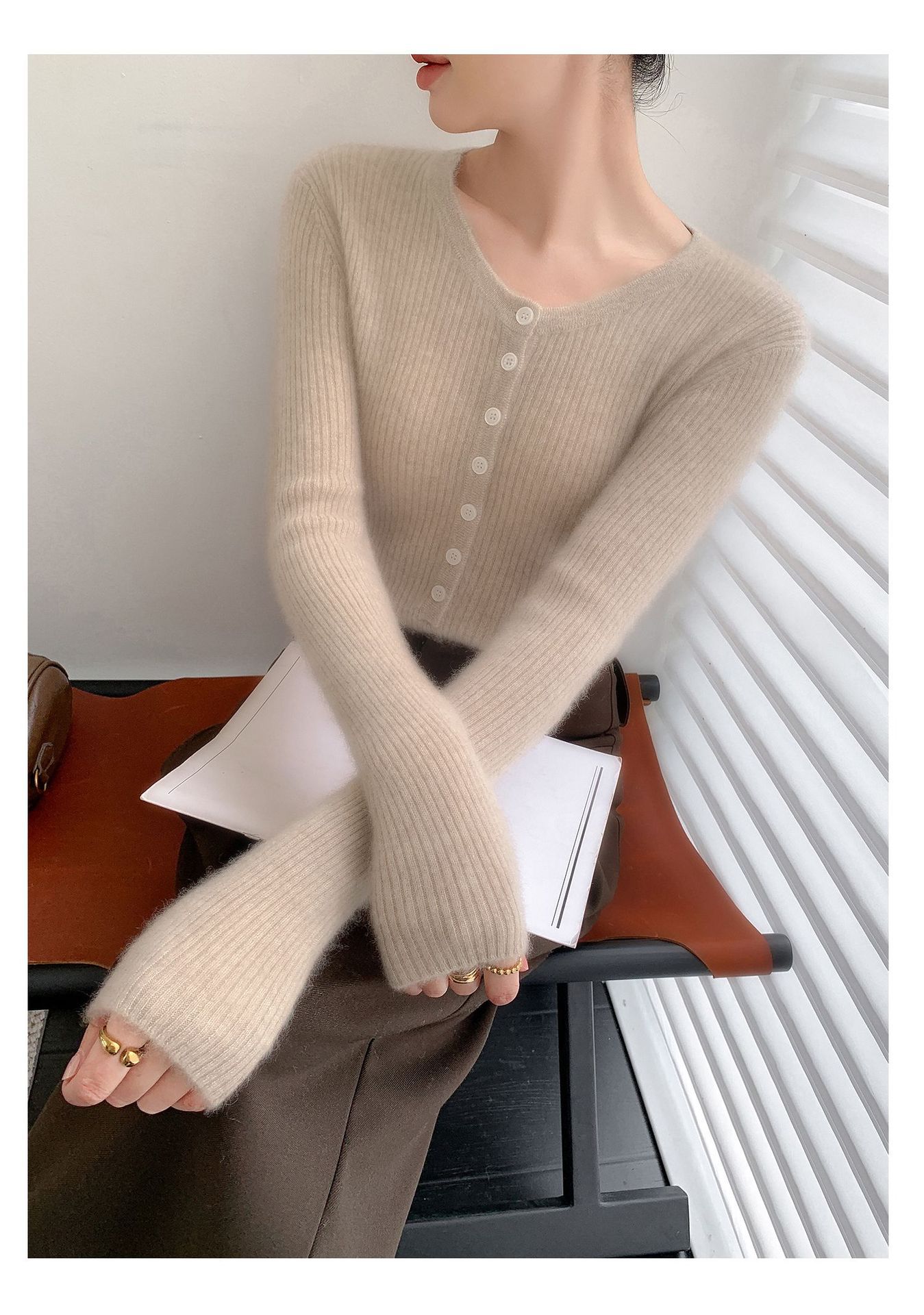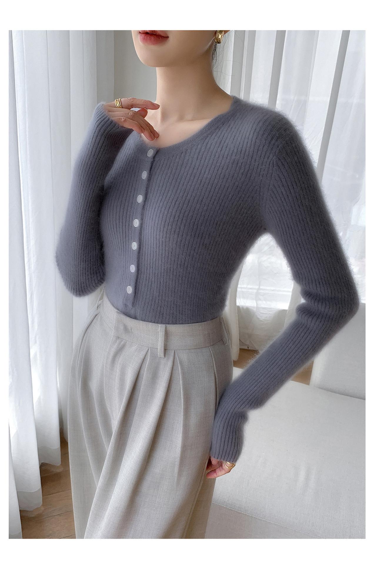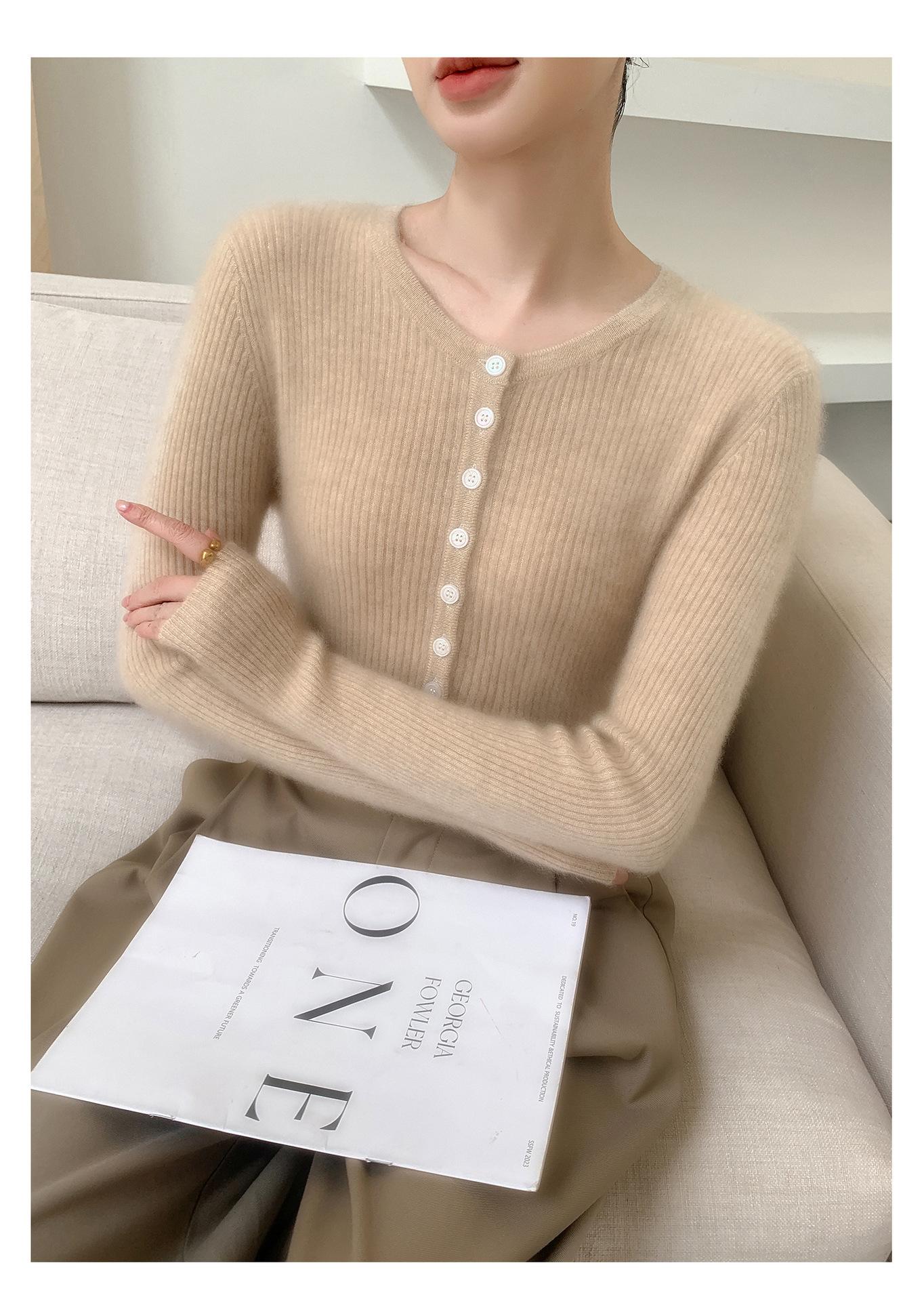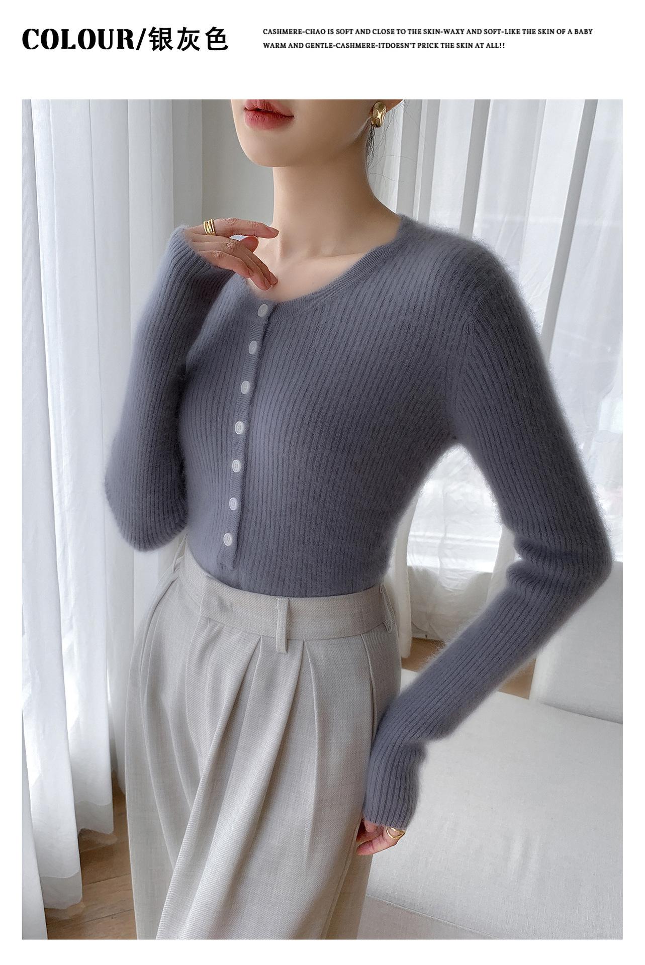 Camiseta básica de punto estilo coreano para mujer Sensación del año Nuevo estilo Cuello redondo acanalado Diseño de otoño Cachemira Moda Botones