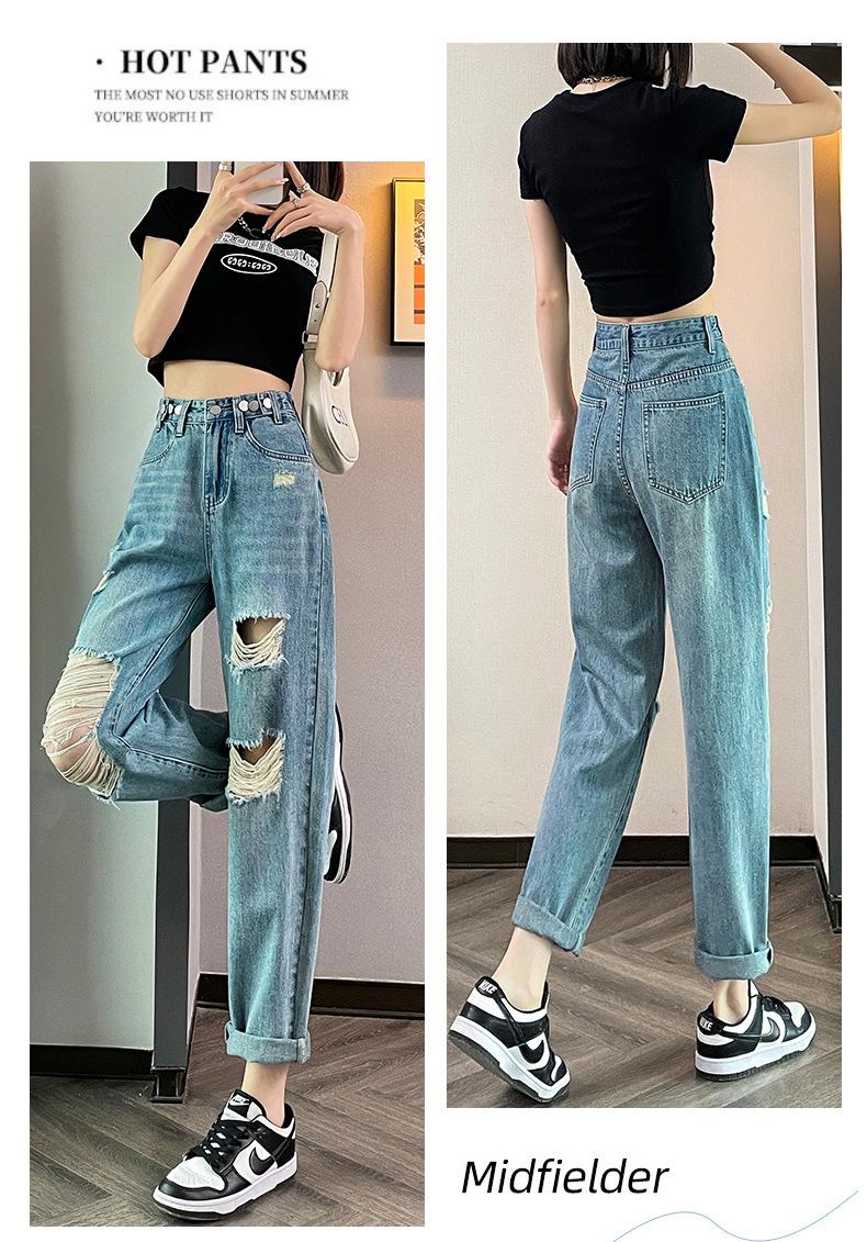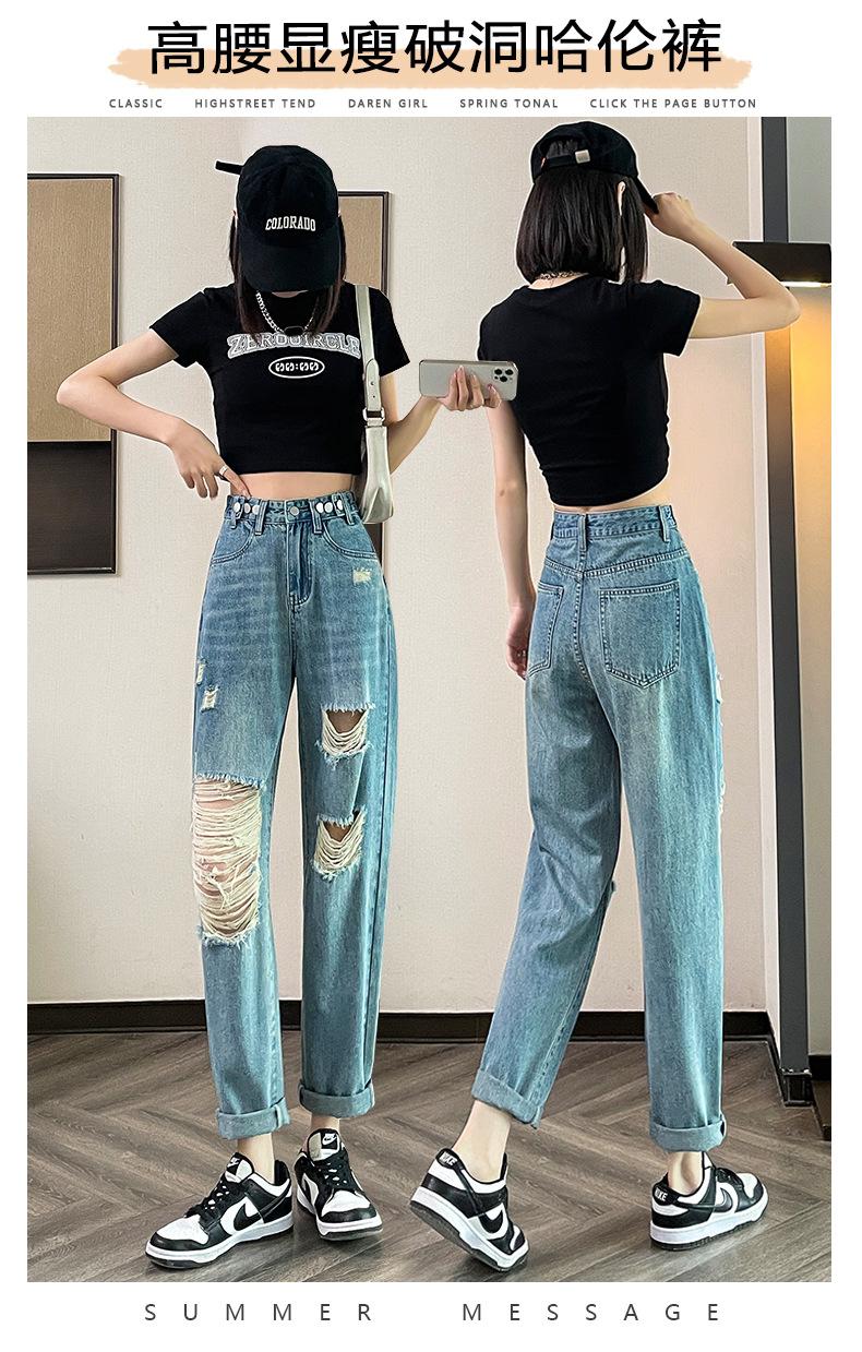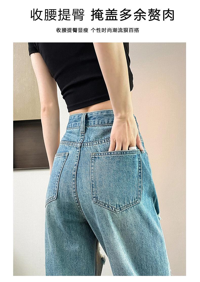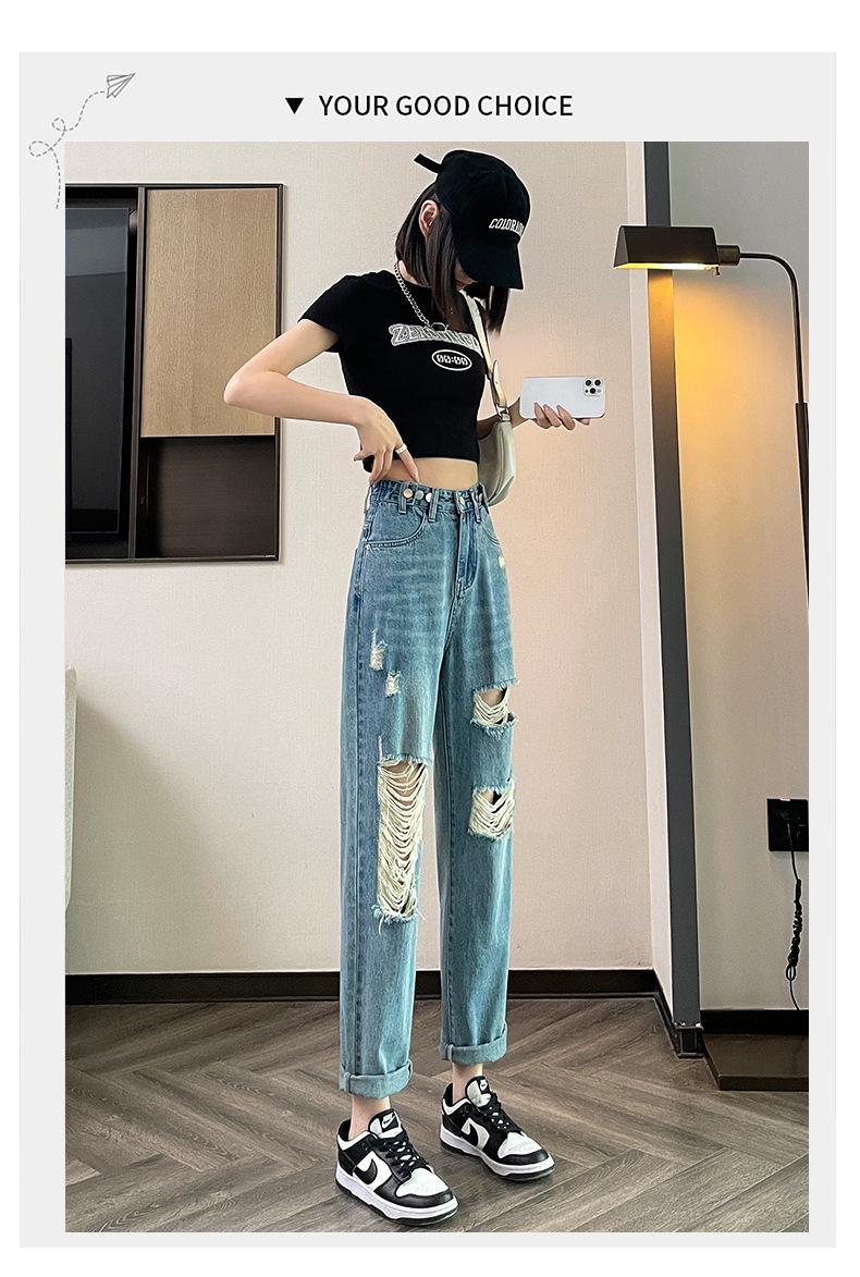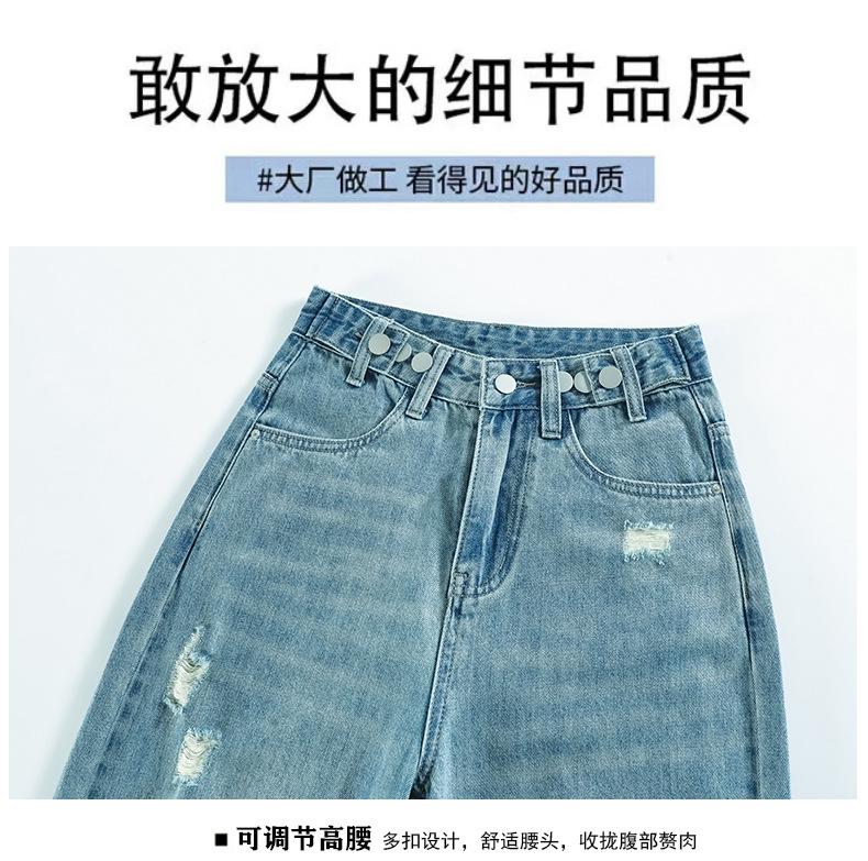 Jeans Vintage de Cintura Alta Rotos para Mujer, Verano Delgados de Pierna Recta Adelgazantes Petite Sueltos de Pierna Ancha Pantalones Harem