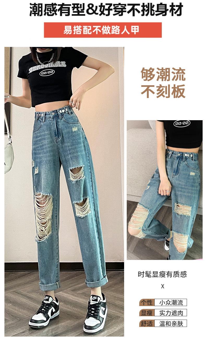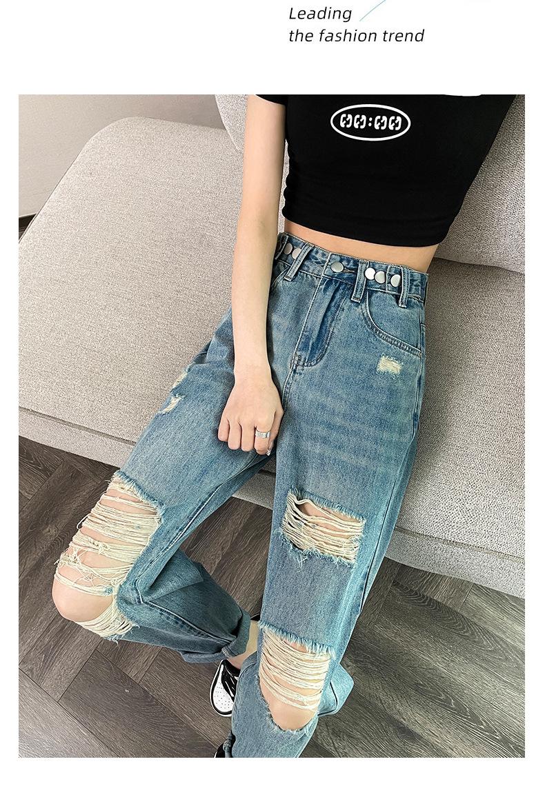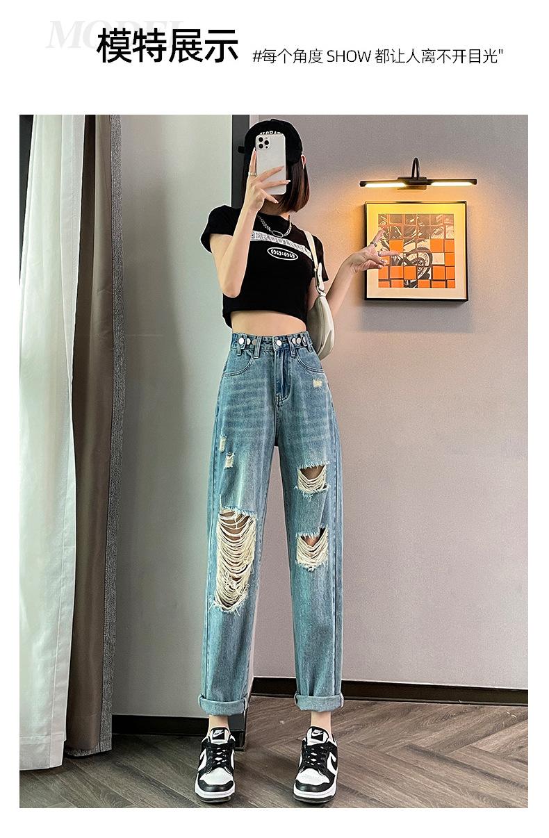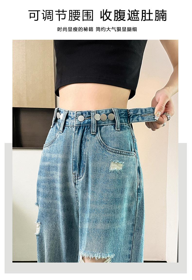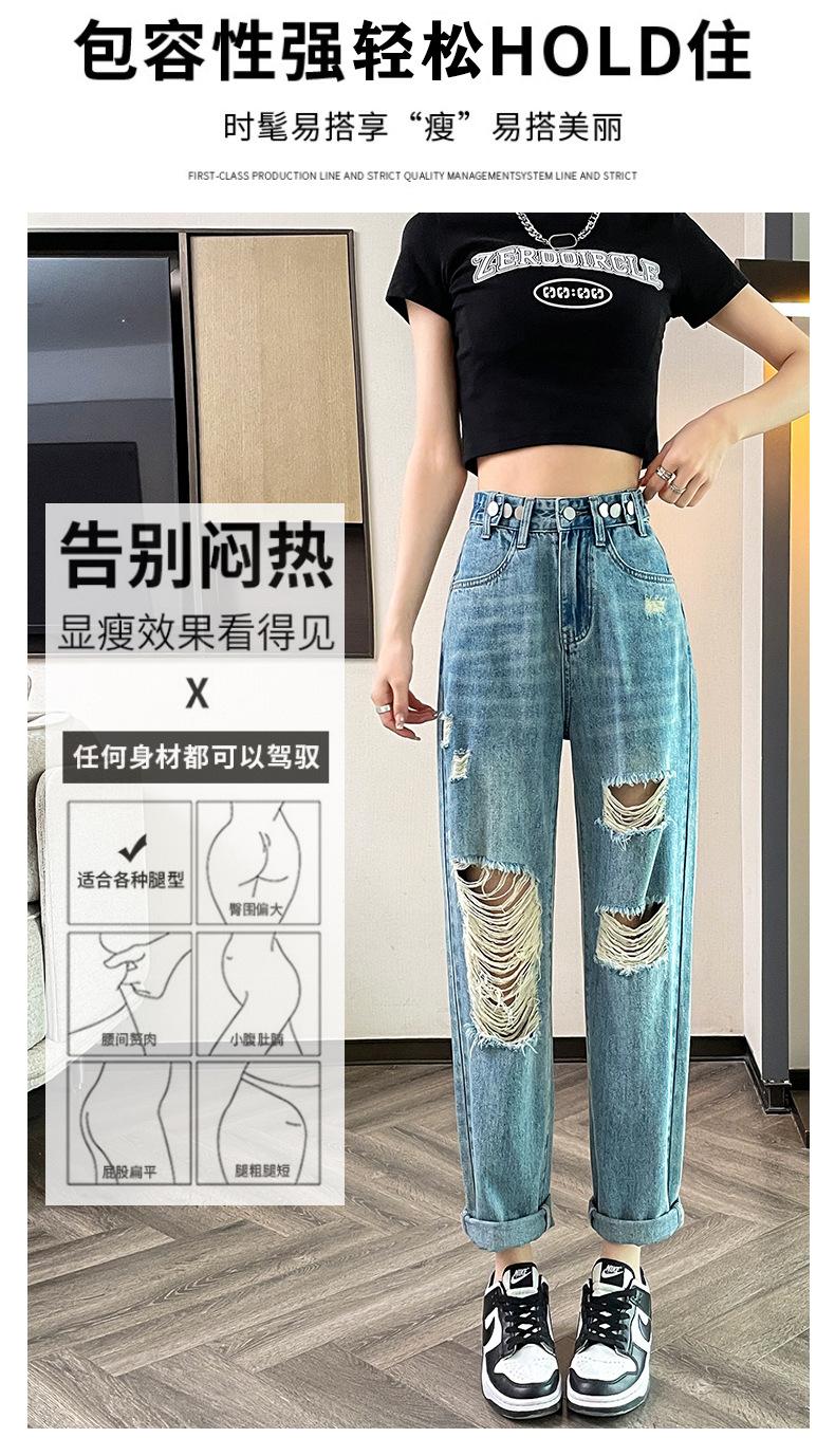 Jeans Vintage de Cintura Alta Rotos para Mujer, Verano Delgados de Pierna Recta Adelgazantes Petite Sueltos de Pierna Ancha Pantalones Harem