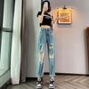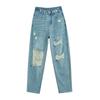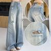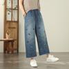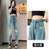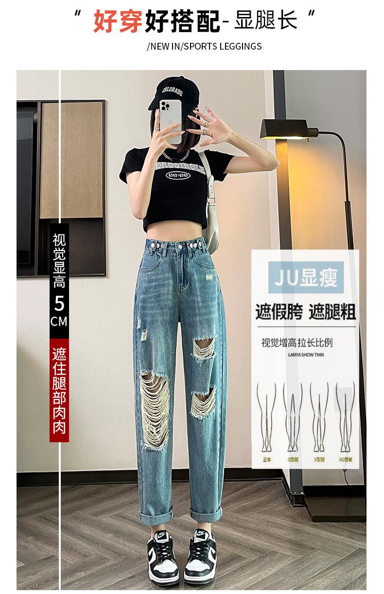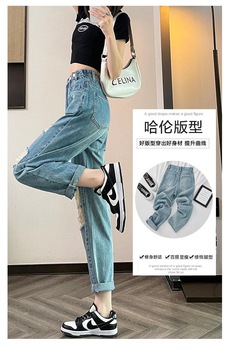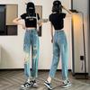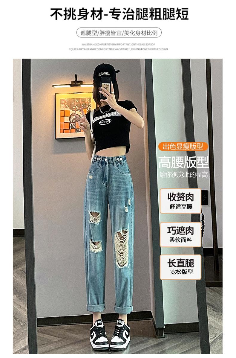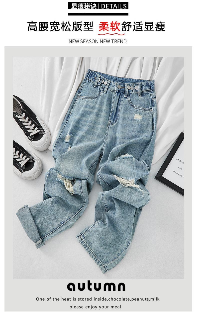 Jeans Vintage de Cintura Alta Rotos para Mujer, Verano Delgados de Pierna Recta Adelgazantes Petite Sueltos de Pierna Ancha Pantalones Harem